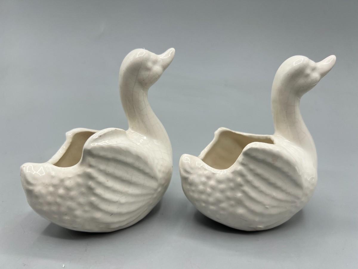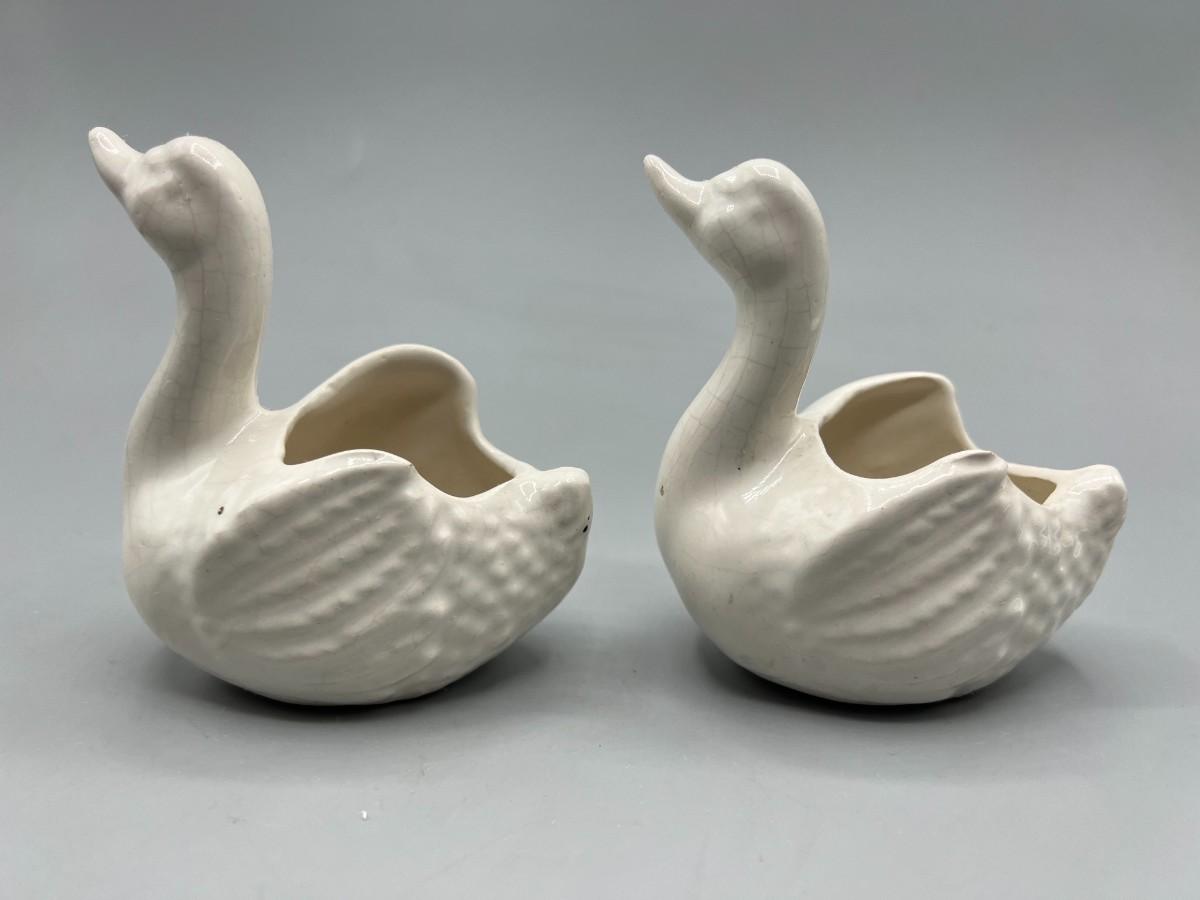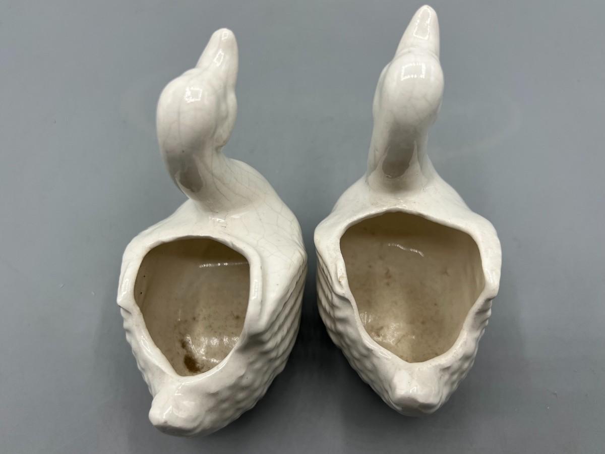 Pair of Retro White Ceramic Swan Trinket Bowls Cottagecore Home Decor