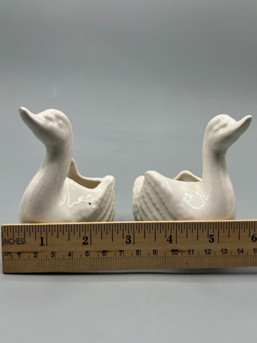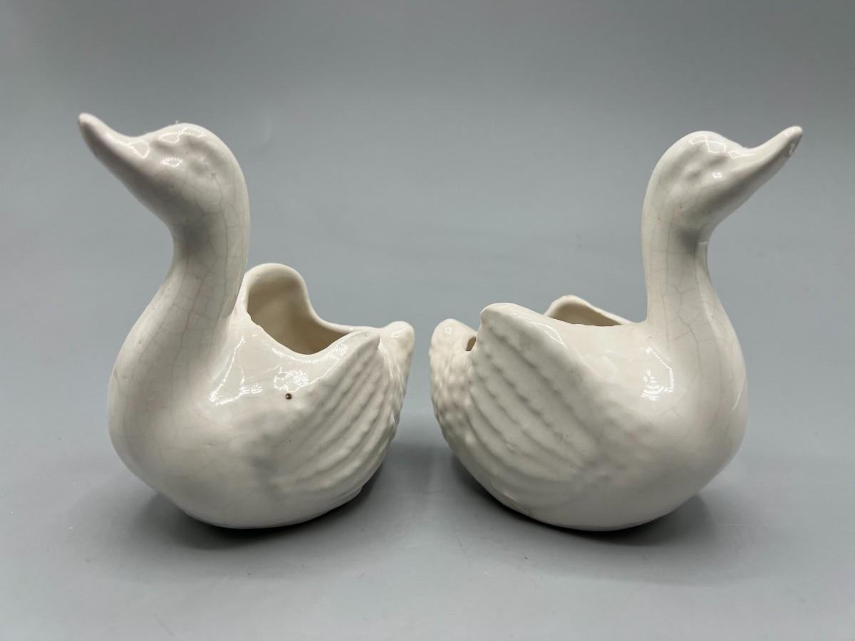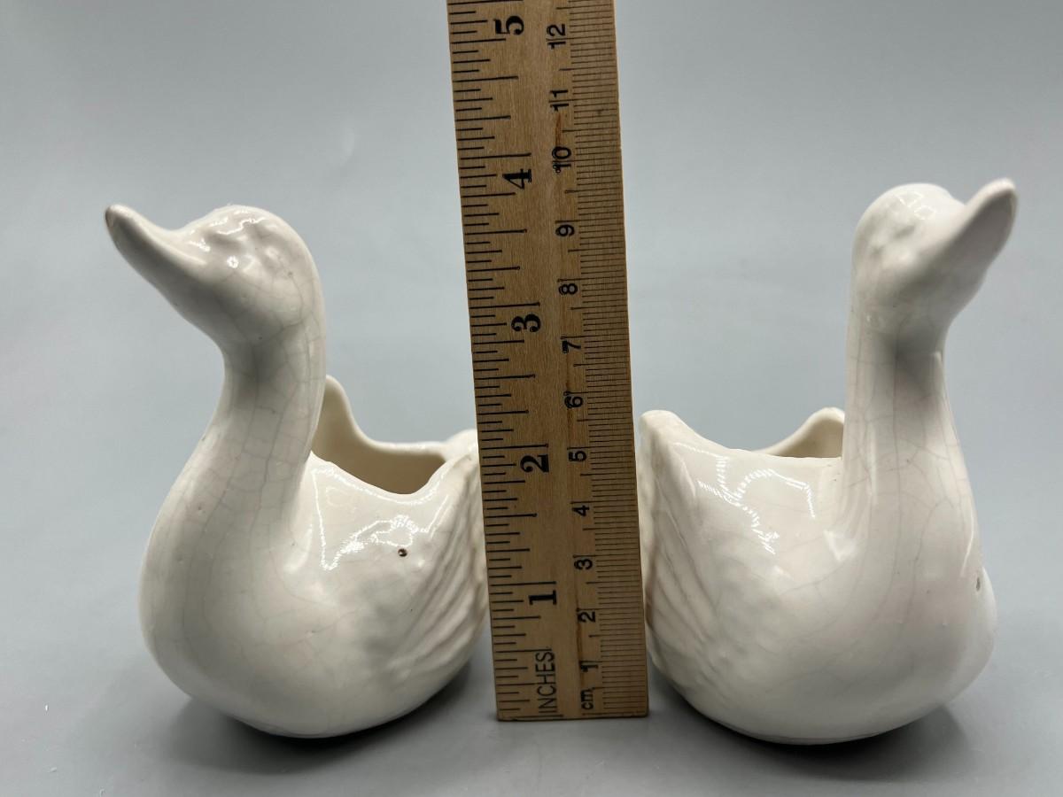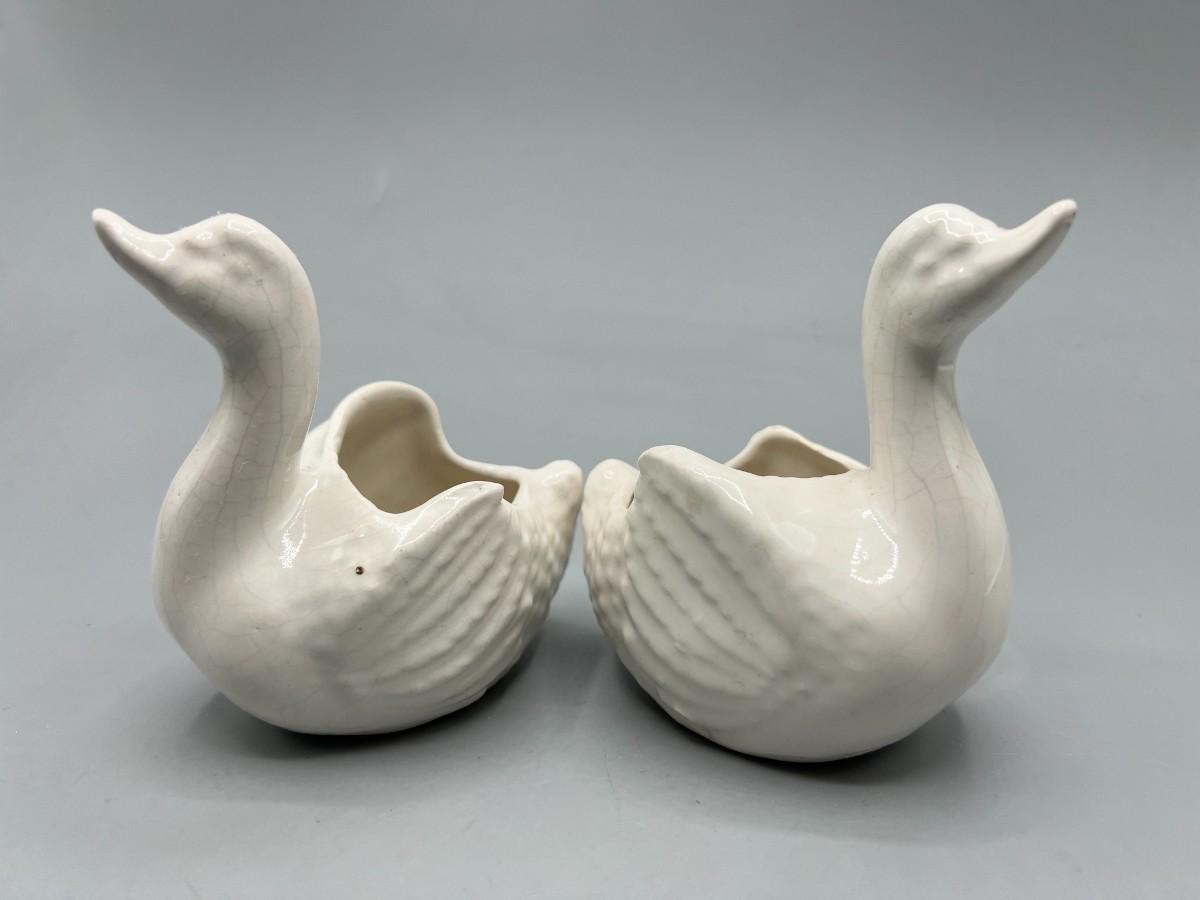 Pair of Retro White Ceramic Swan Trinket Bowls Cottagecore Home Decor