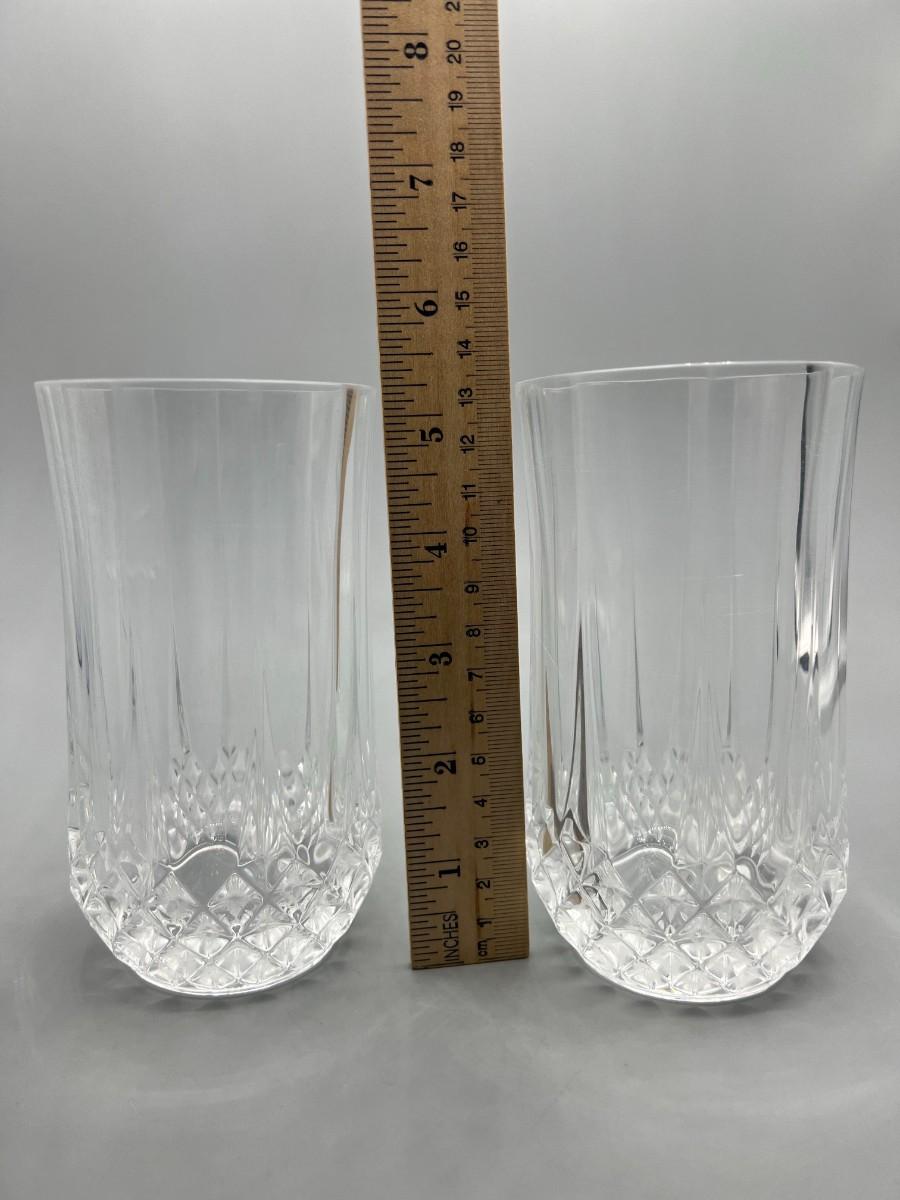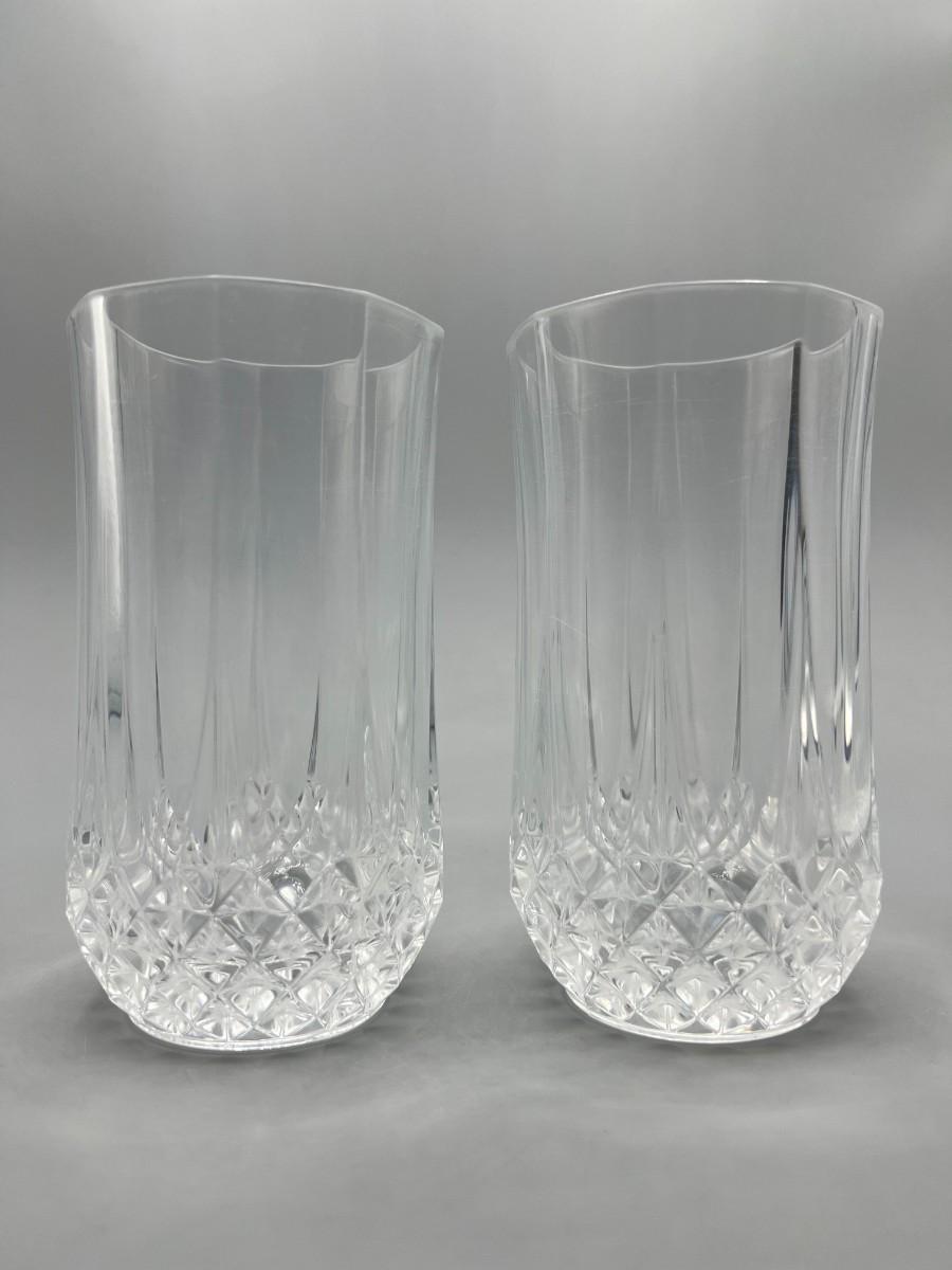 Pair of Vintage Tall Crystal Cut Glass Drinking Glasses