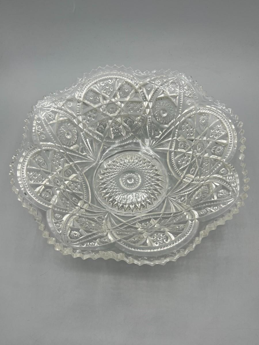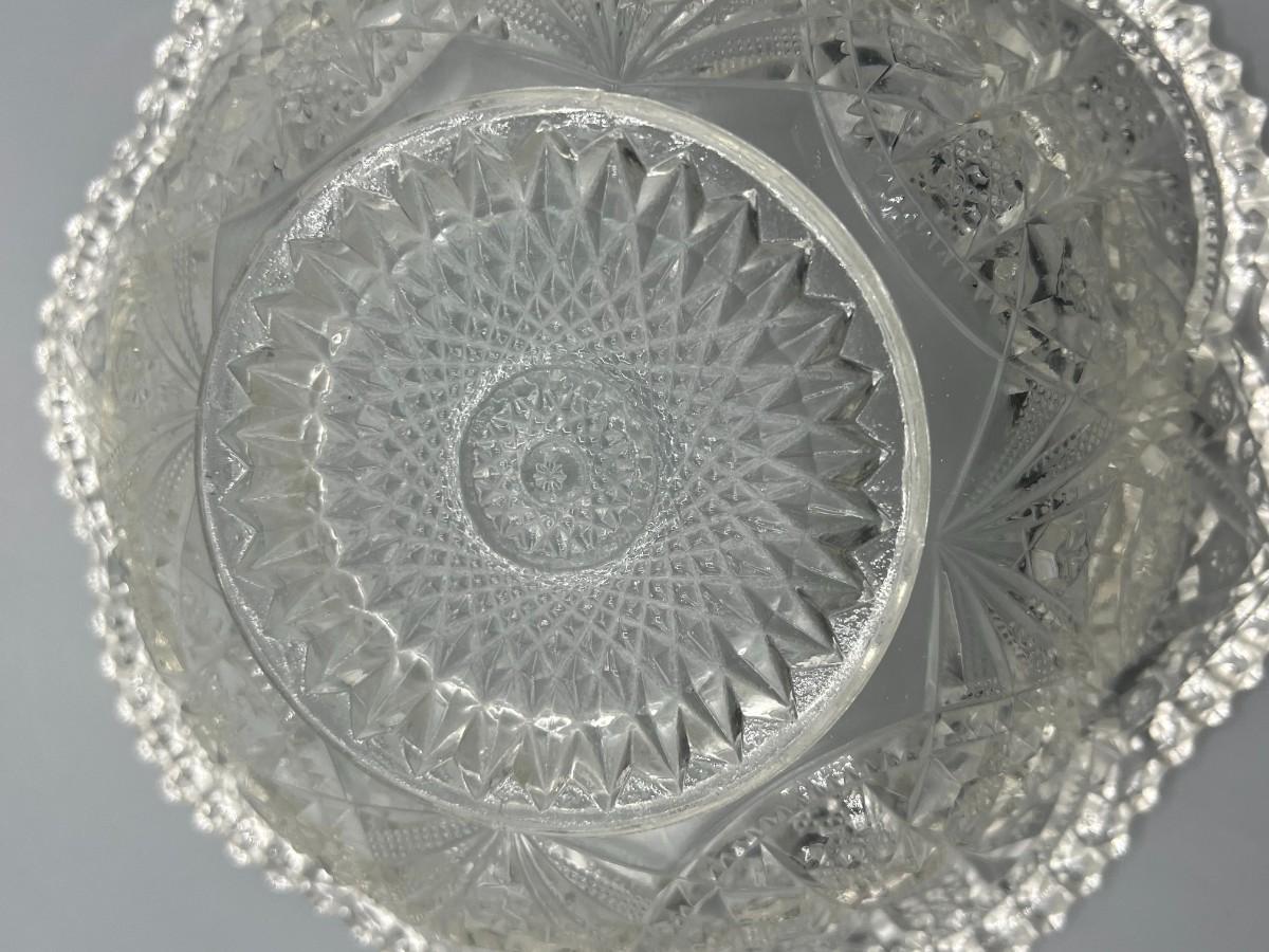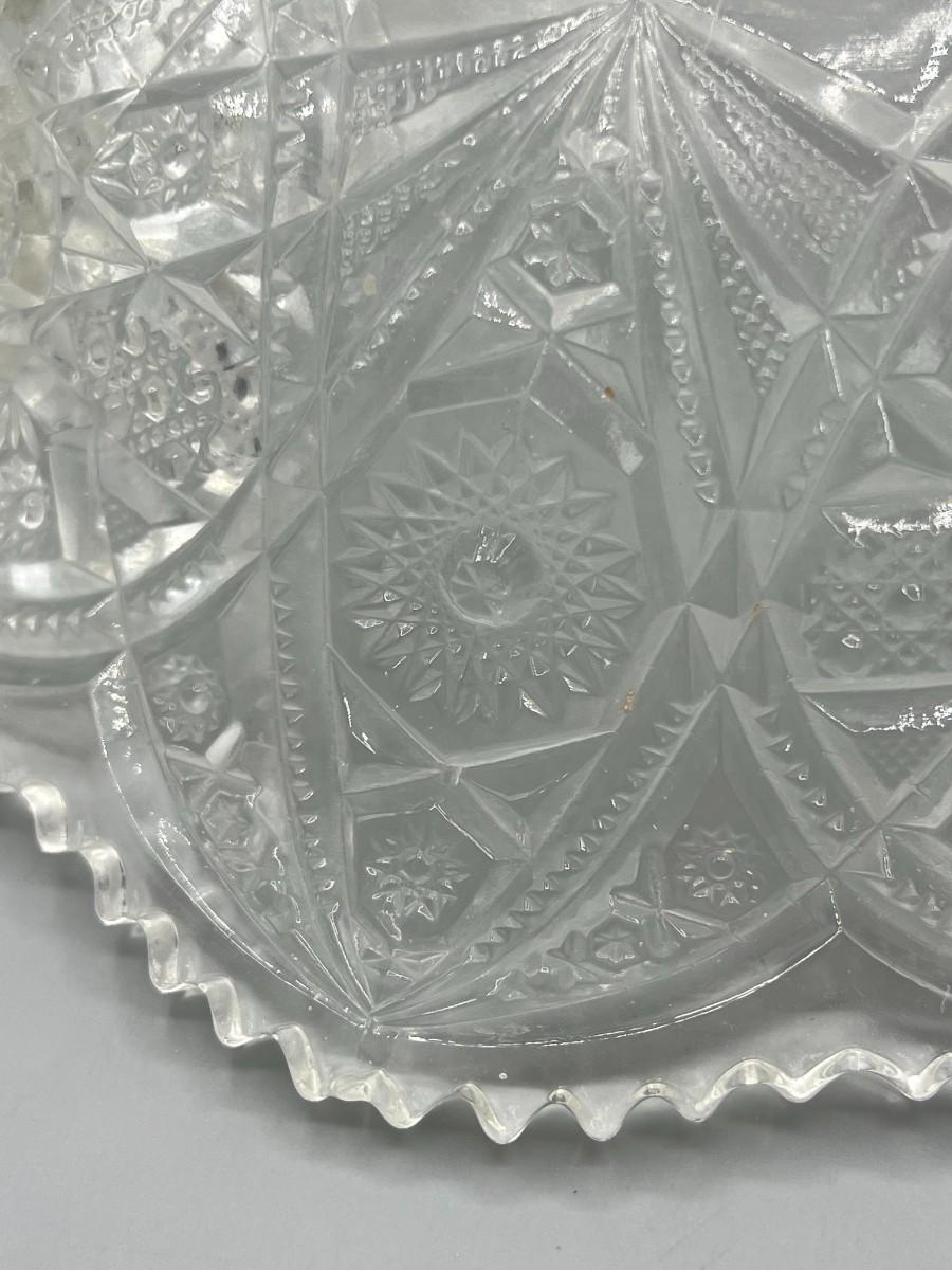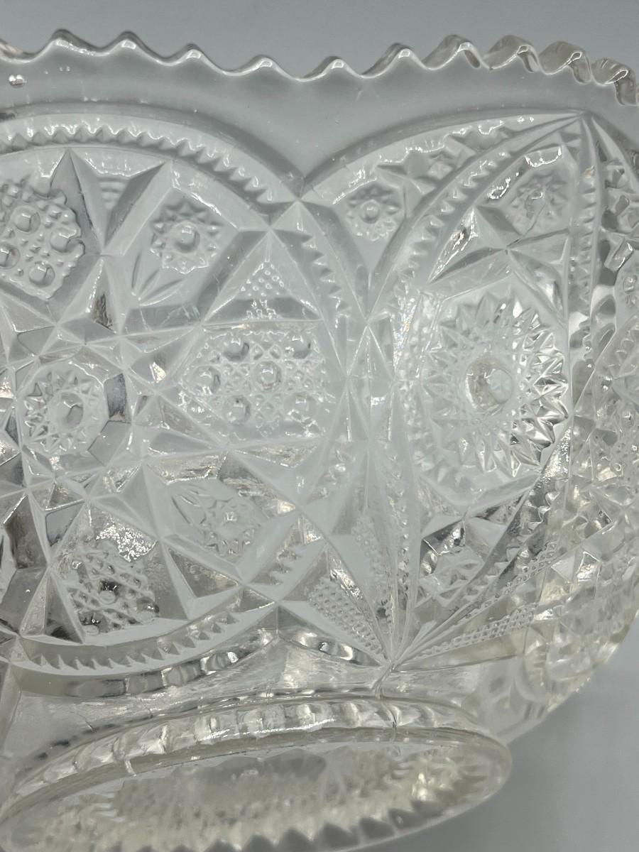 Vintage Crystal Cut Glass Tooth Edge Mid Century Geometric Pattern Decor Bowl
