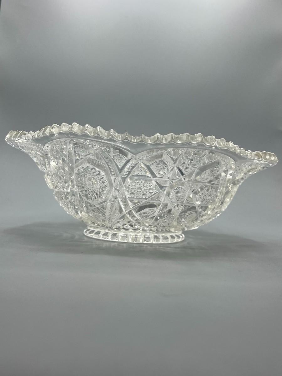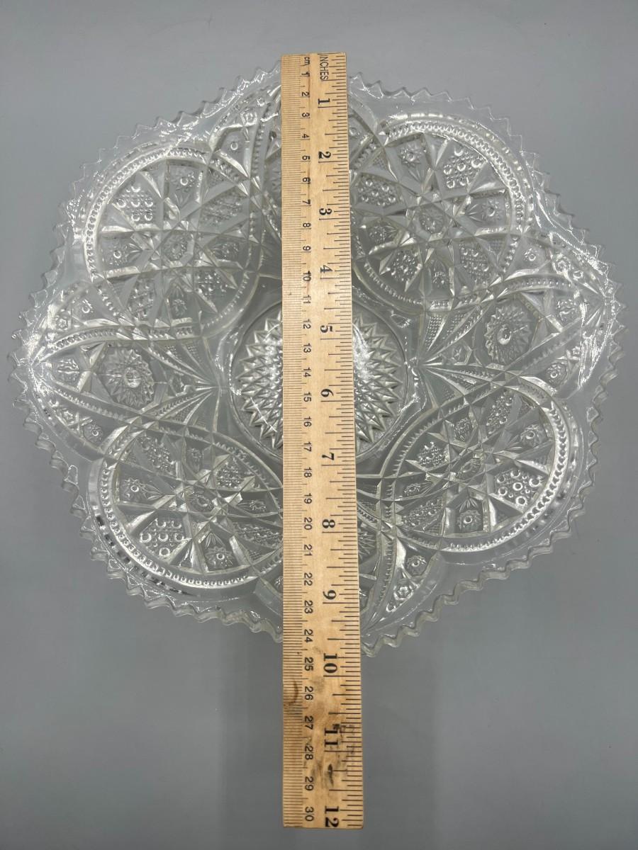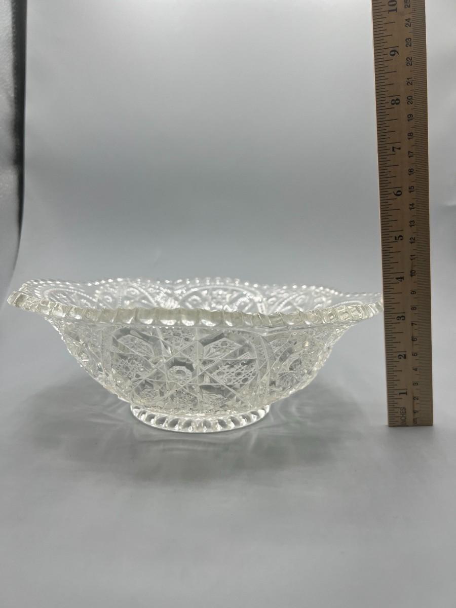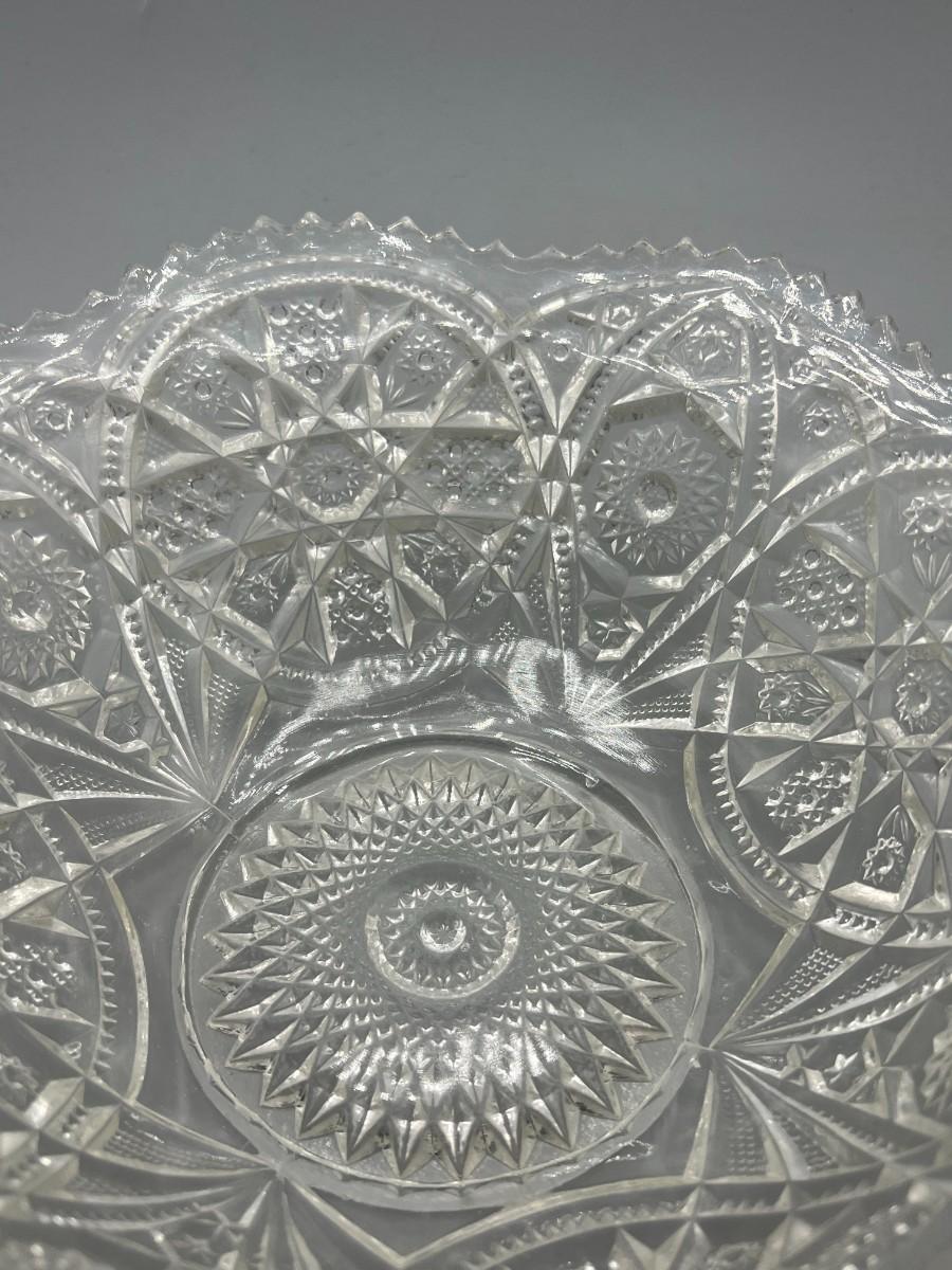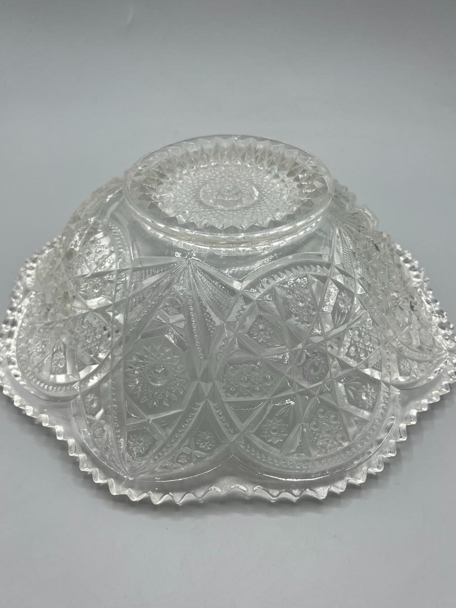 Vintage Crystal Cut Glass Tooth Edge Mid Century Geometric Pattern Decor Bowl
