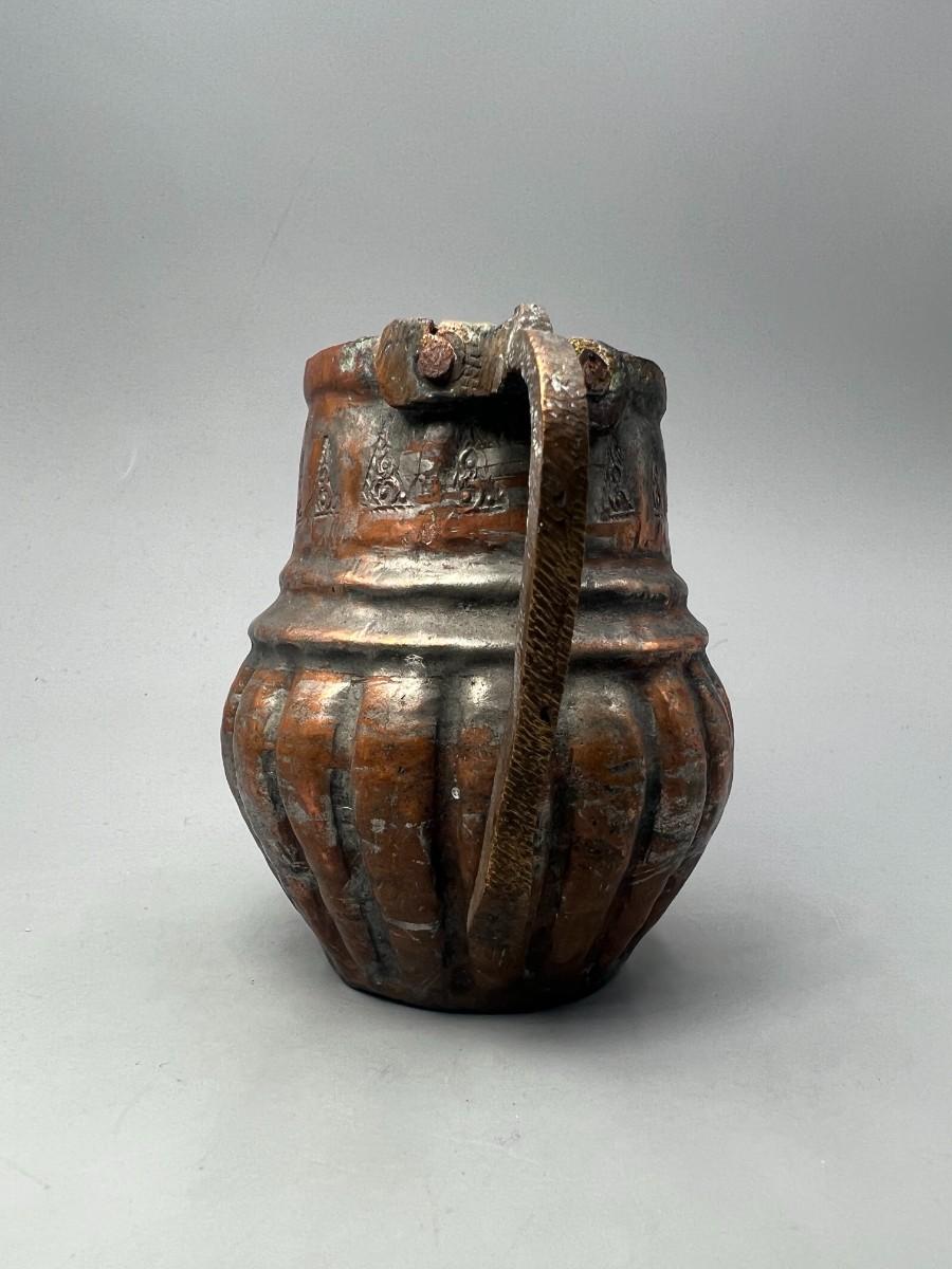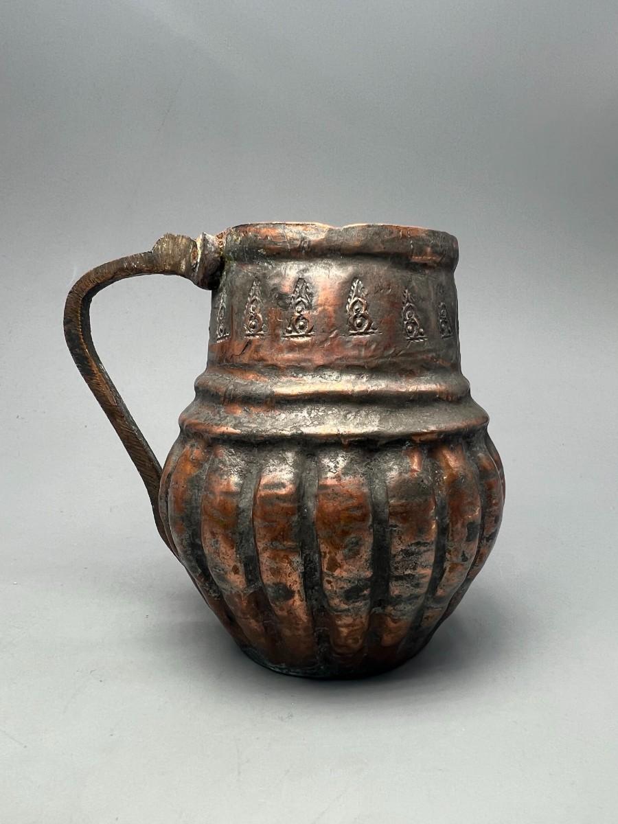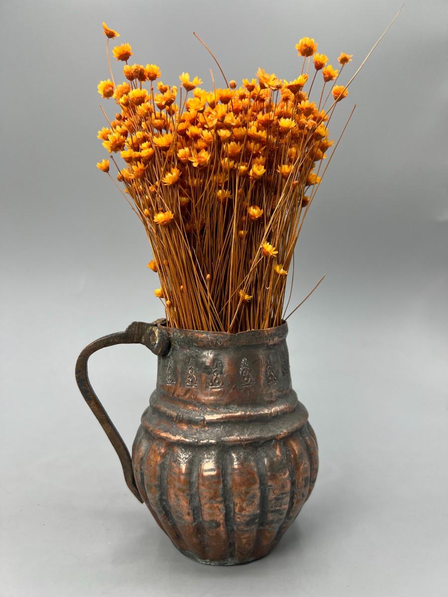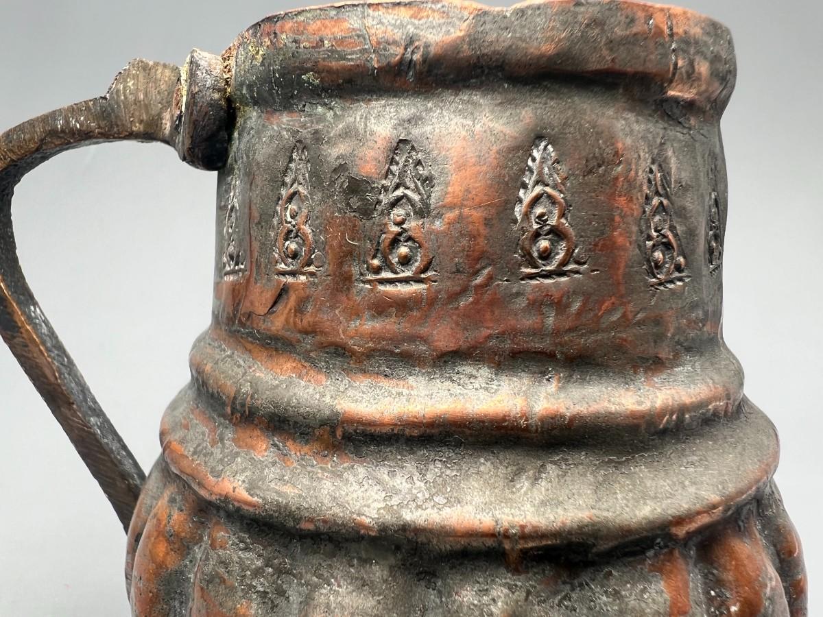 Small Vintage Hammered Brass Copper Brutalist Icon Design Pitcher Decor