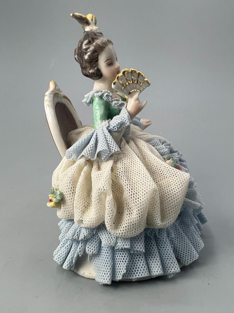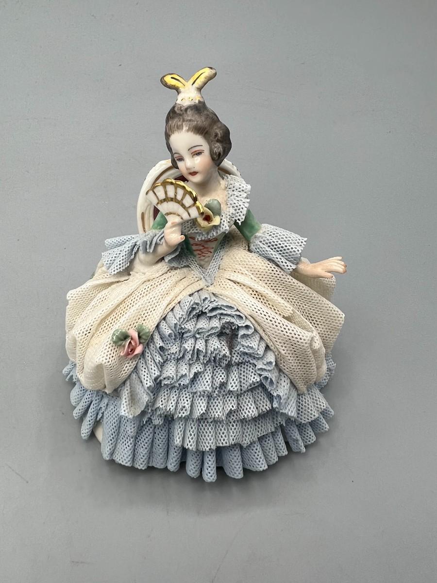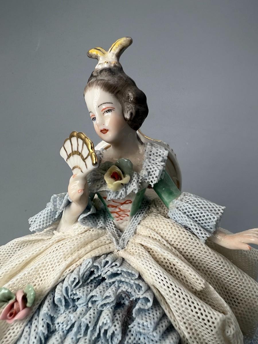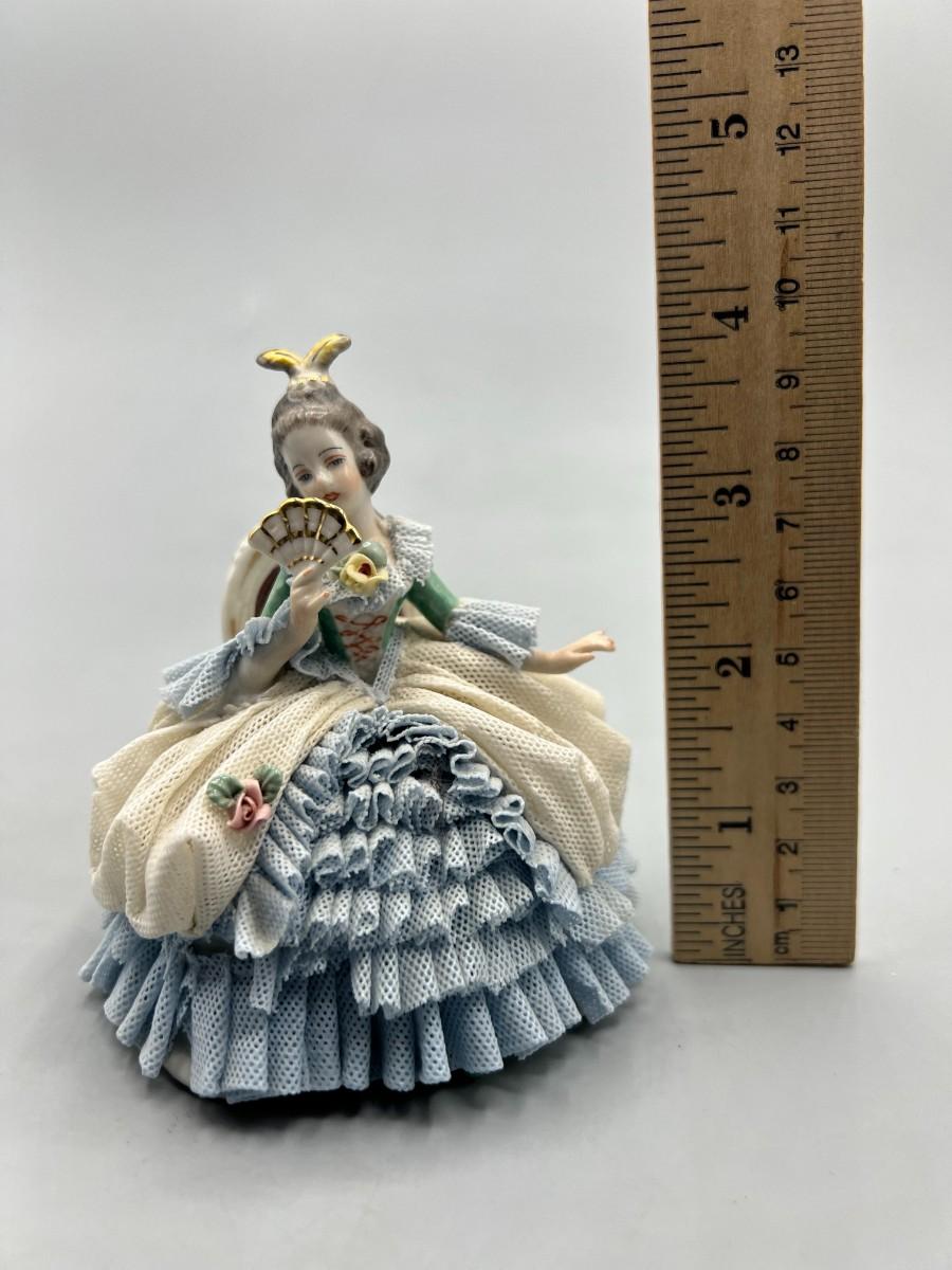 Vintage Handgemalt Dresdan Art Porcelain Lace Fanning Victorian Women in Dress