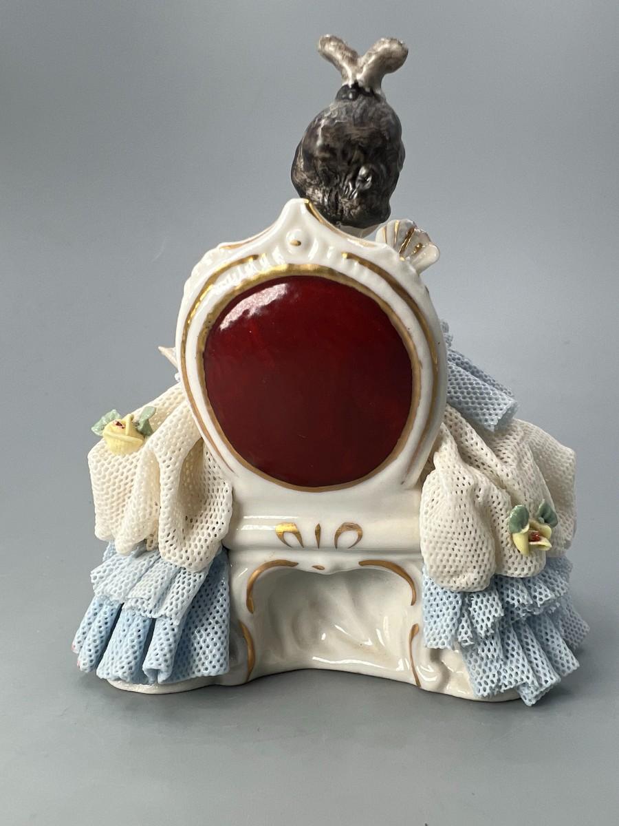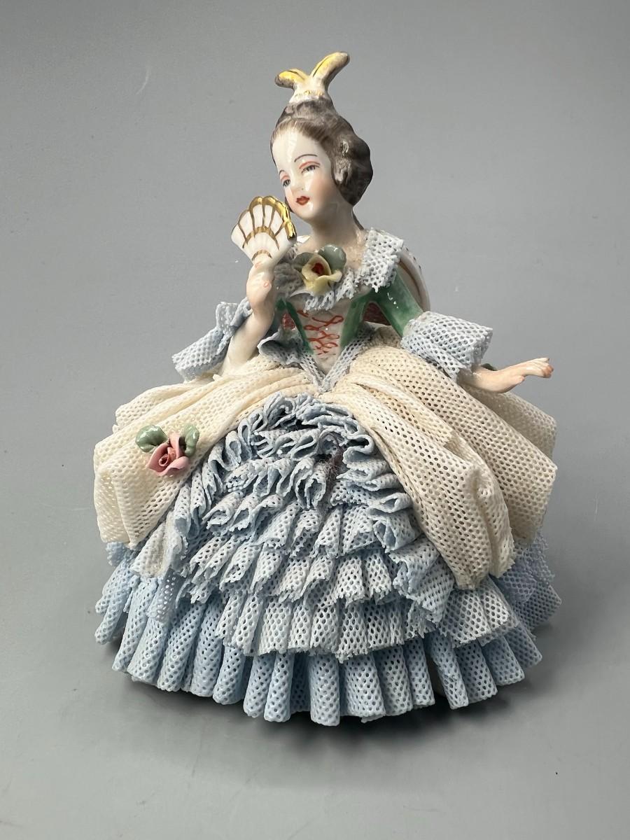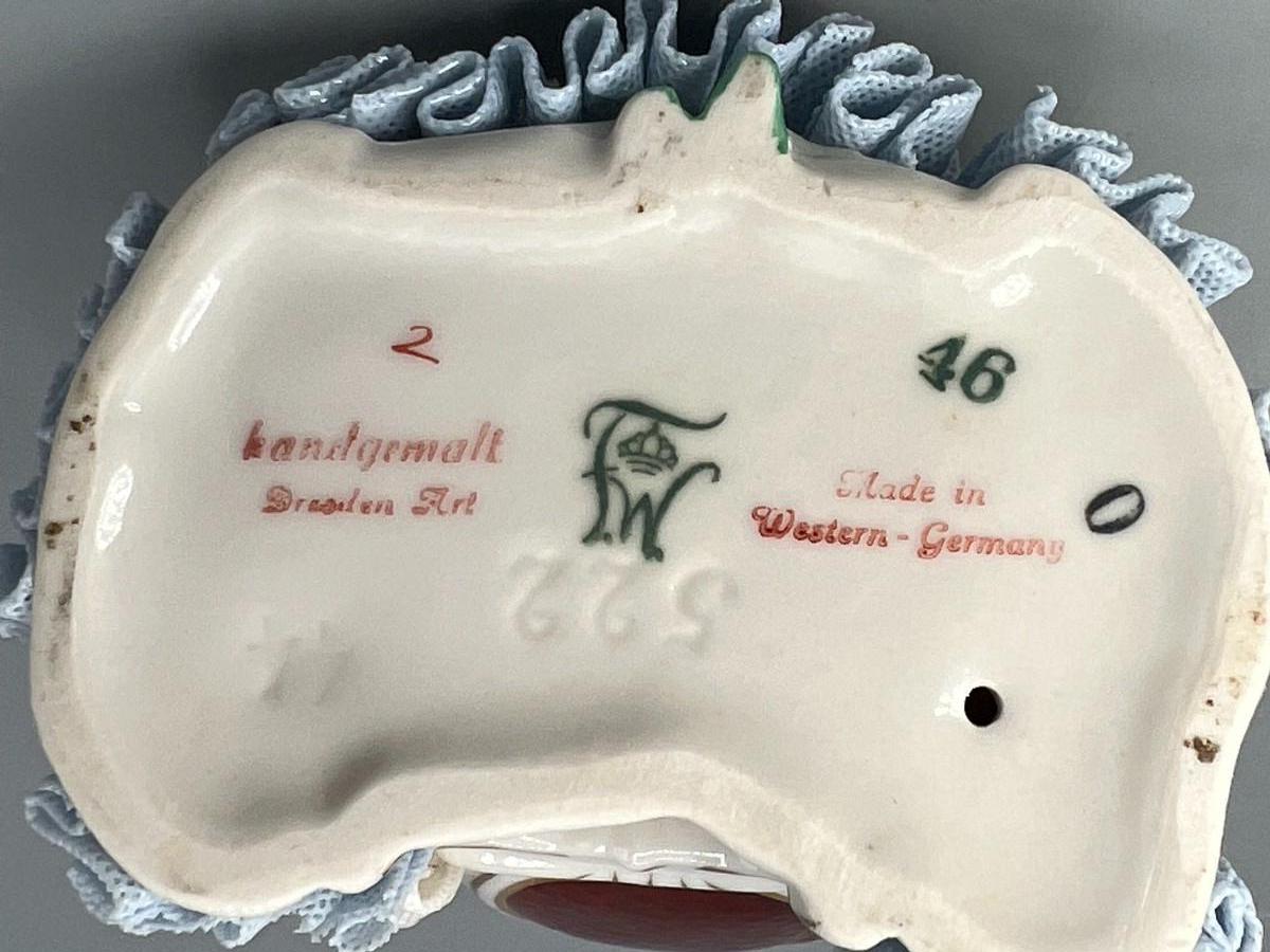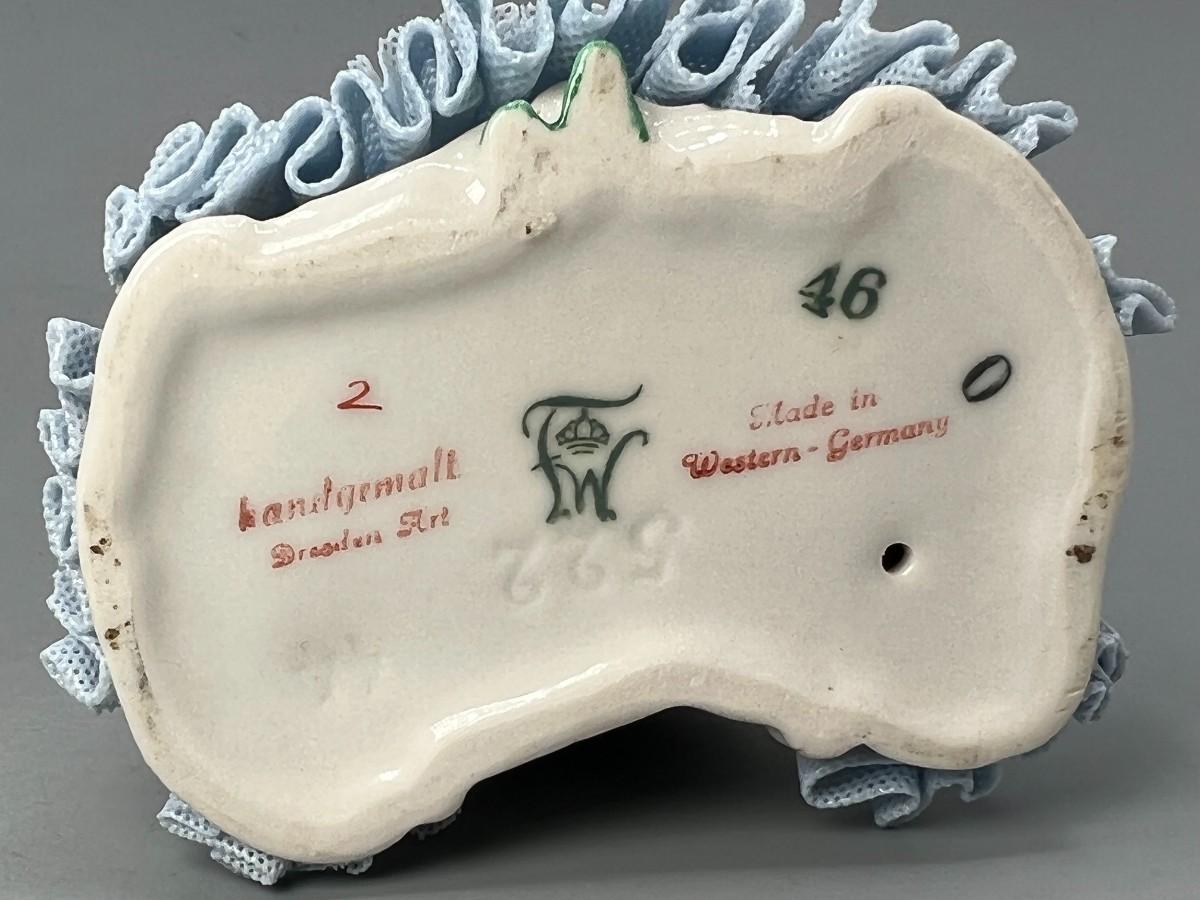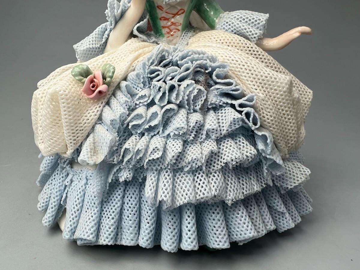 Vintage Handgemalt Dresdan Art Porcelain Lace Fanning Victorian Women in Dress