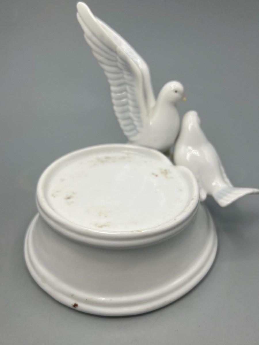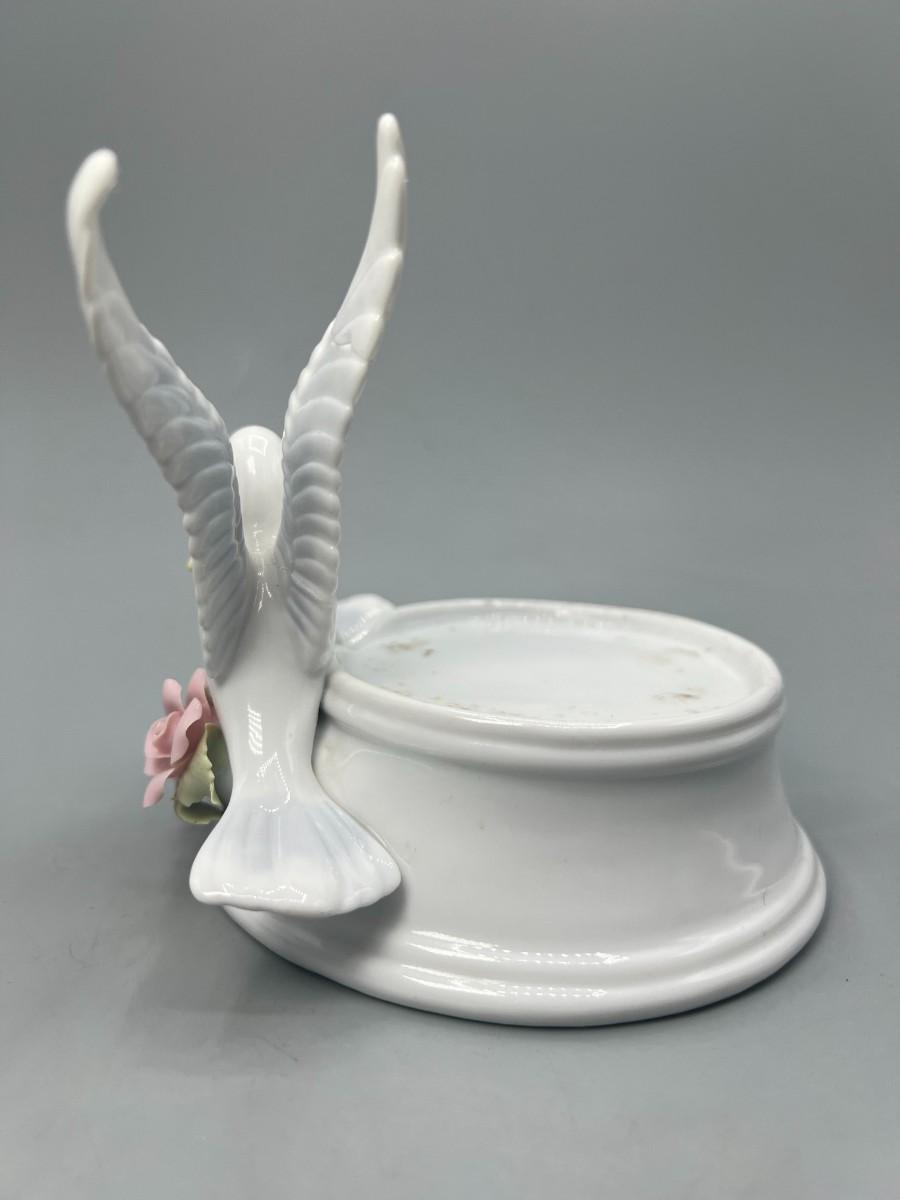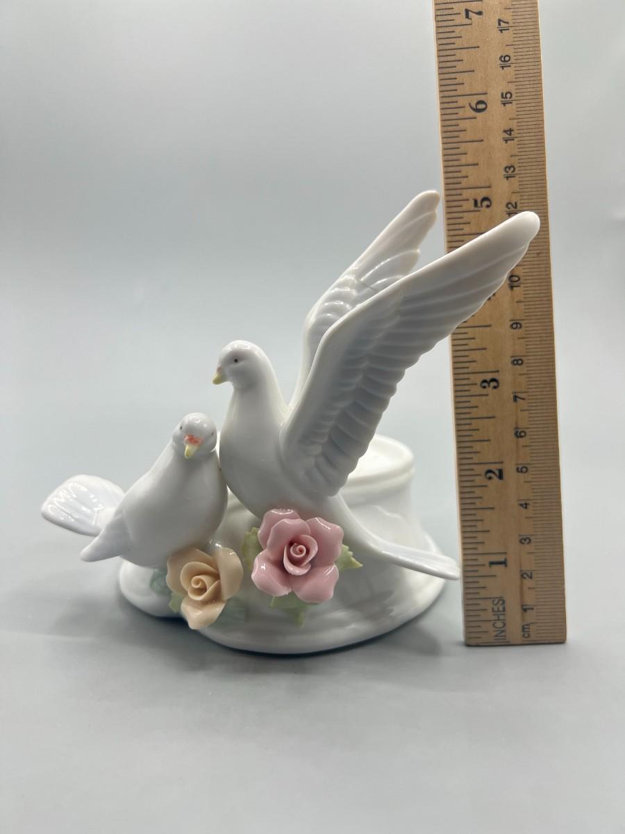 White Ceramic Floral Doves Cottagecore Candleholder