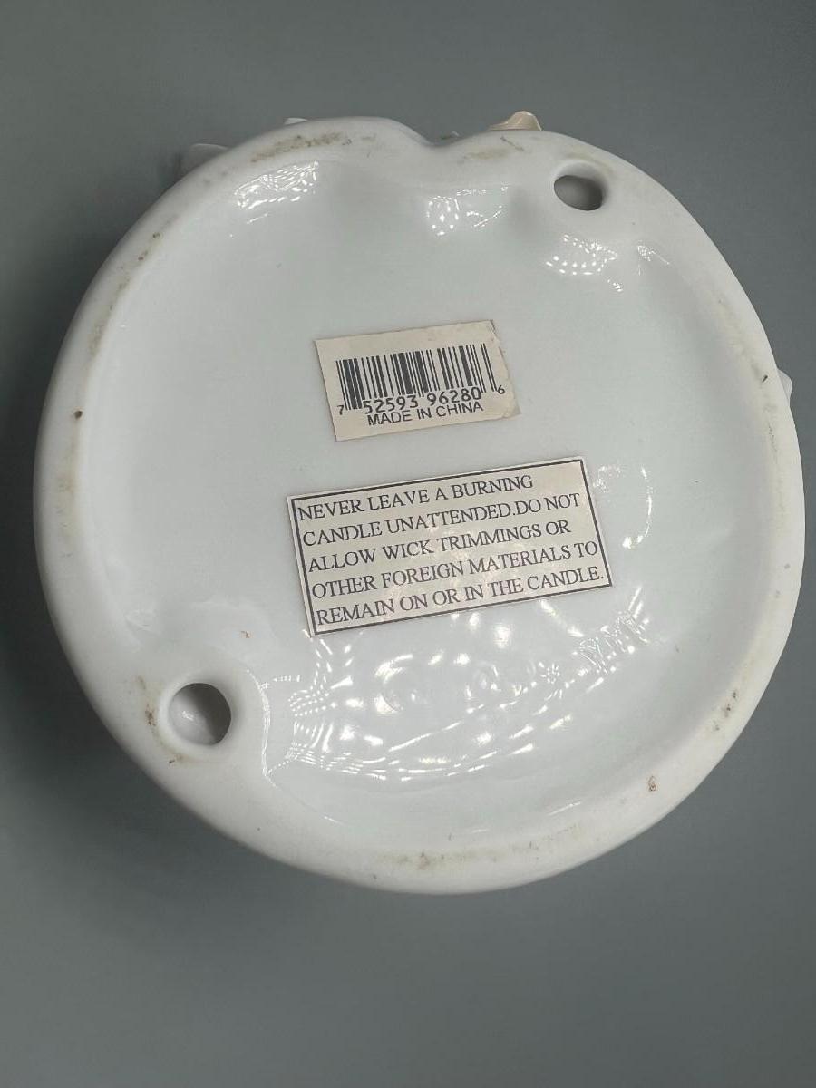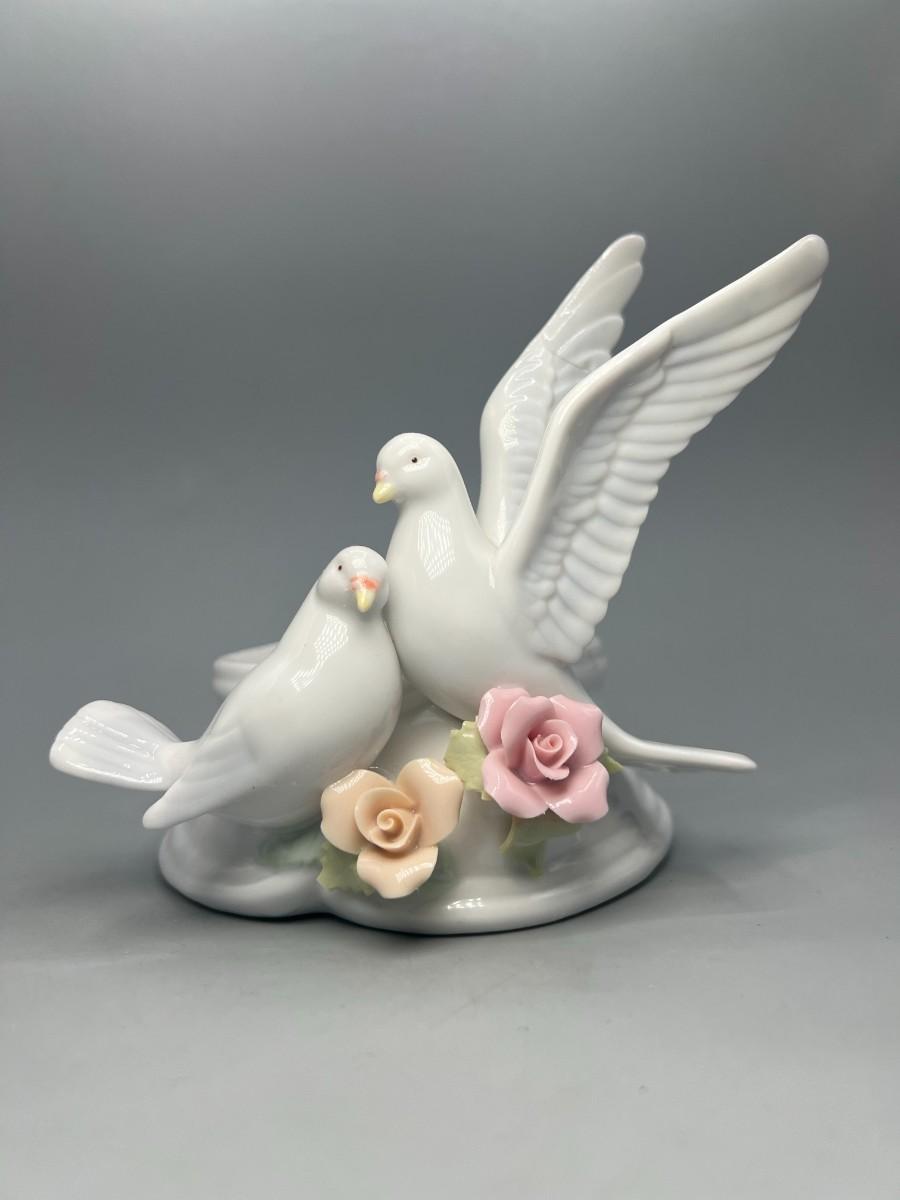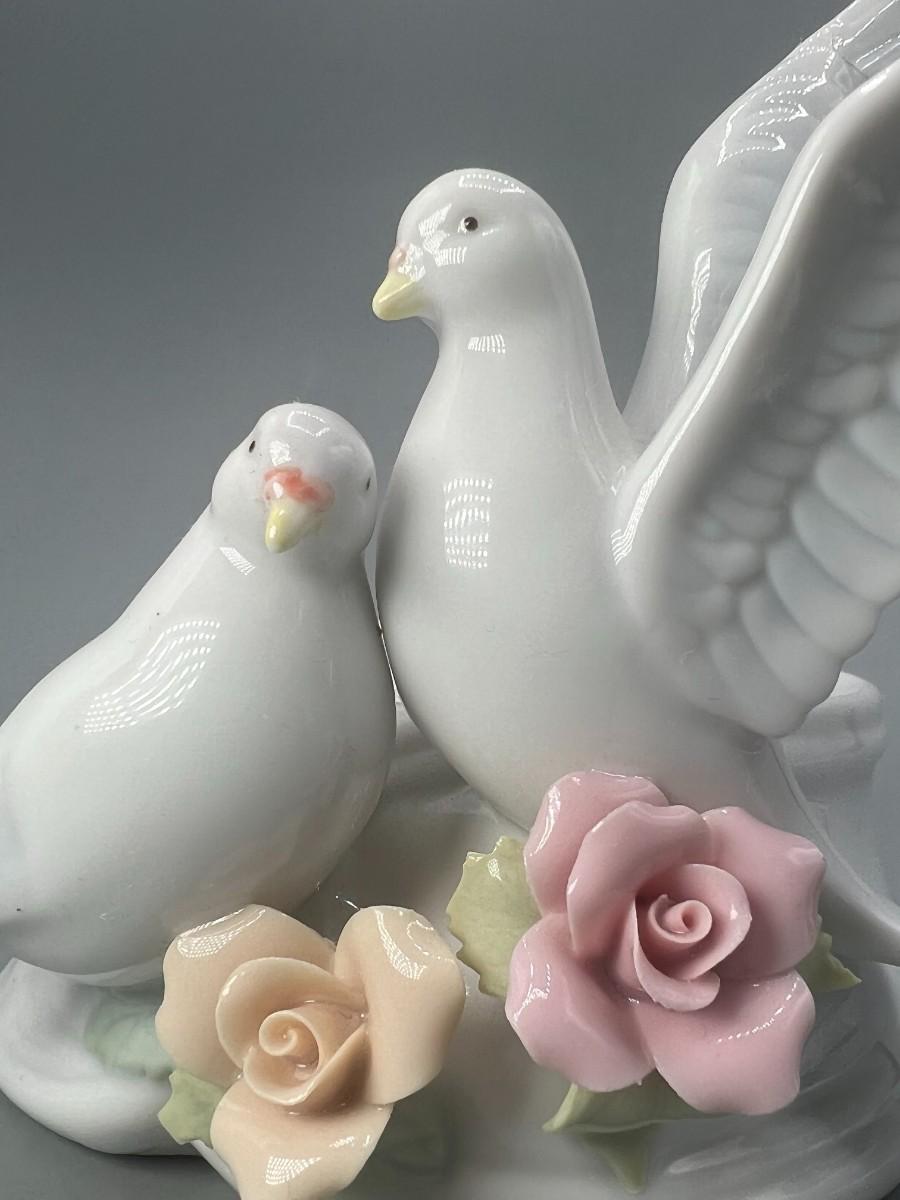 White Ceramic Floral Doves Cottagecore Candleholder