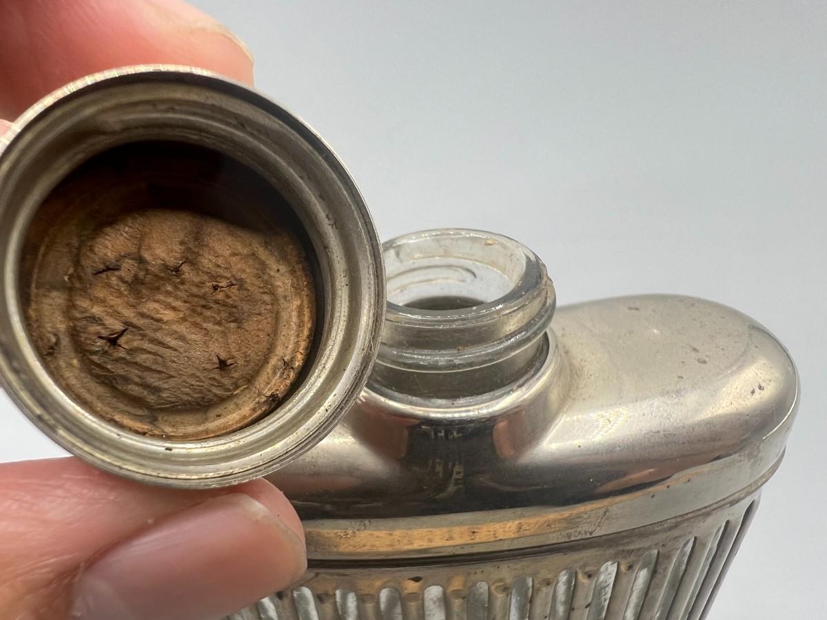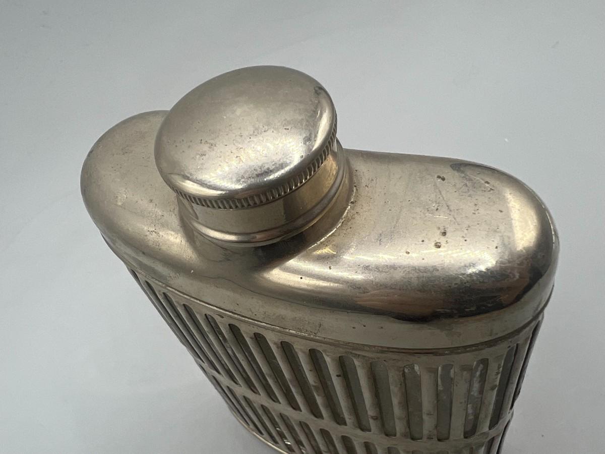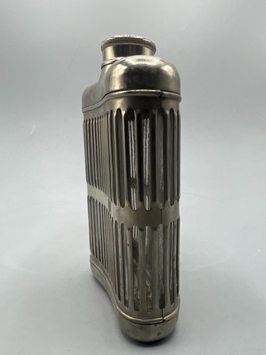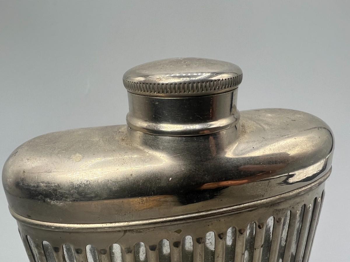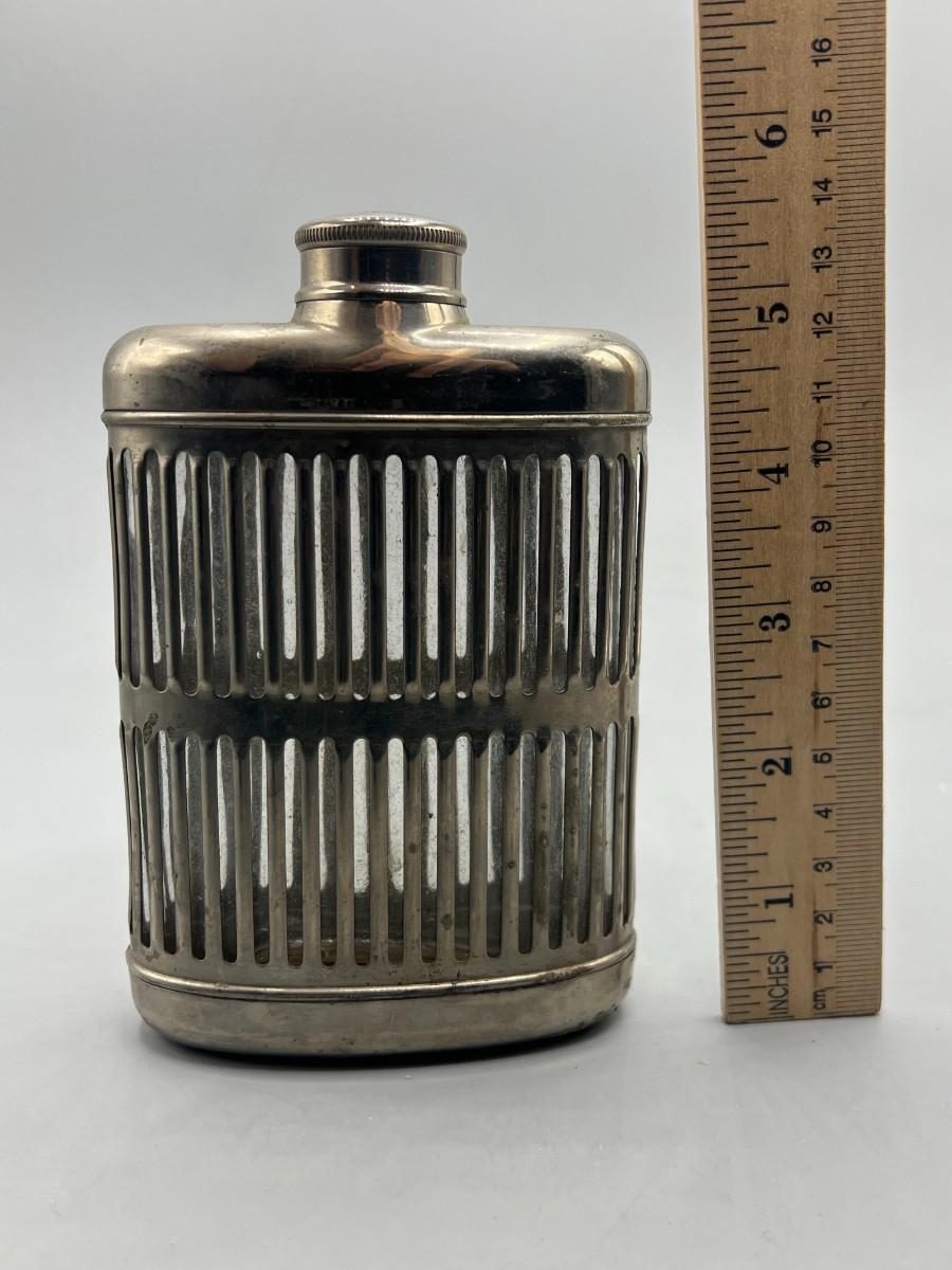 Vintage Metal Stainless Steel Encased Glass Flask Liquor Bottle