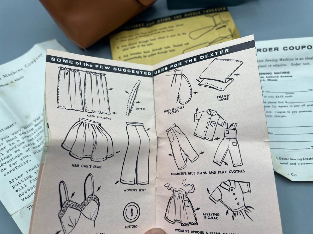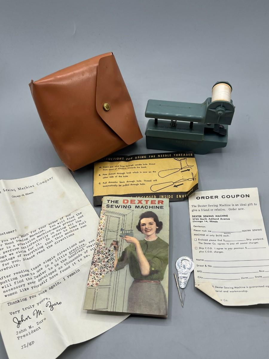 Vintage The Dexter Handheld Sewing Crafting Machine with Instructions, Needles & Case