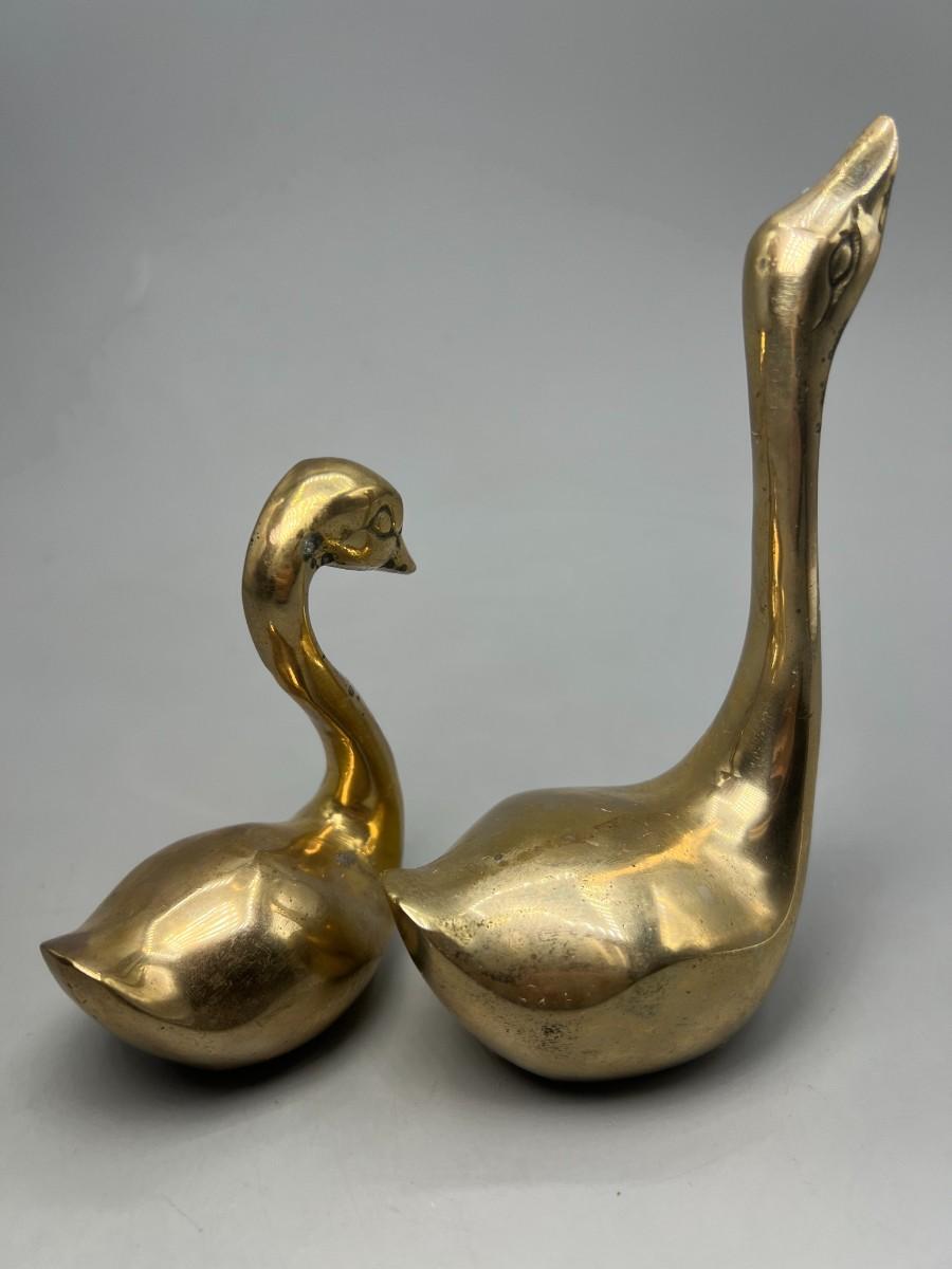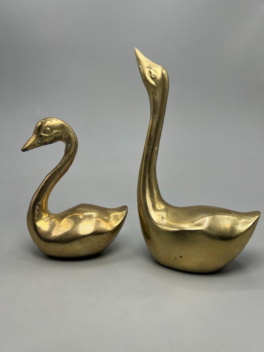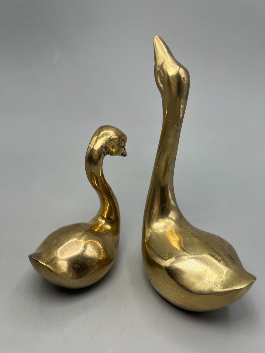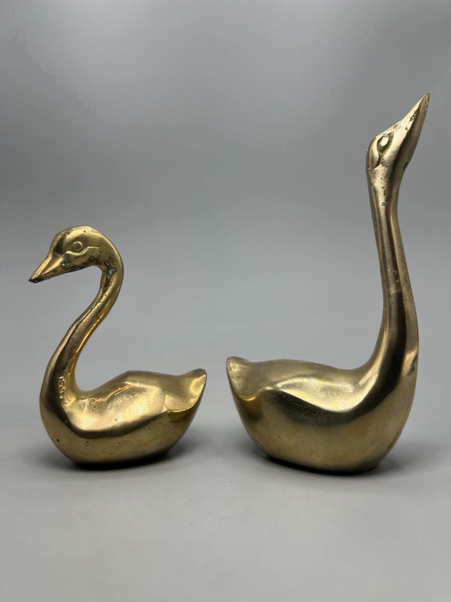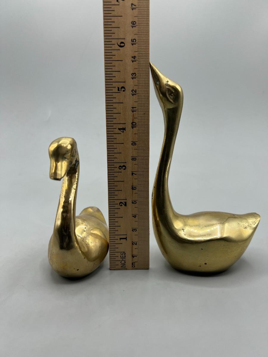 Pair of Retro Hand Crafted Solid Brass Gold Unisilver Decorative Swan Paper Weights