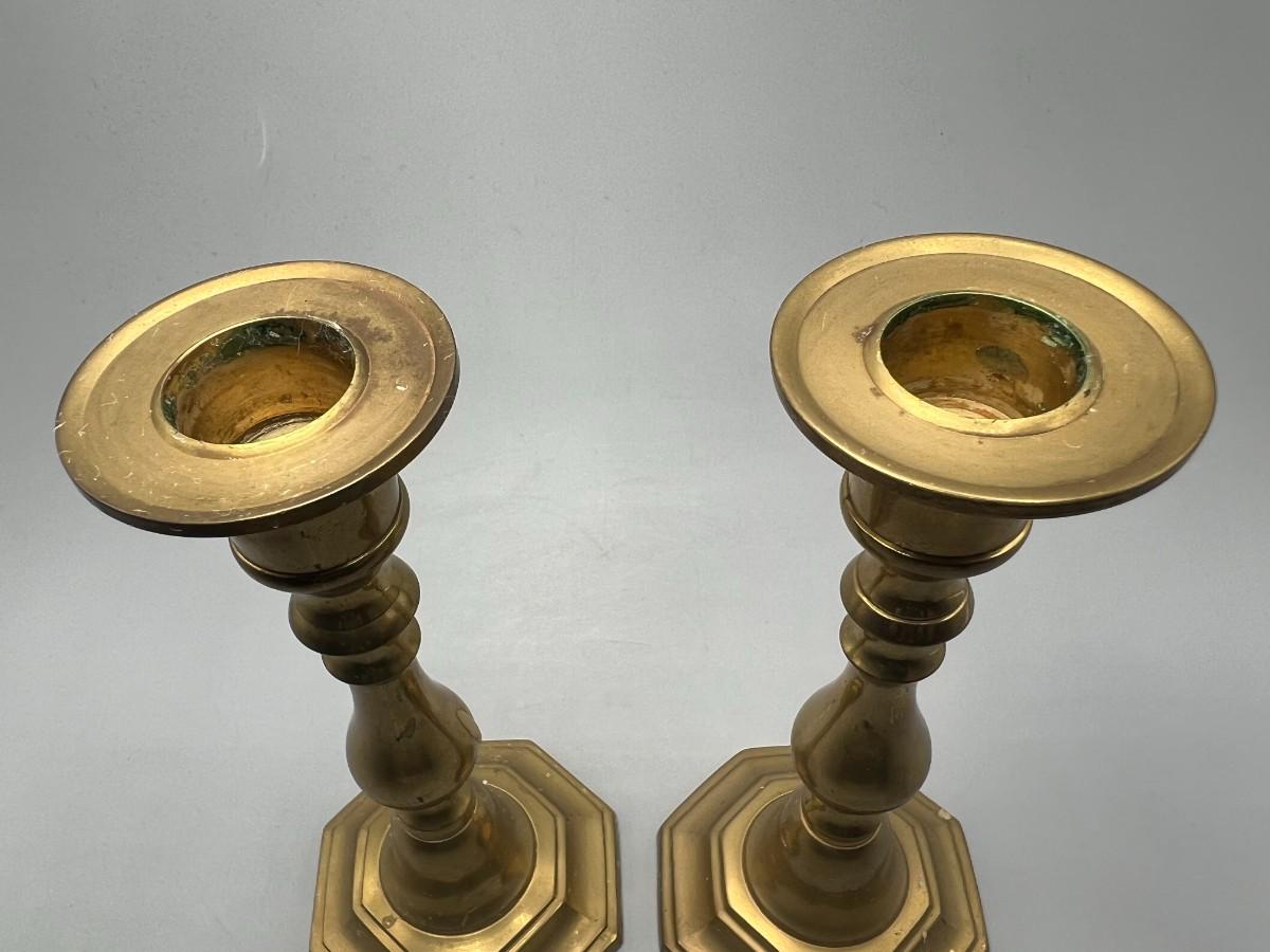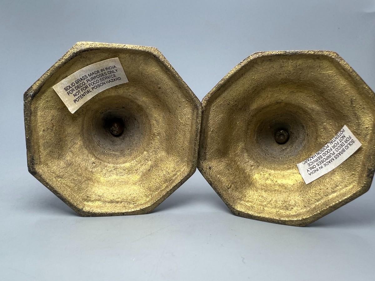 Pair of Solid Brass Gold Made in India Victorian Style Candlestick Holders