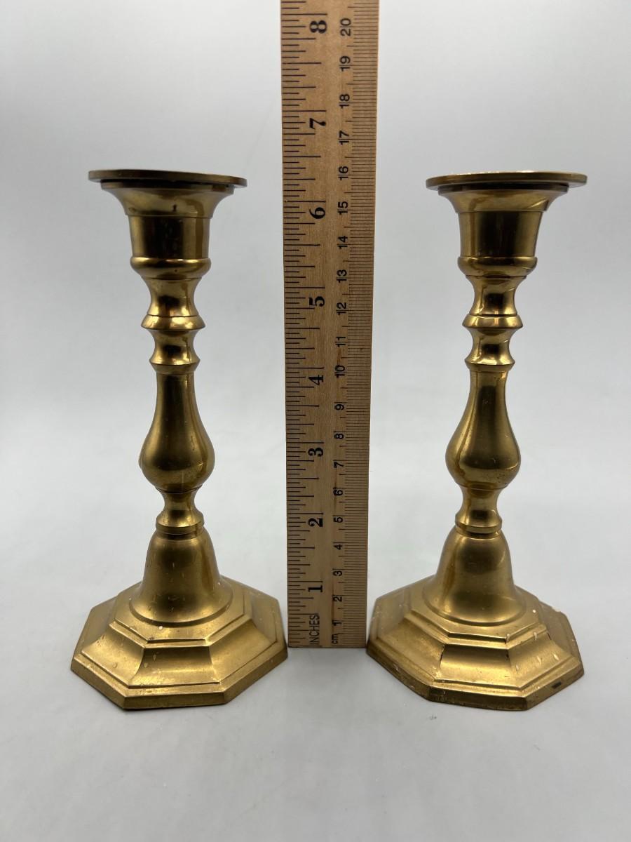 There is no significant damage to either of the candlestick holders and is in overall good collectible or displayable condition. Check pictures for more details and for sizing.