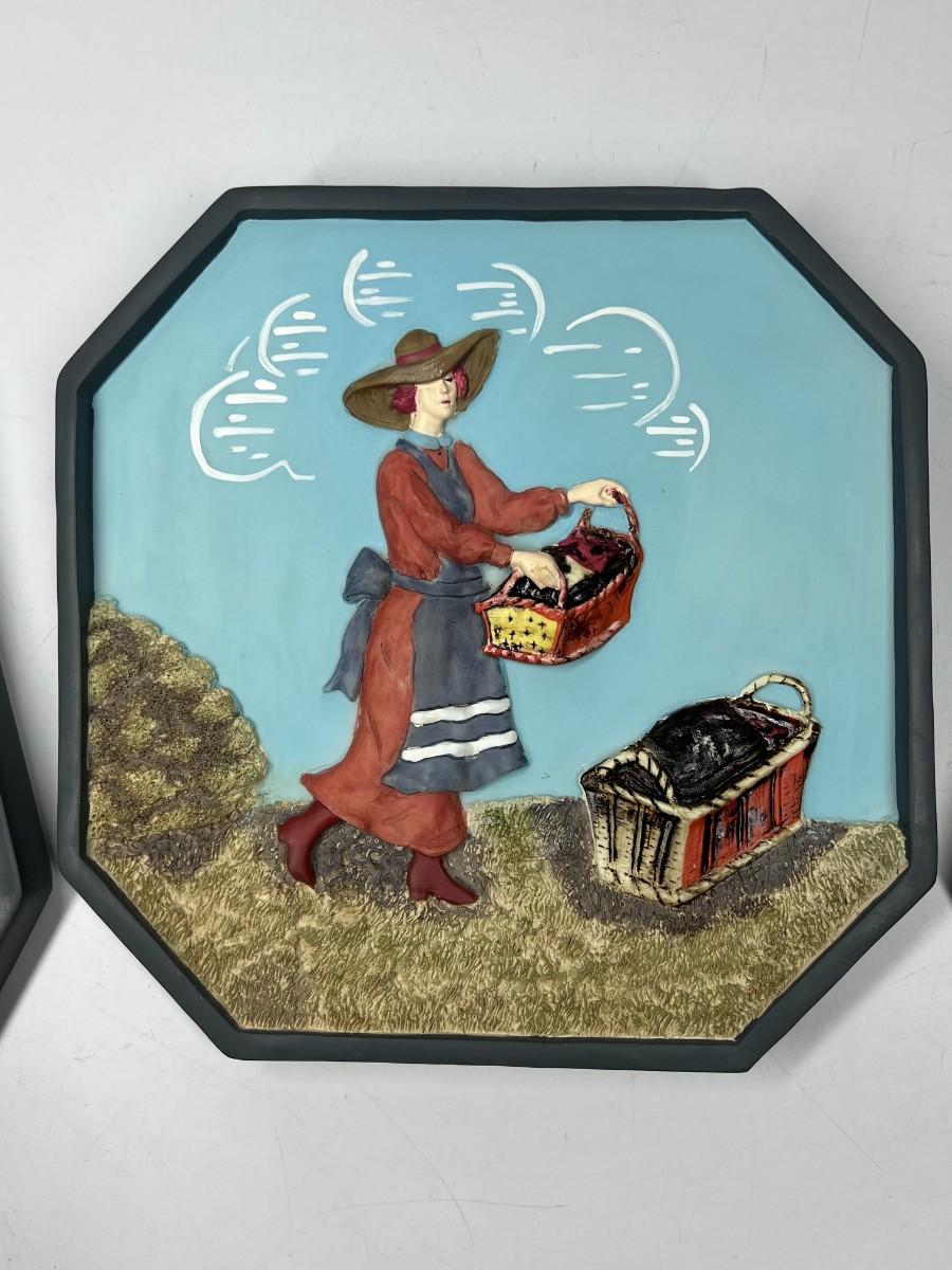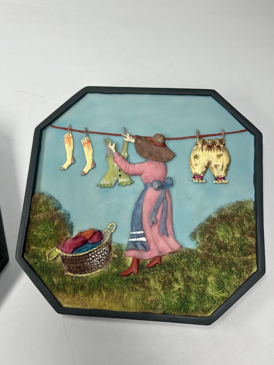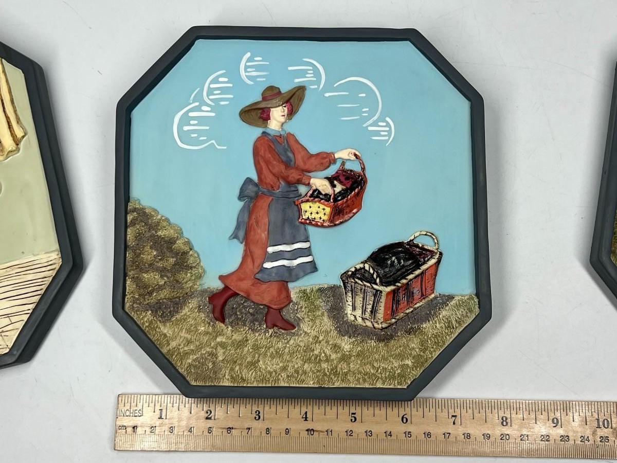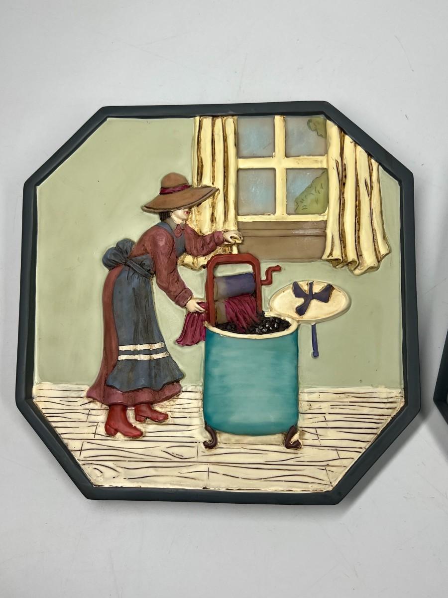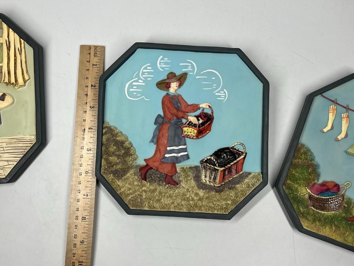 Set of Raised Stone Resin Cottagecore Prarie Farm Woman Wall Art Tiles