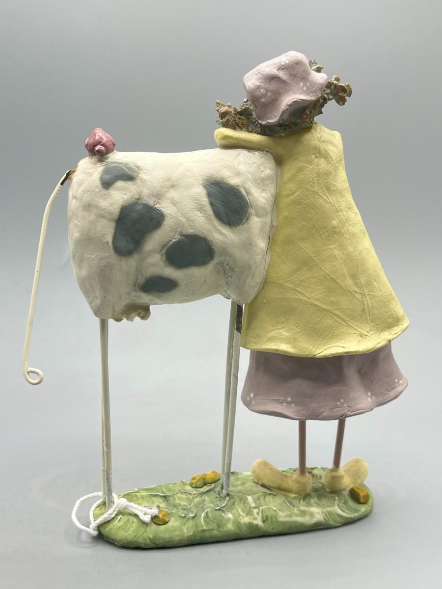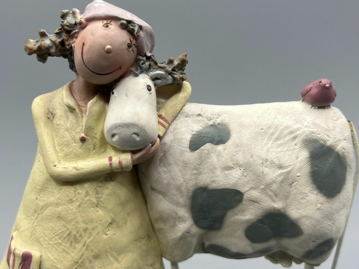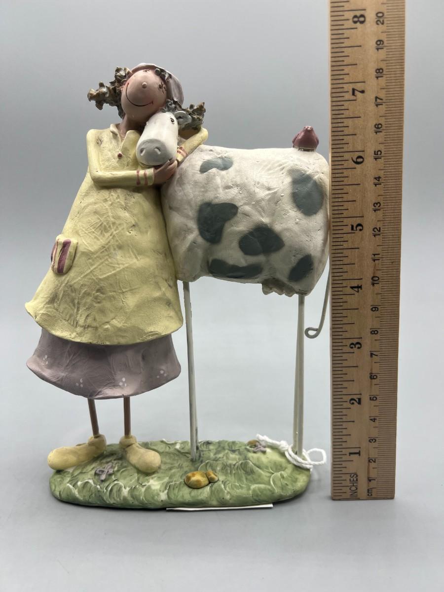 The Design Metal Resin Farmer & Cow Home Decor Figurine