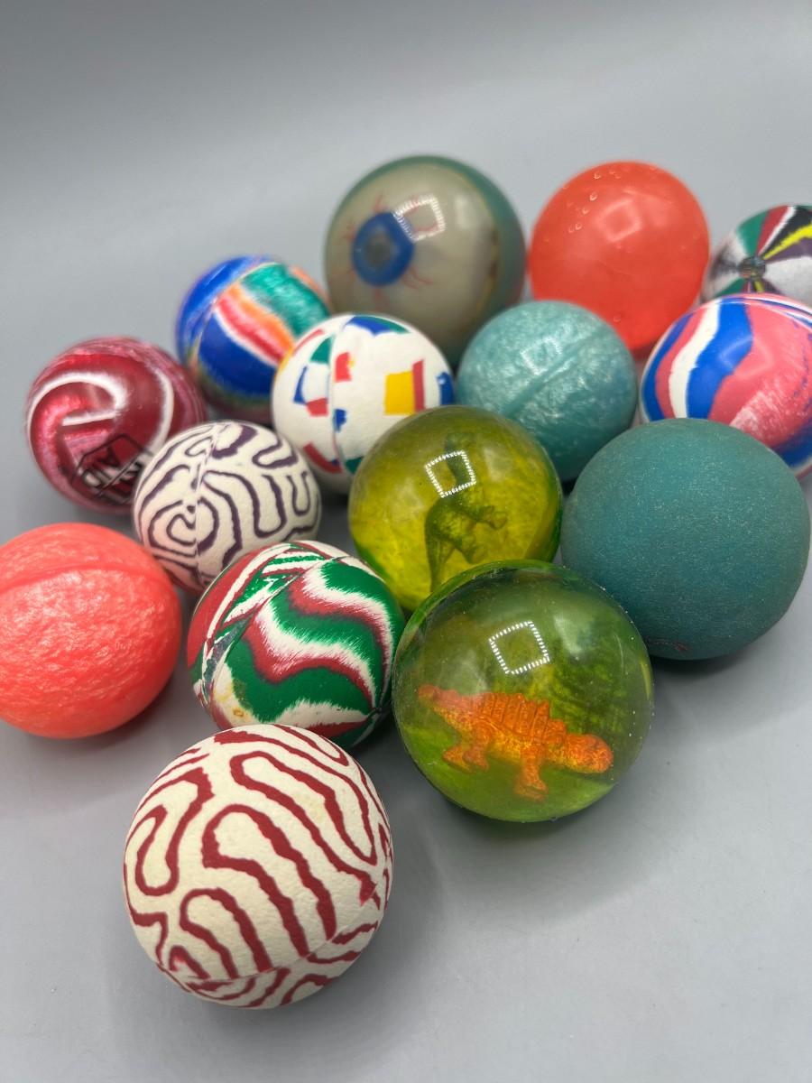 Retro Lot of Colorful Clear Dinosaur Eyeball Miscellaneous Rubber Bouncing Balls