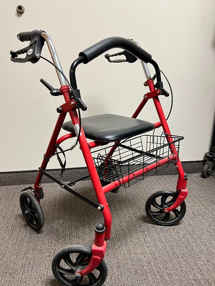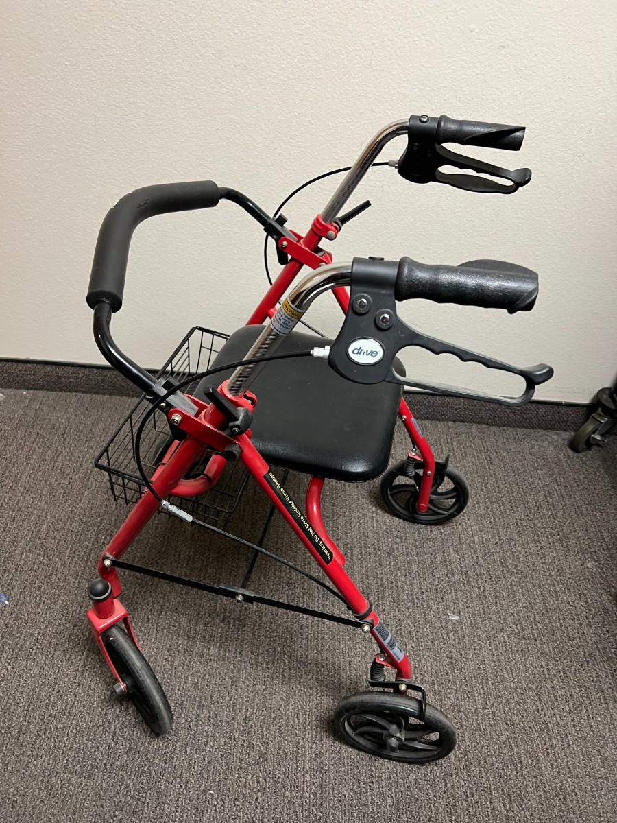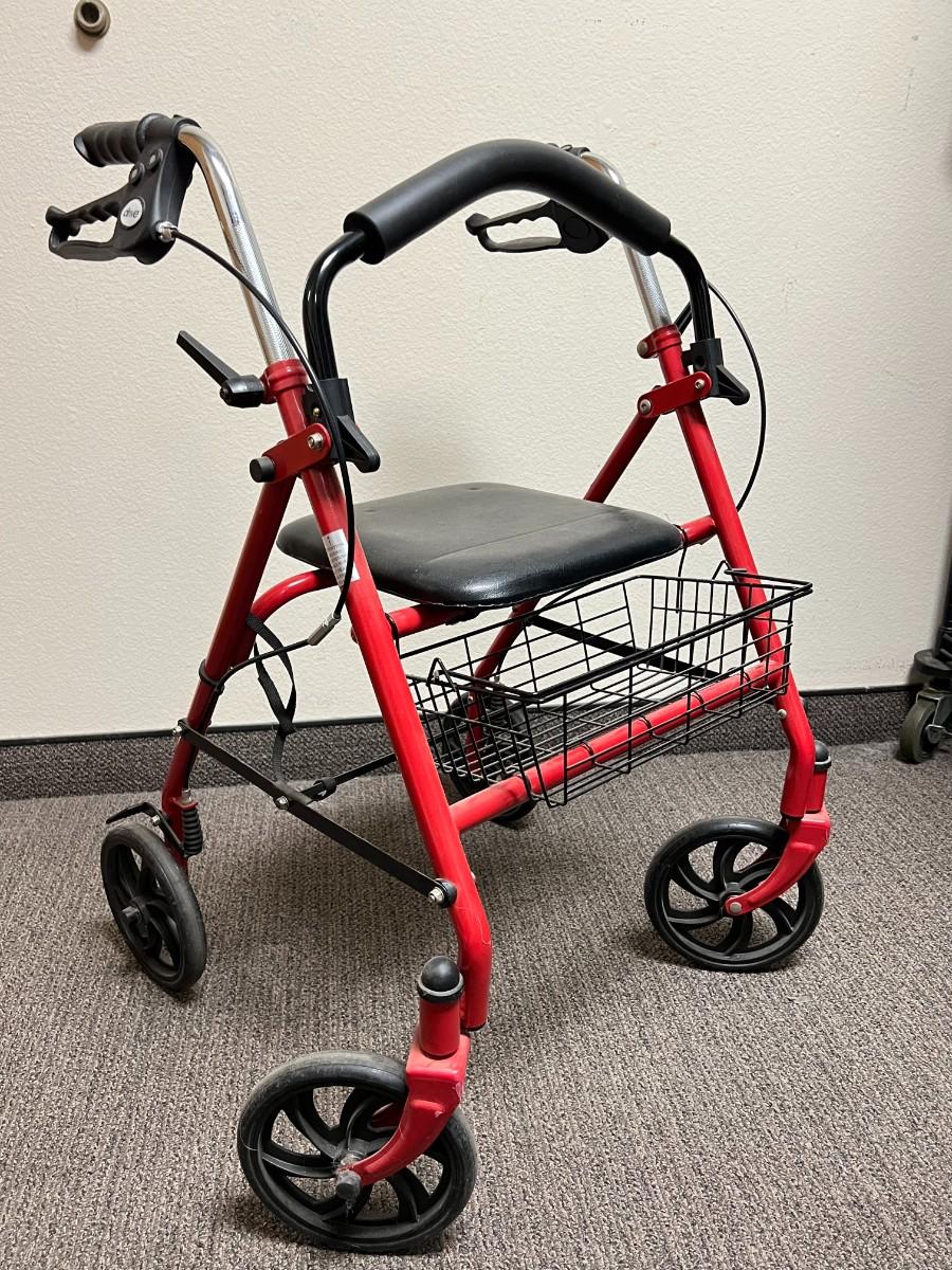 Drive Red Medical 10257RD-1 Four Wheel Rollator with Fold Up Removable Back Support & Basket