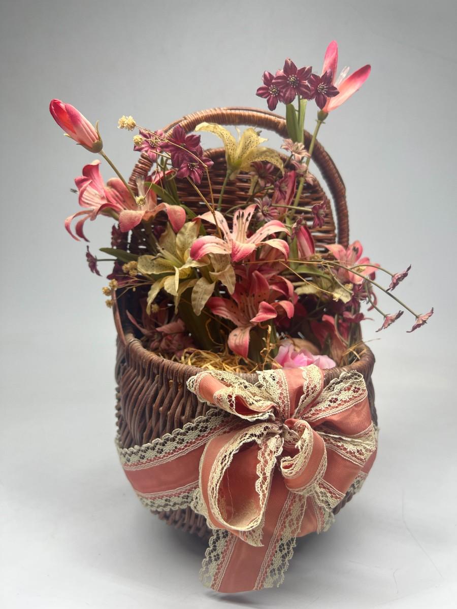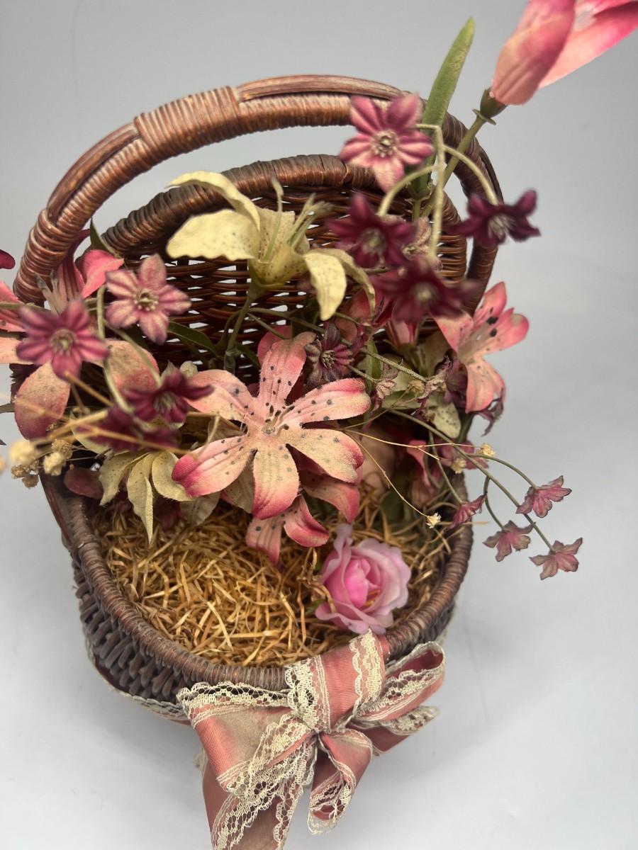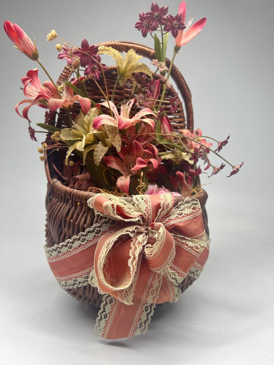 Vintage Cottagecore Faux Flowers Foliage Hanging Basket Home Decor