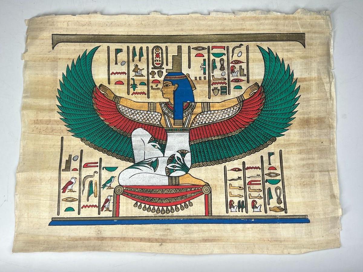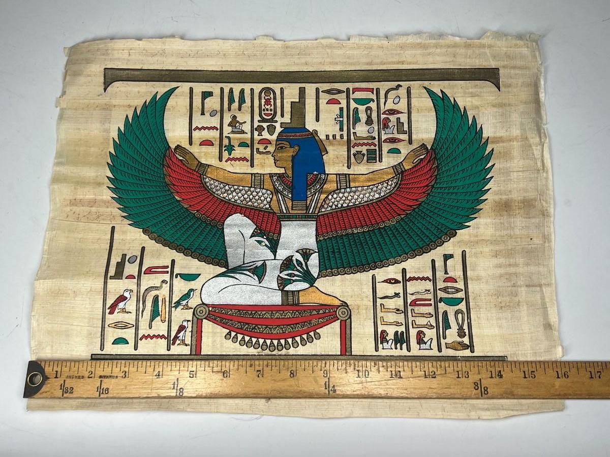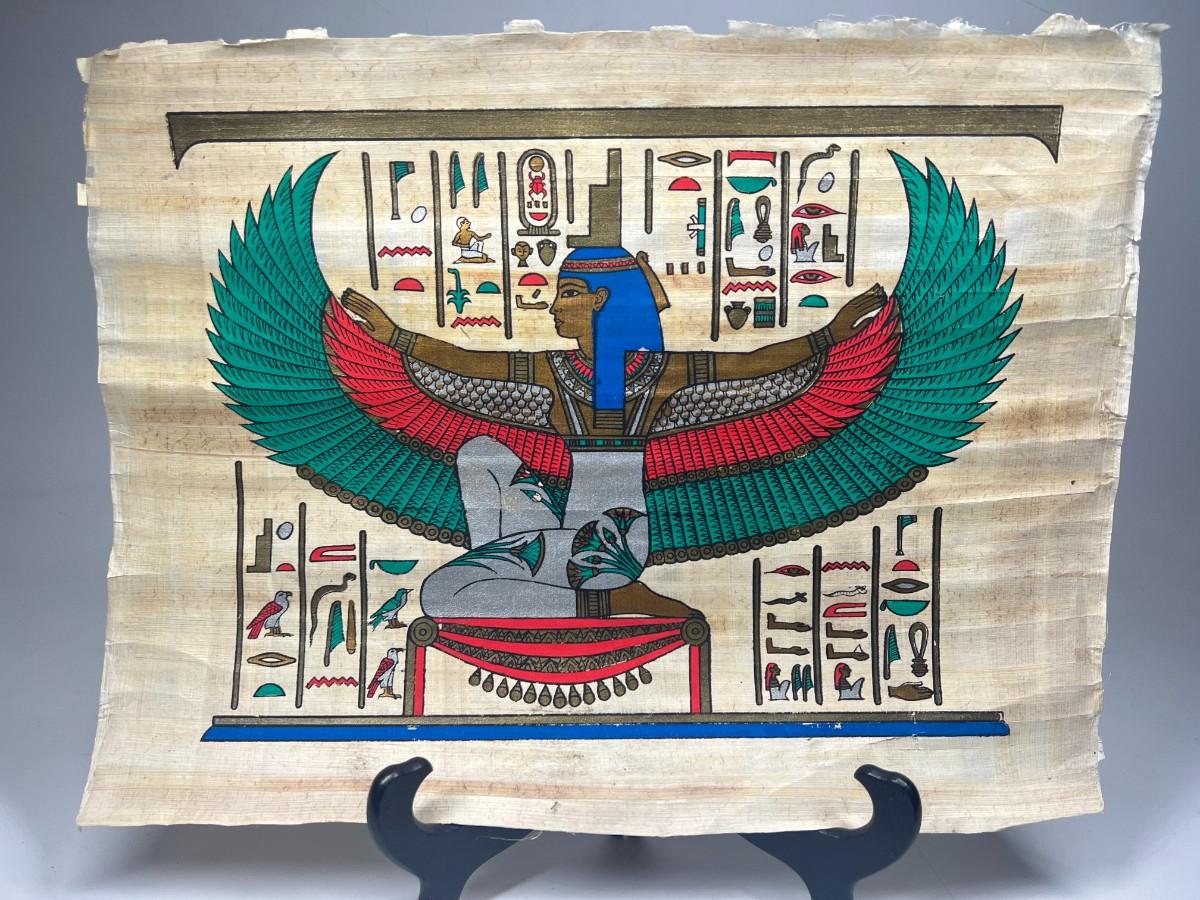 Papyrus Egyptian Reproduction Wing Deity Hieroglyphics Scroll Art
