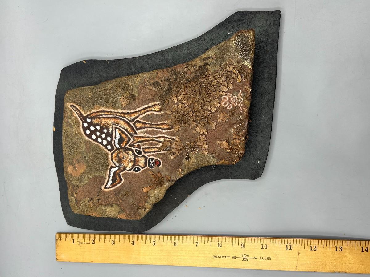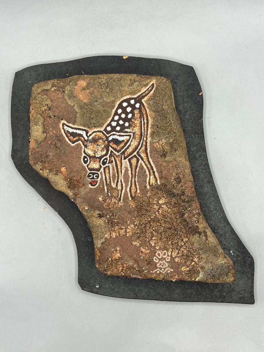 Vintage Pete Cattermole Deer Buck Slab Stone Rock Etching Petroglyph Pictograph Hanging Art