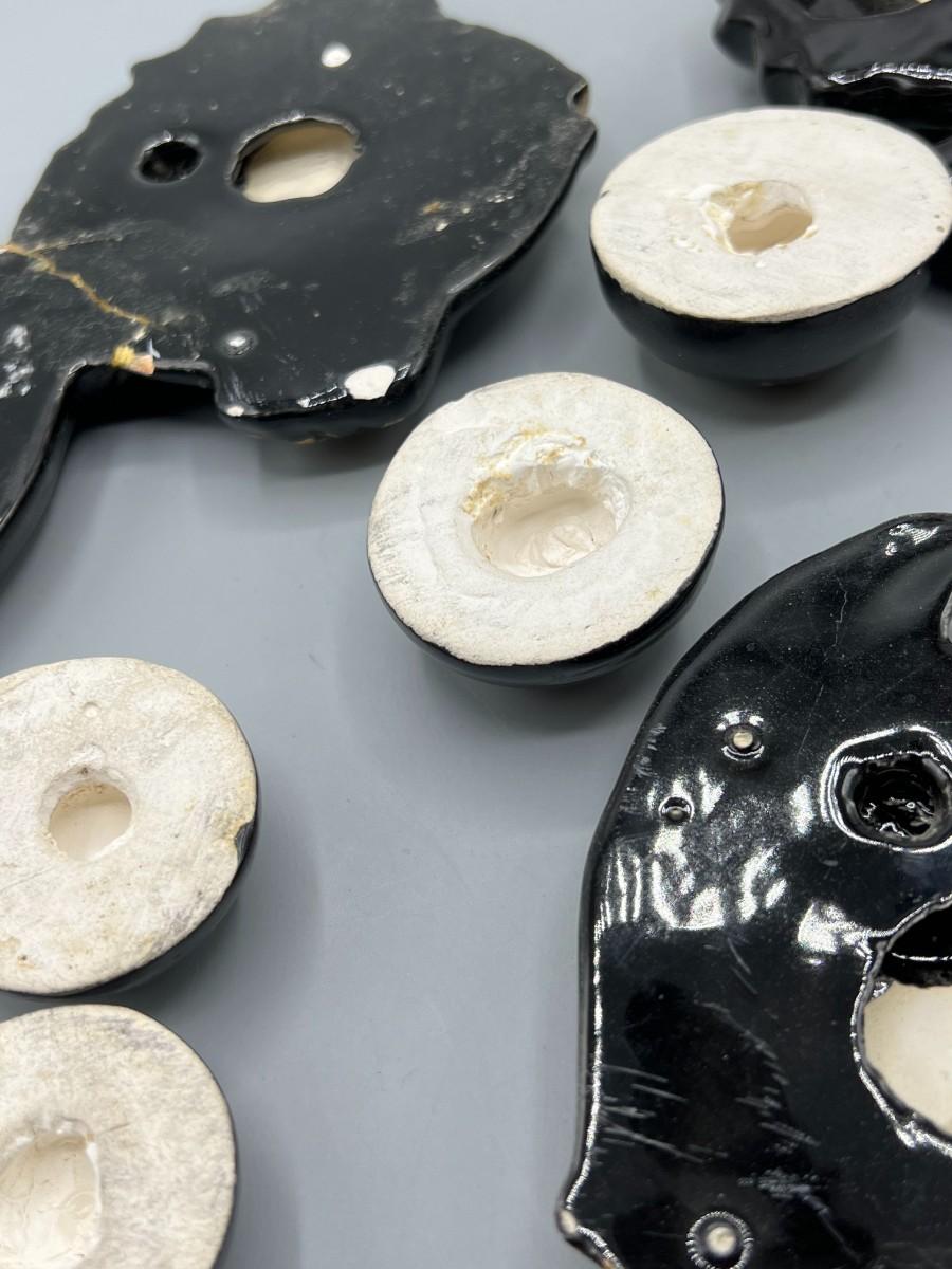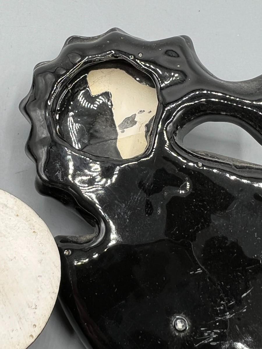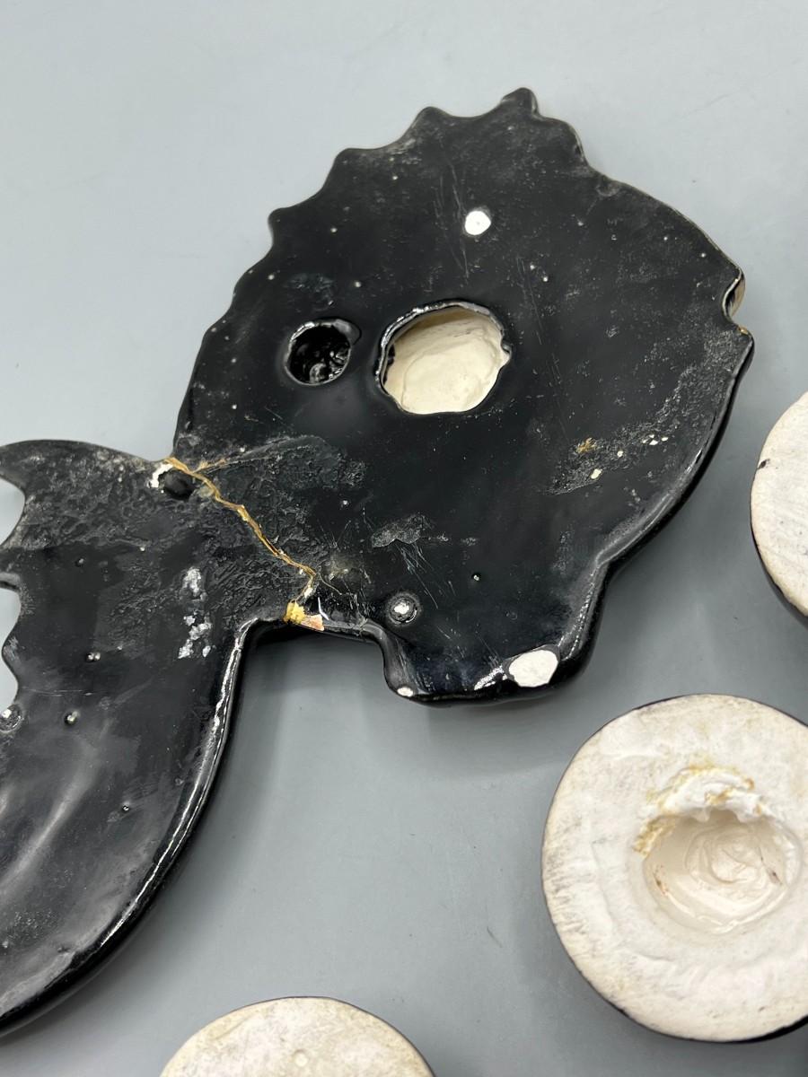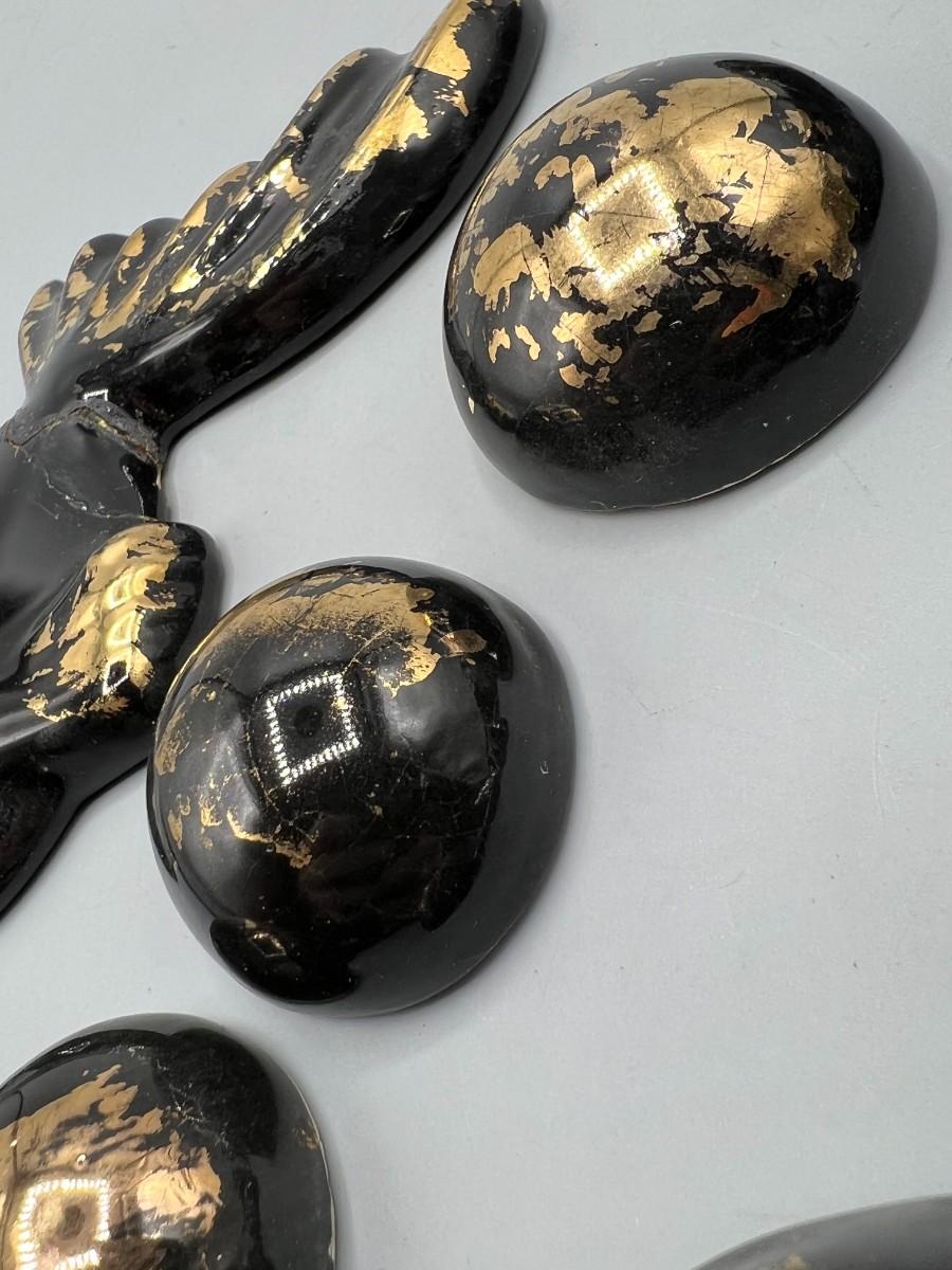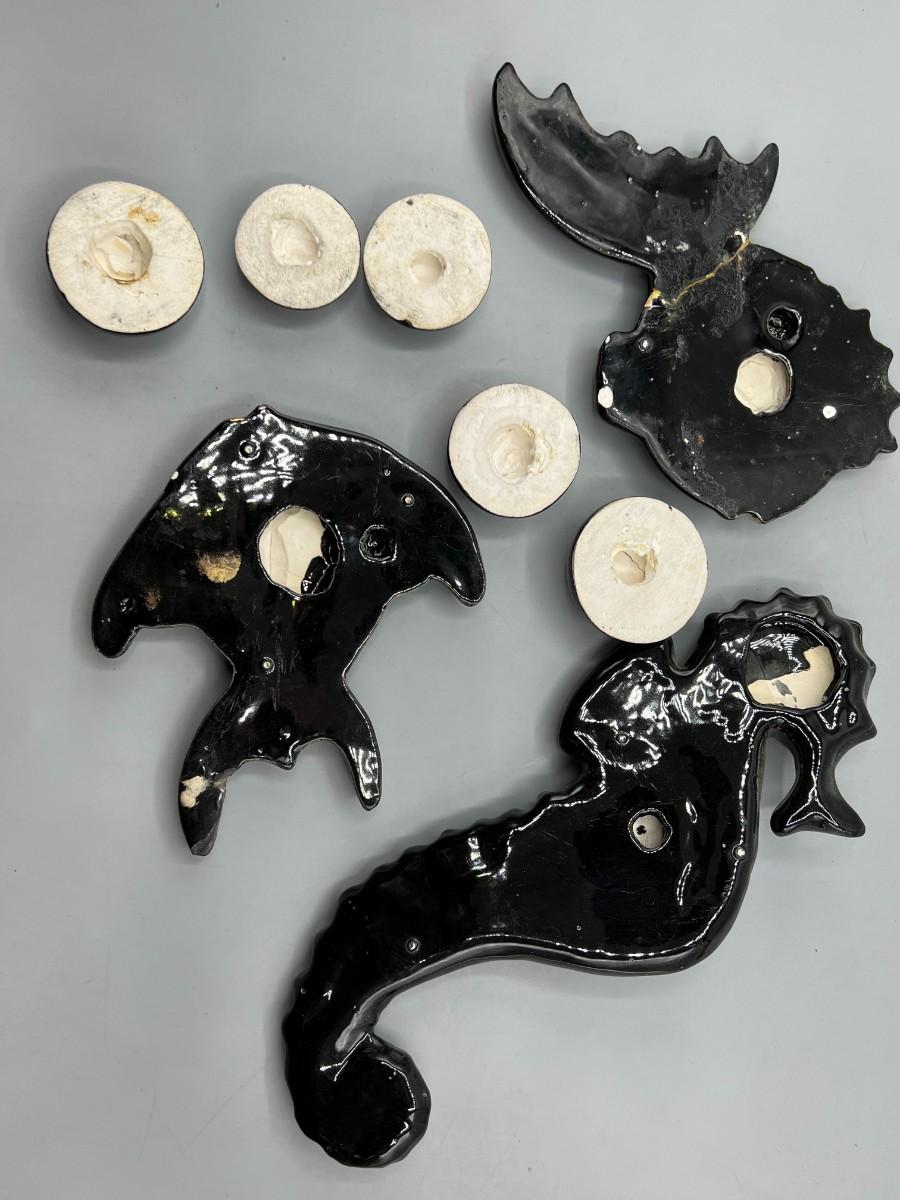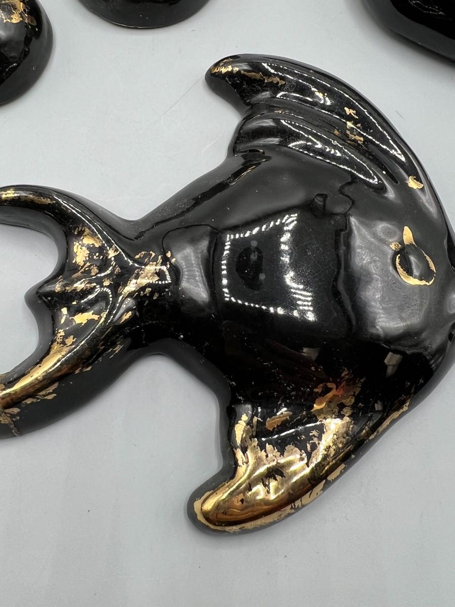 Vintage Set of Art Deco Black & Gold Splatter Ceramic Nautical Seahorse Fish Bubble Wall Hanging Decor