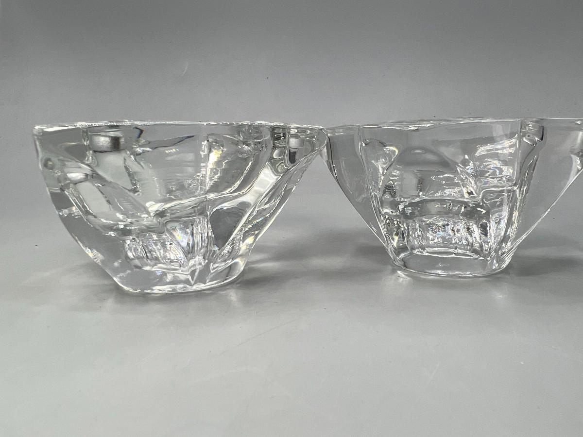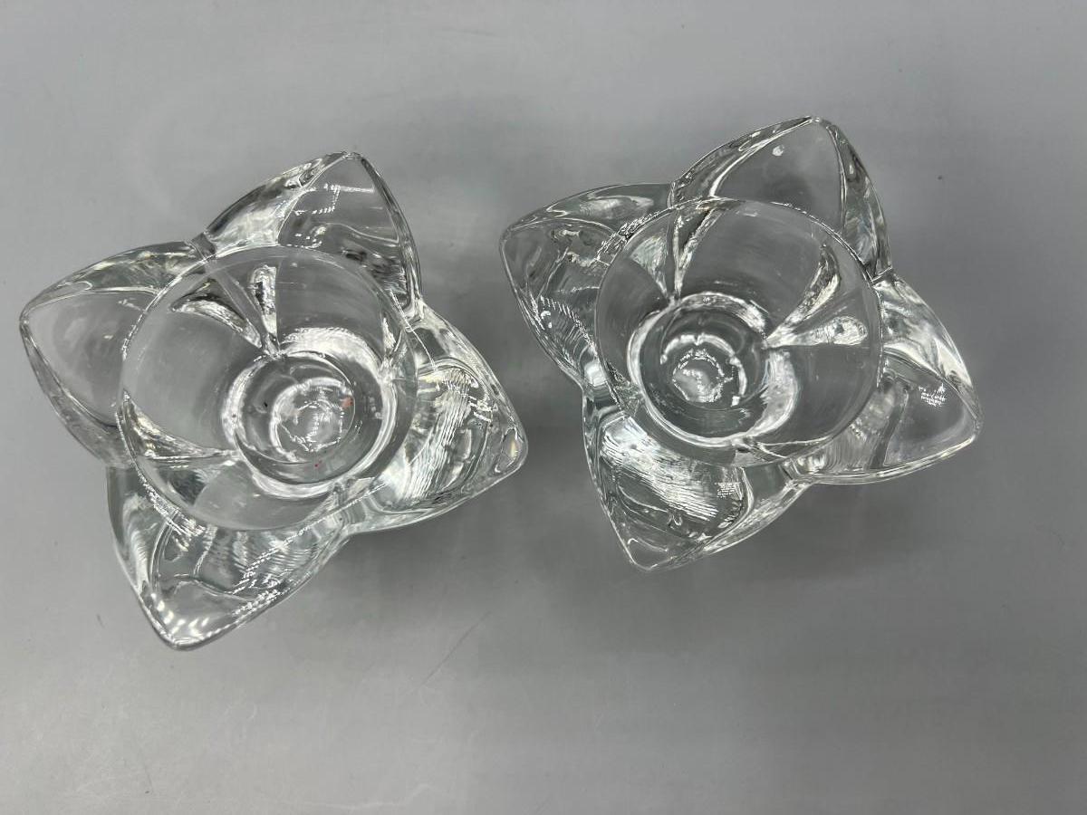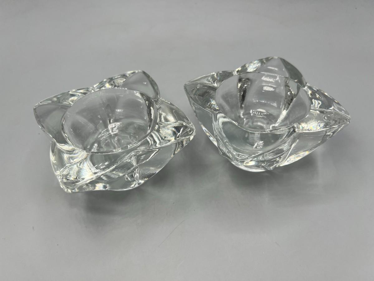 Pair of Retro Heavy Glass Single Mid Century Modern Candlestick Holders