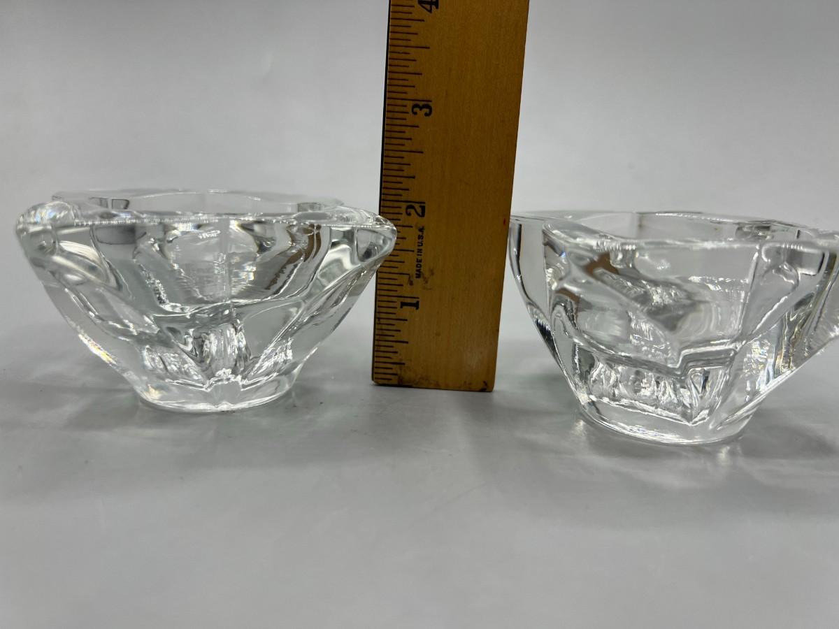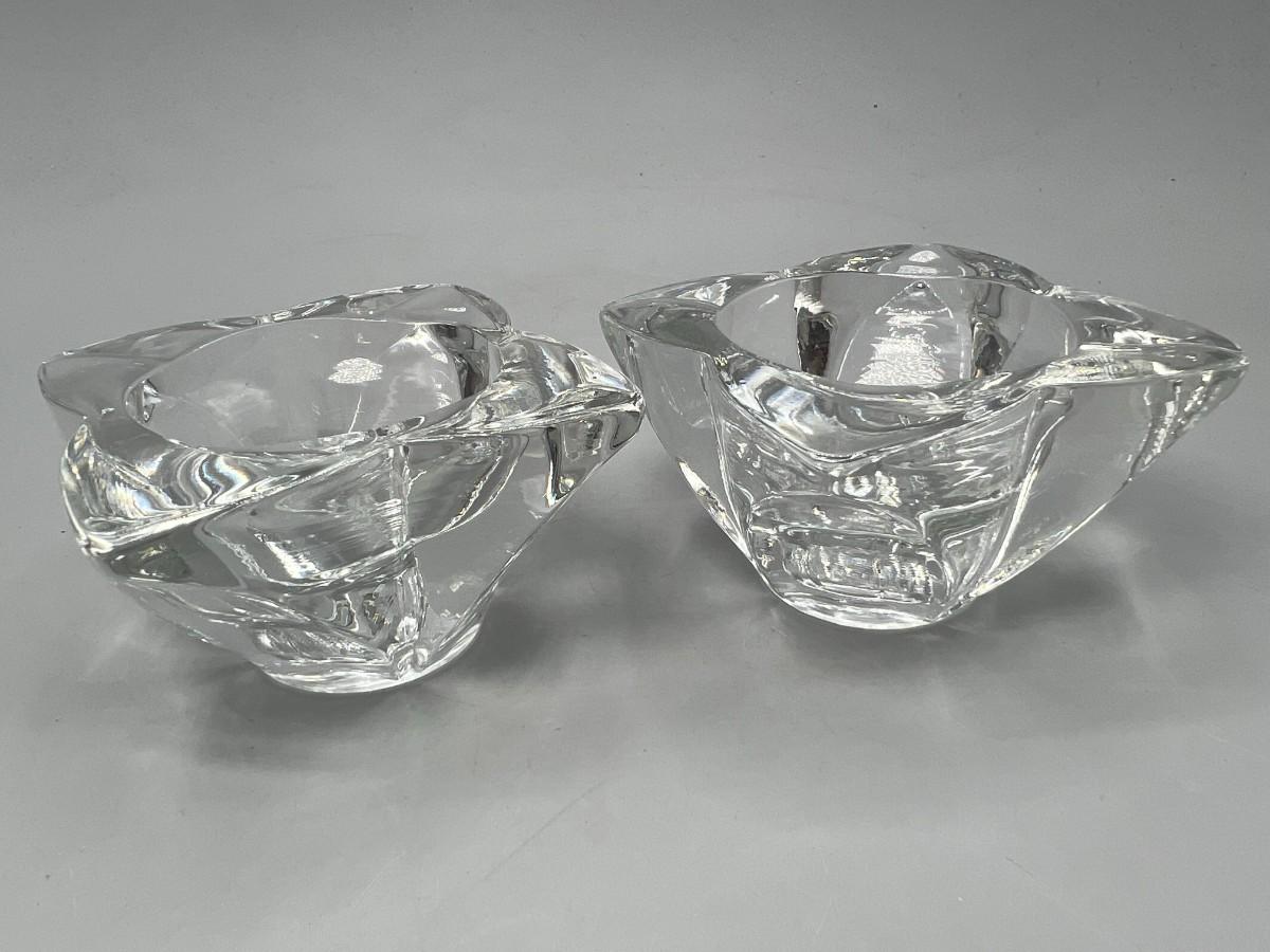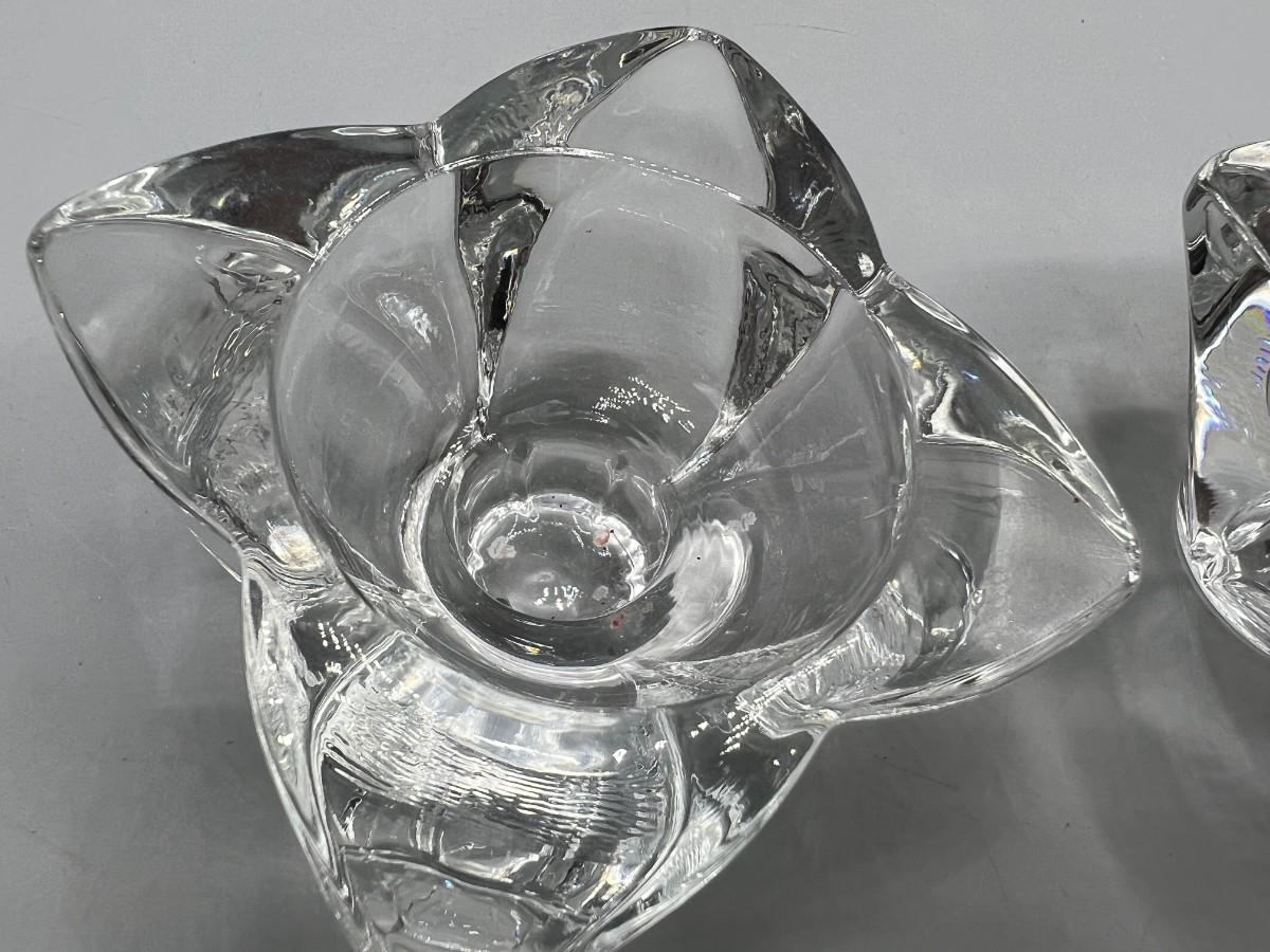 Pair of Retro Heavy Glass Single Mid Century Modern Candlestick Holders