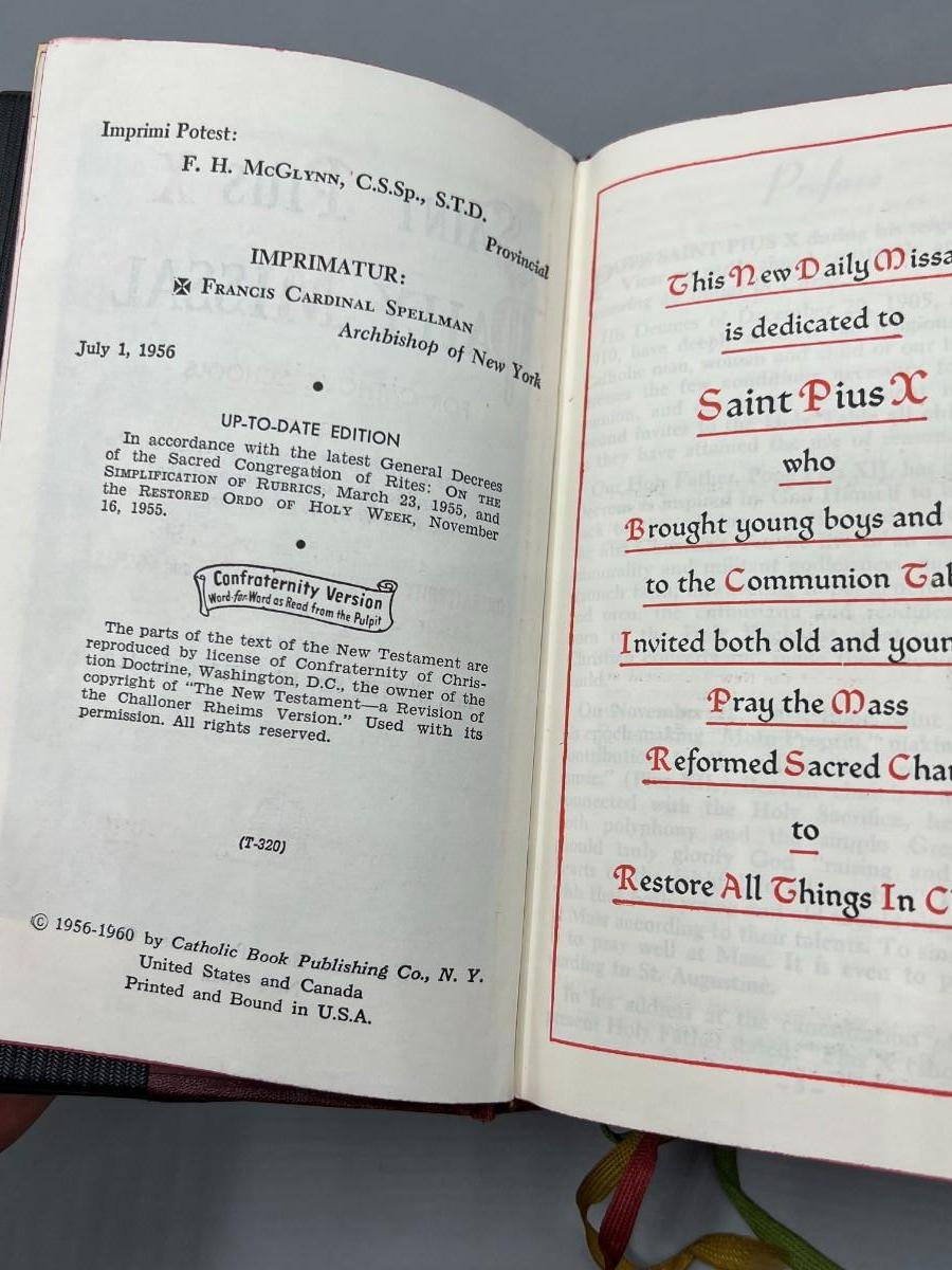 Vintage Saint Pius X Daily Missal for Catholic Schools Religious Illustrated Sermon Leading Book