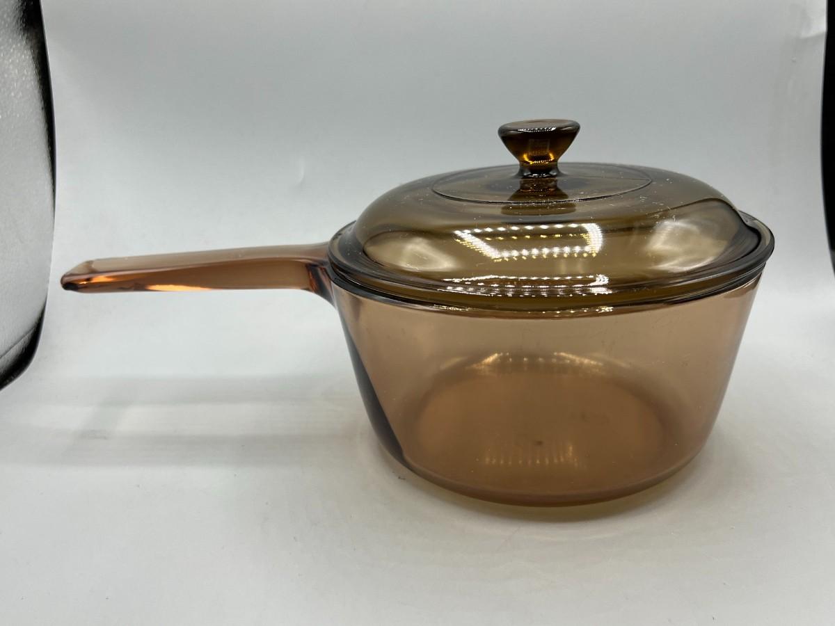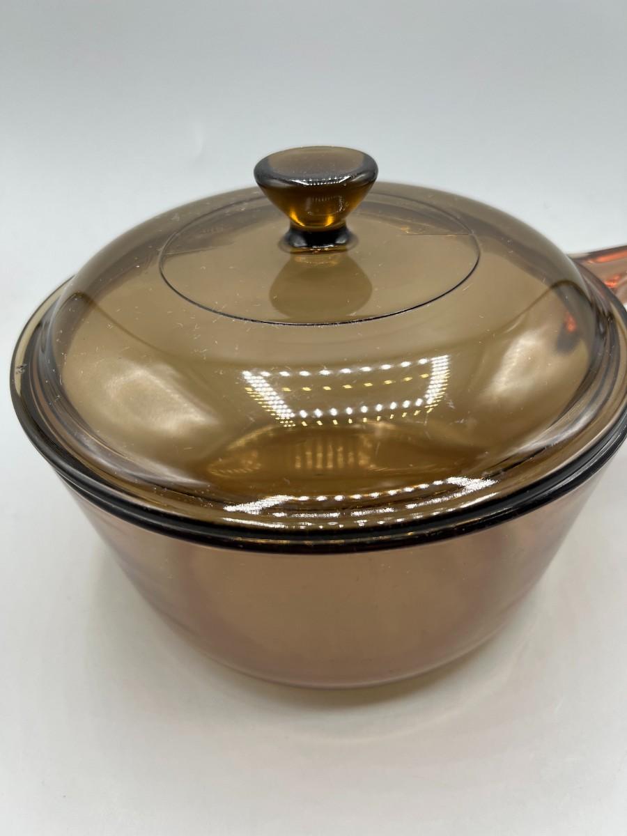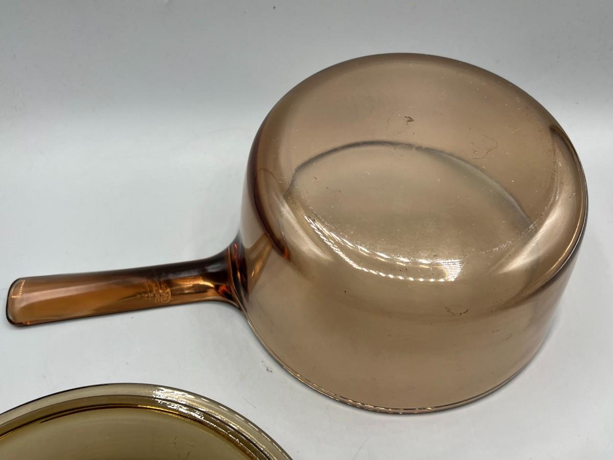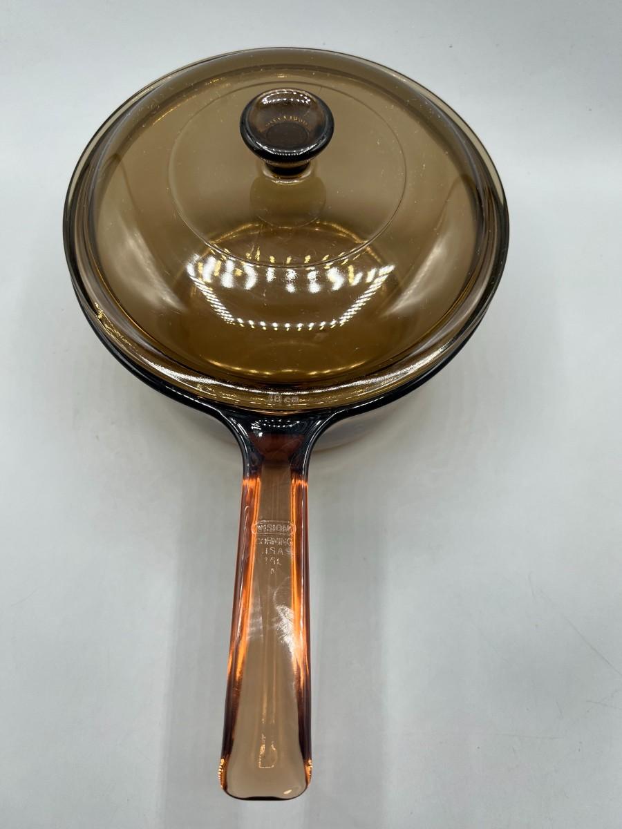 Vintage Corning Vision Ware Amber Large 15L Deep Dish Frying Skillet Dish with Lid
