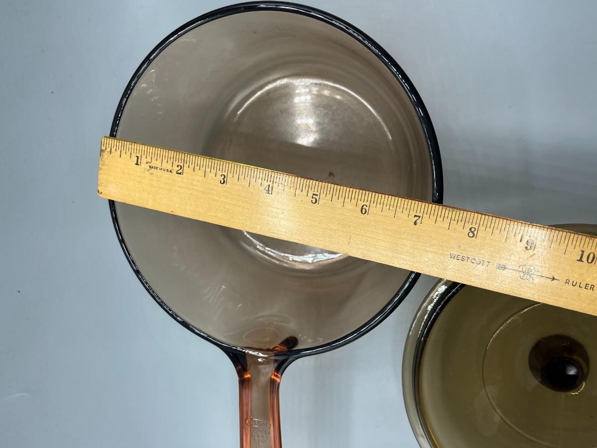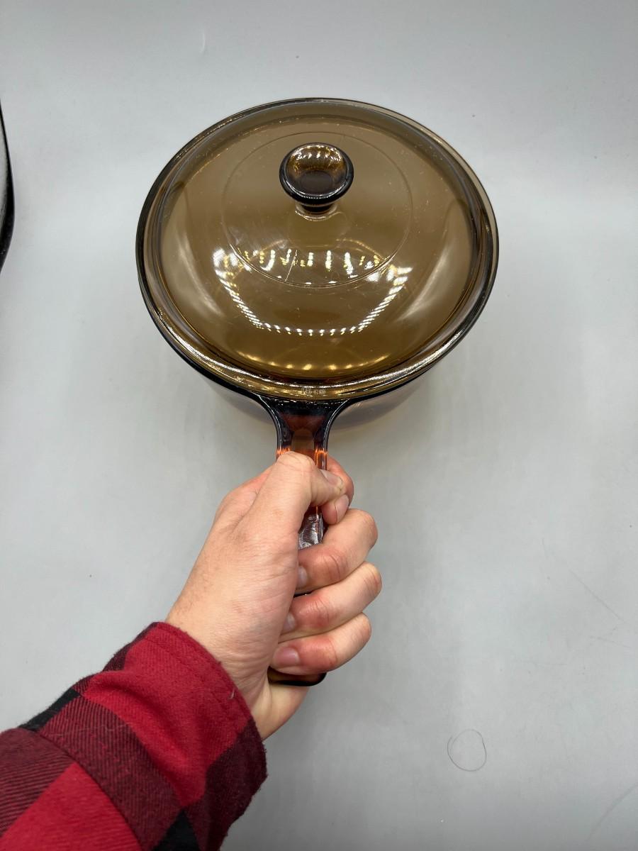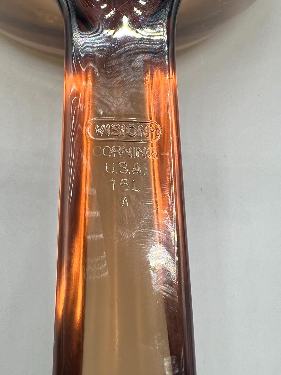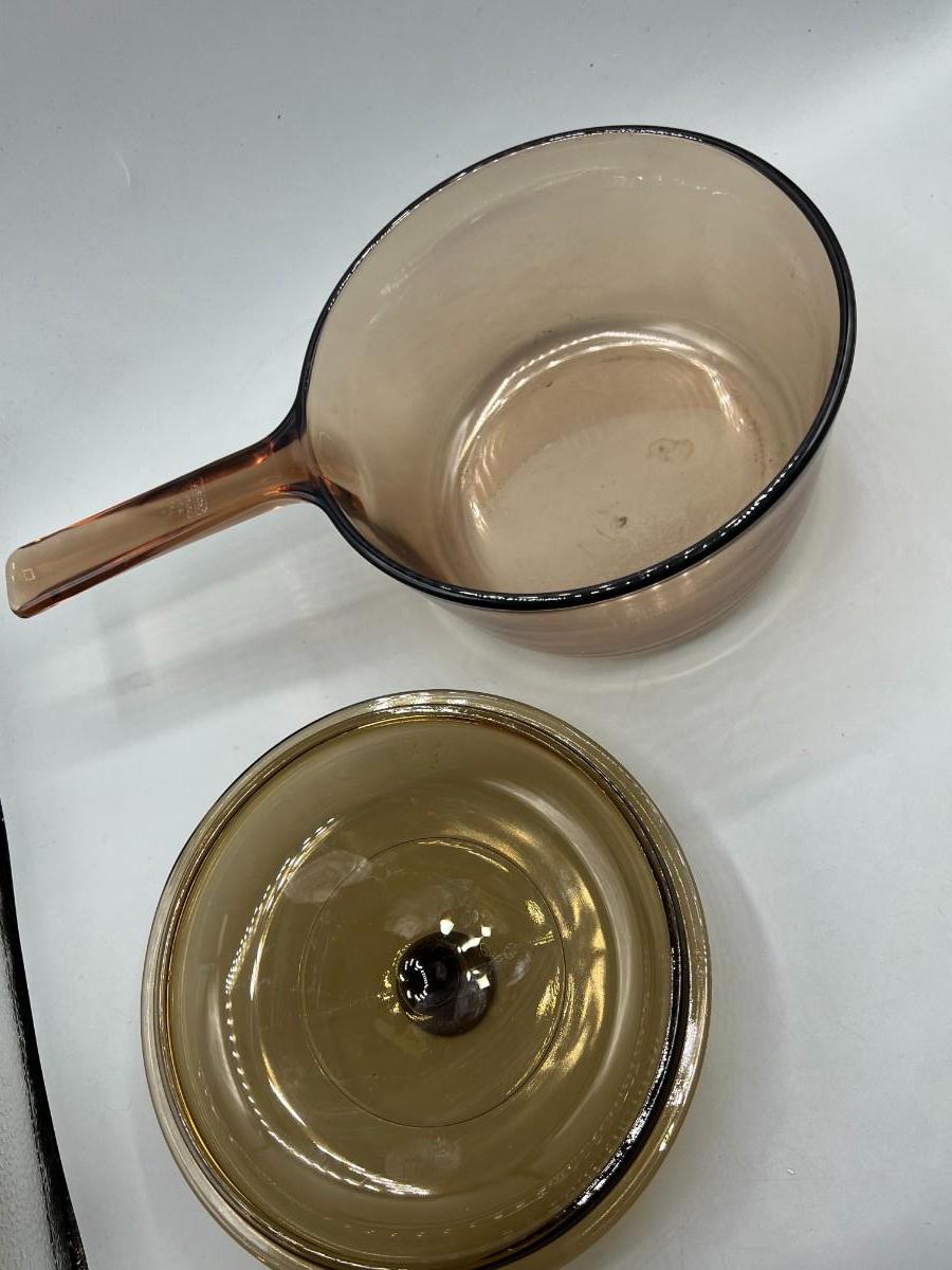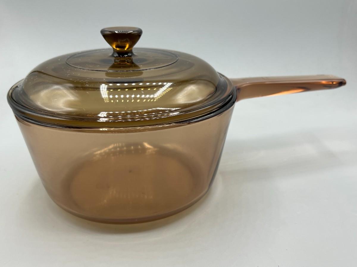 Vintage Corning Vision Ware Amber Large 15L Deep Dish Frying Skillet Dish with Lid