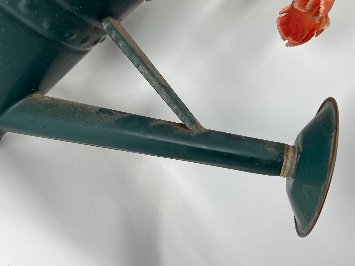 There is retro wear to the watering can, but there is no significant damage and is in good useable or displayable condition. Check pictures for more details and for sizing.