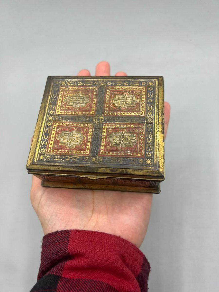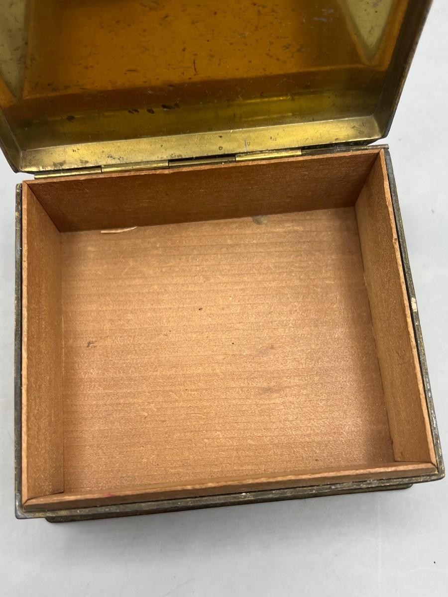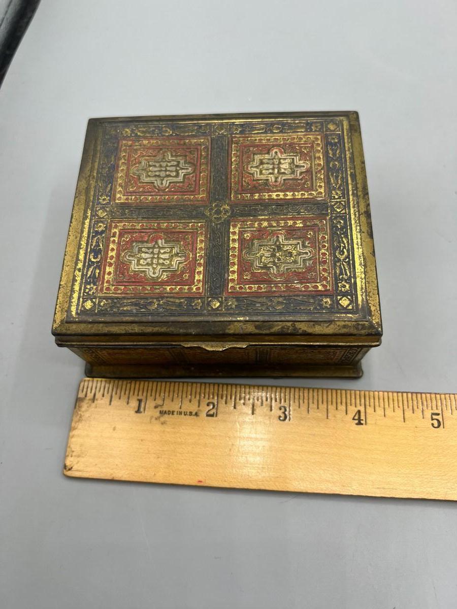 There is wear to the trinket box, but there is no significant damage and is in overall good collectible or displayable condition. Check pictures for more details and for sizing.