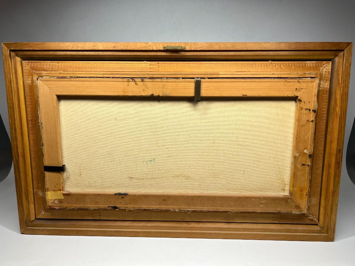 There is no significant damage to the canvas or the frame and is in overall good collectible or displayable condition. Check pictures for more details and for sizing.