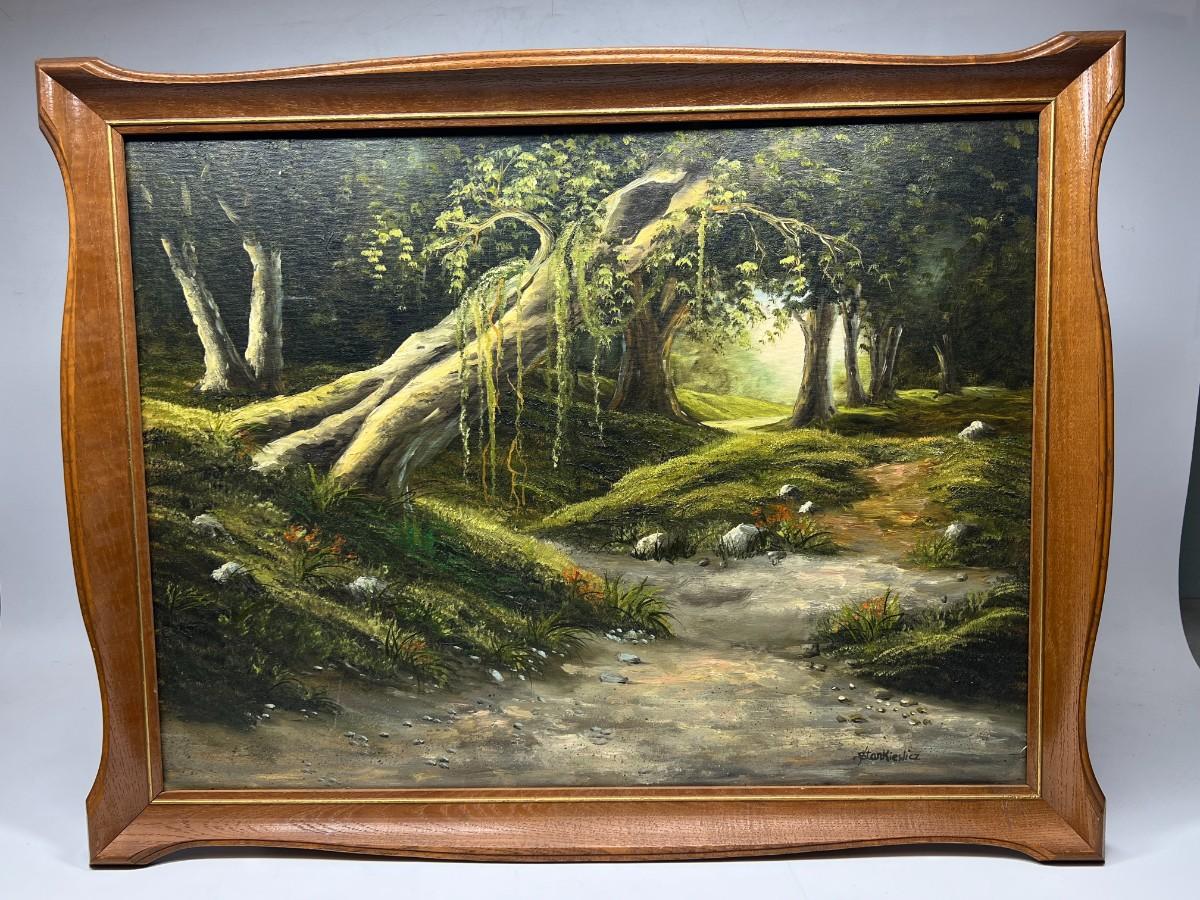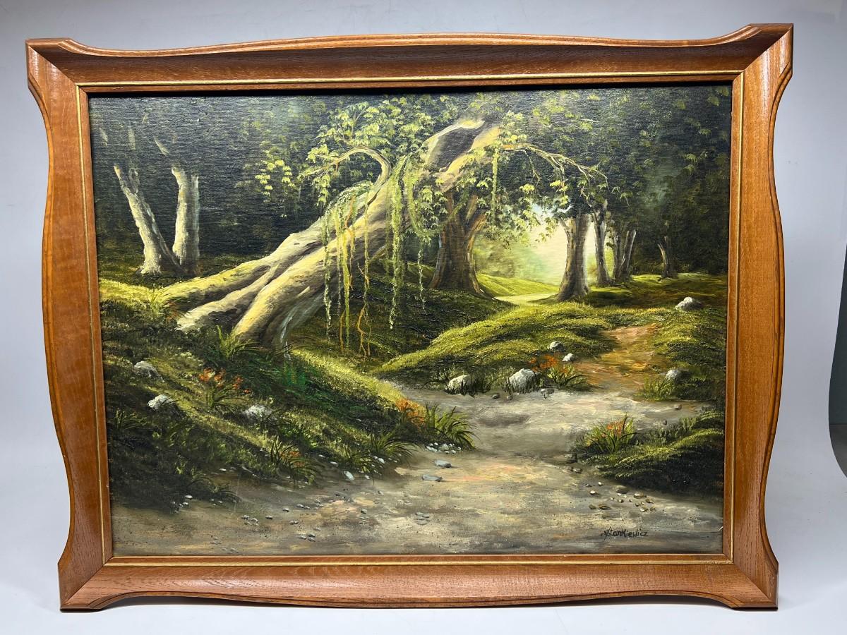 Vintage Original Textured Oil Painting Forest Scene Oils by Stankiewicz Garden Grove