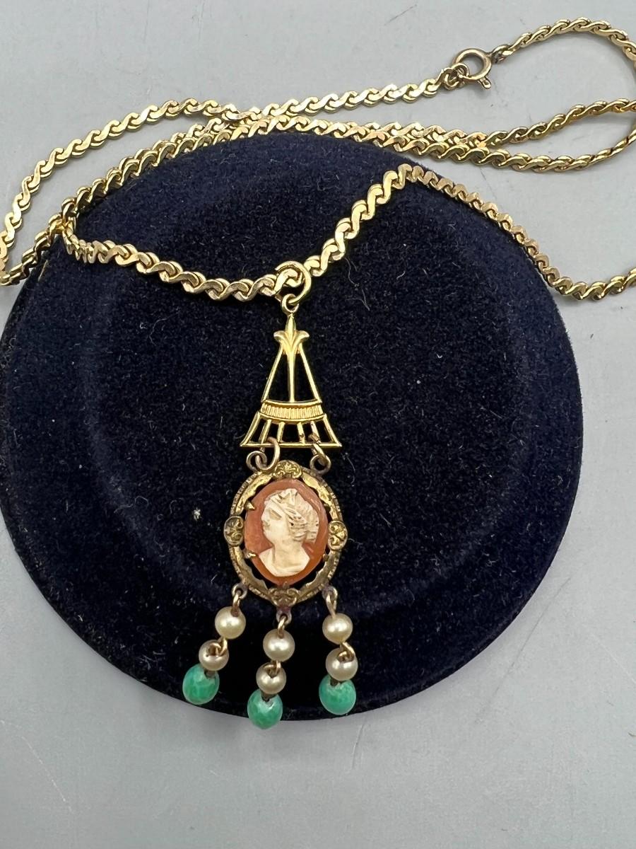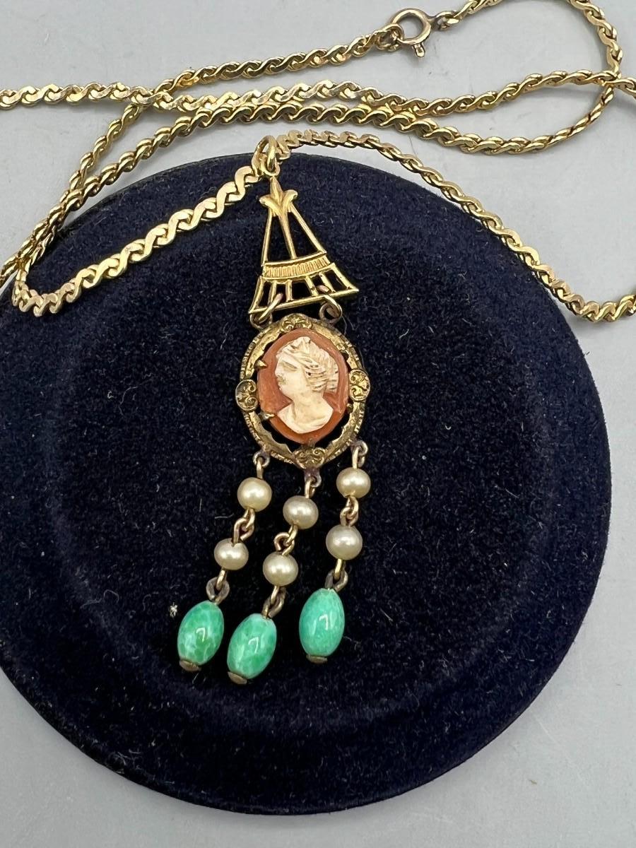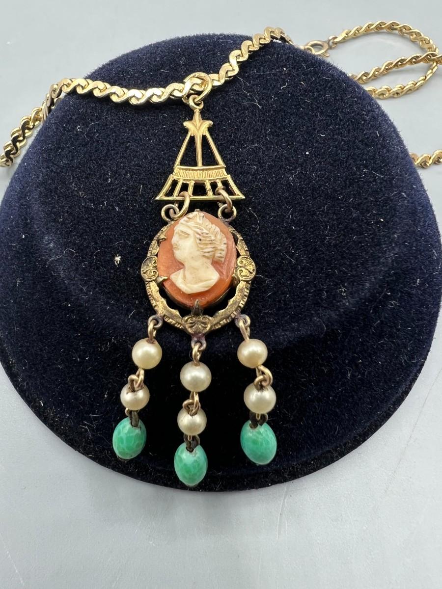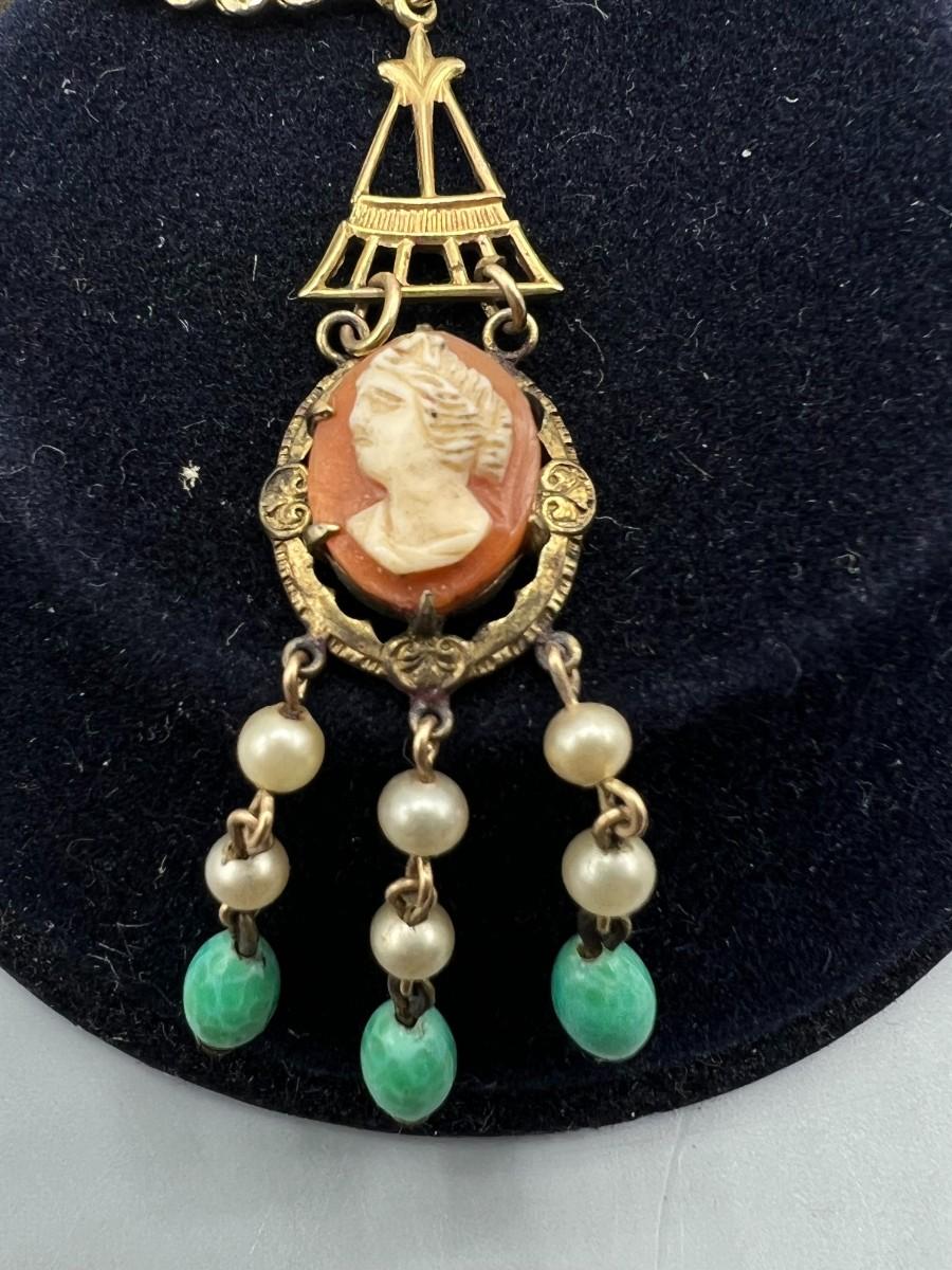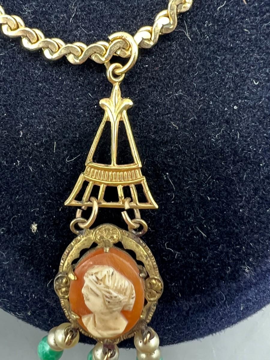 Vintage Cameo Portrait Art Nouveau Style Gold Womens Fashion Necklace