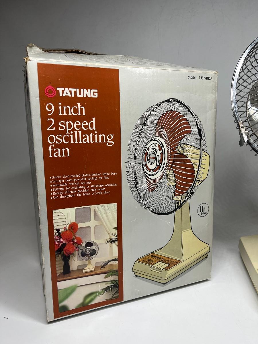 Vintage Tatung Rotating Oscillating 2-Speed Deluxe Hi-Torque Desk Fan Desk Fan with Original Box