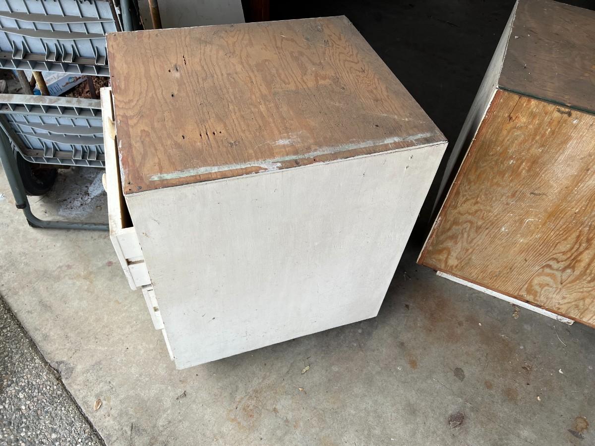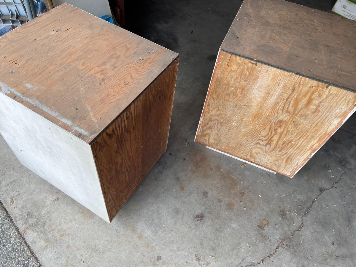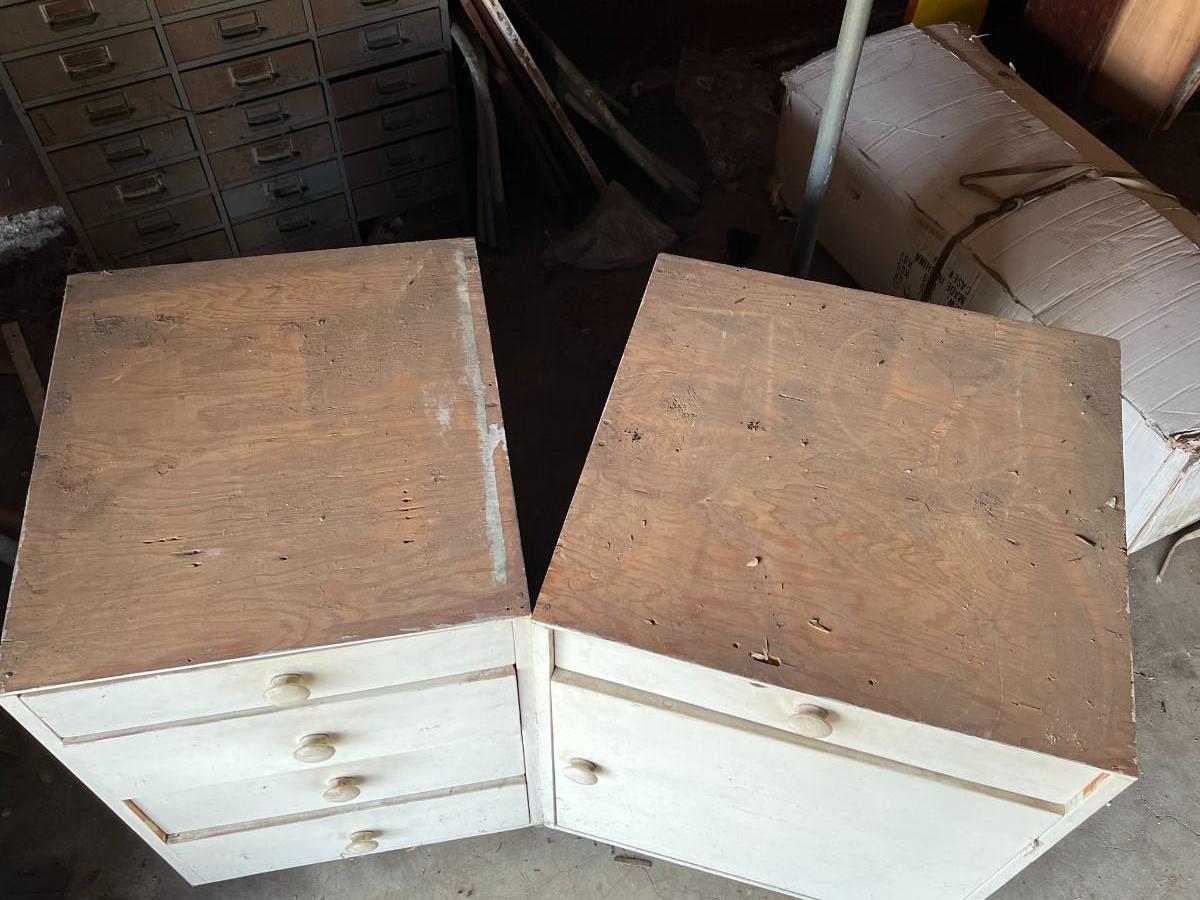 There is some noticeable vintage wear and use to both of the cabinets and is in overall in fair useable condition. Check pictures for more details and for sizing.