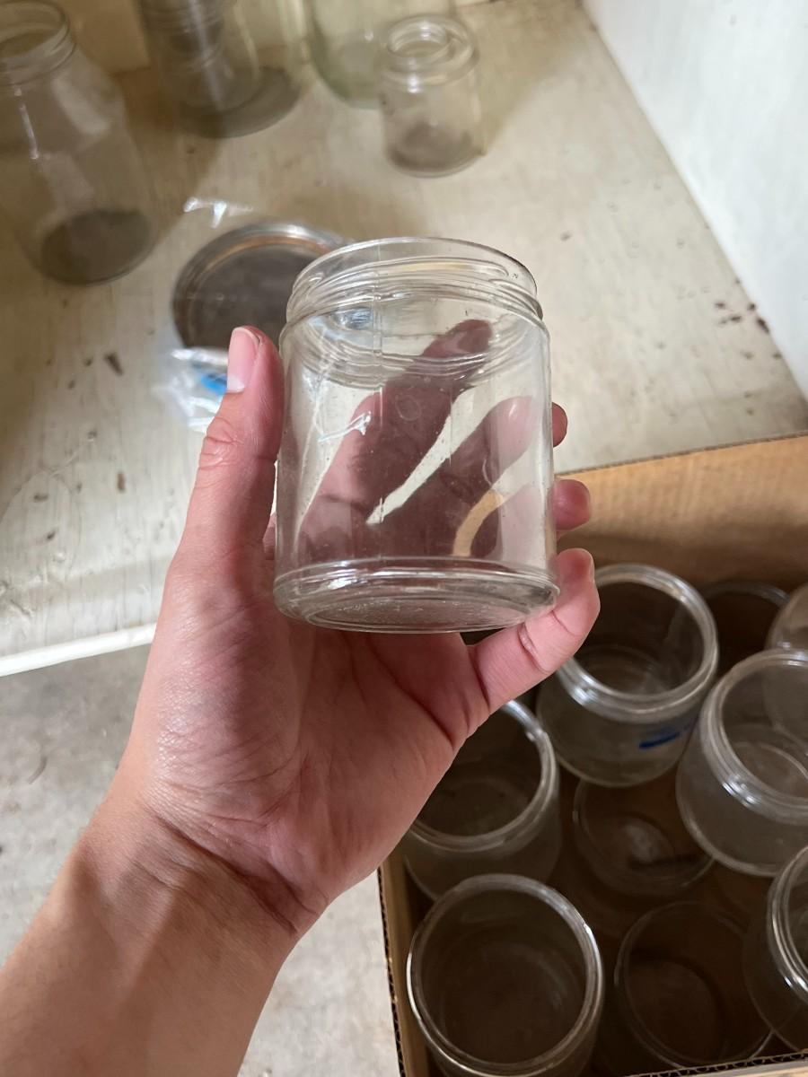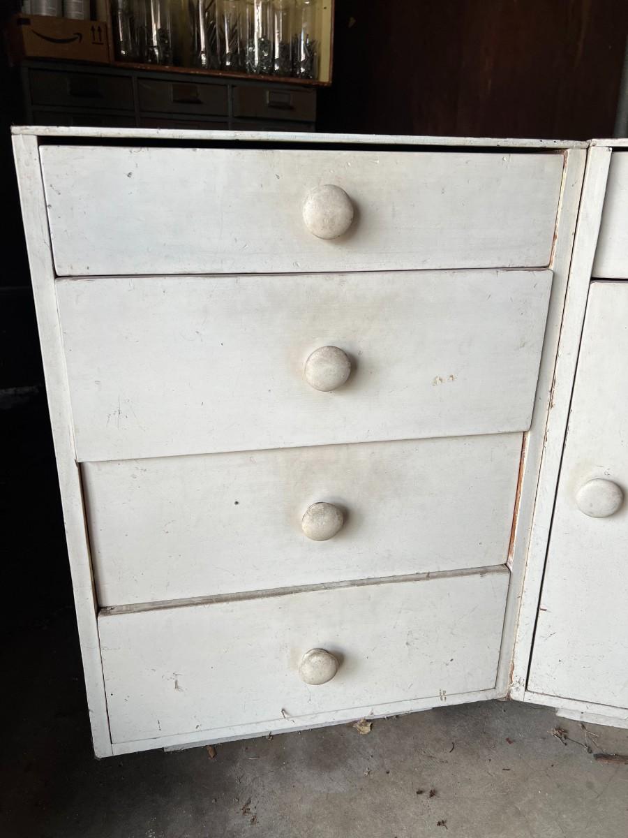 Vintage Pair of Matching Handmade White Multi Drawer Cabinets with Glass Jars