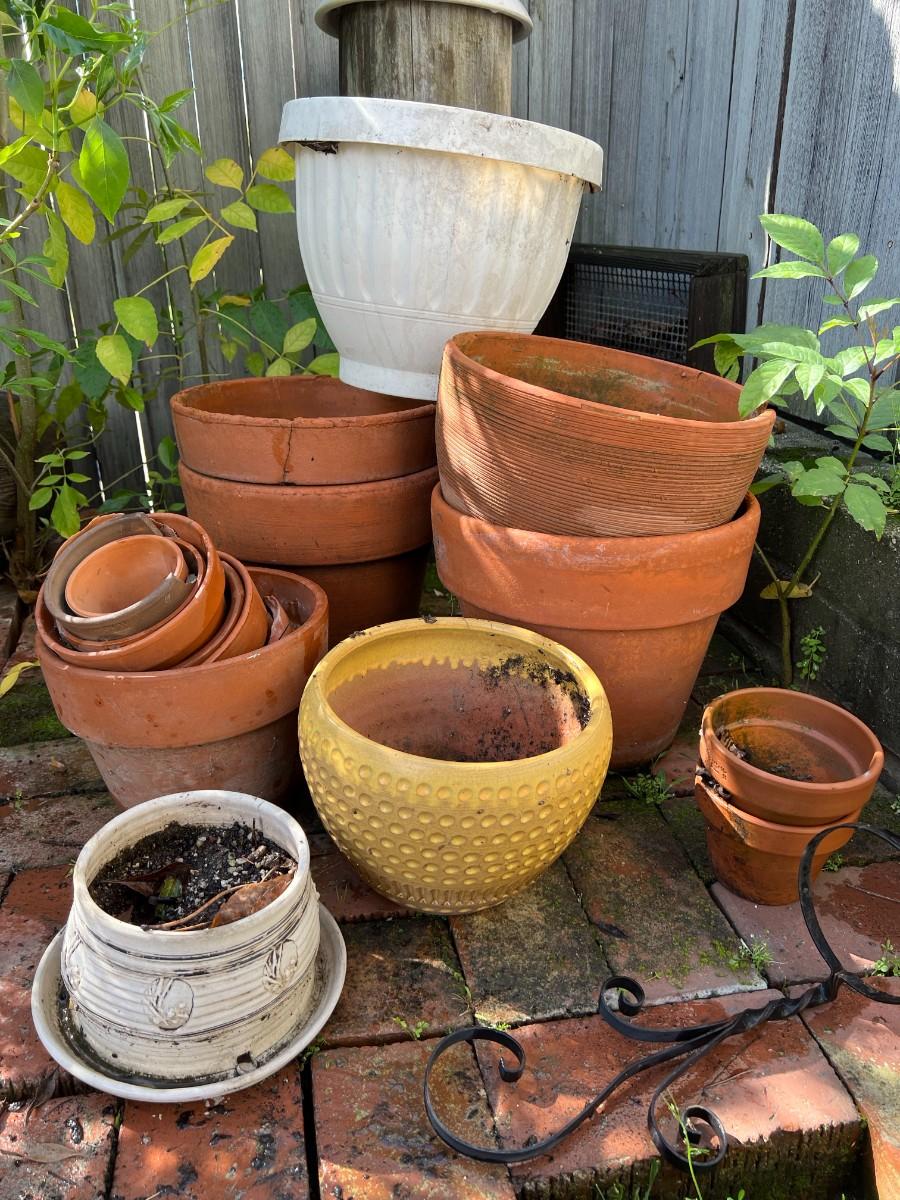 Lot of Miscellaneous Sized Home Garden Terracotta Pottery & Plastic Flower Pots