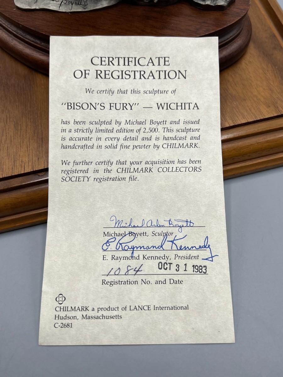 "Bison's Fury " Wichita Pewter Statuette by Michael Boyett Limited Edition Chilmark Collectors COA w/ Display Case