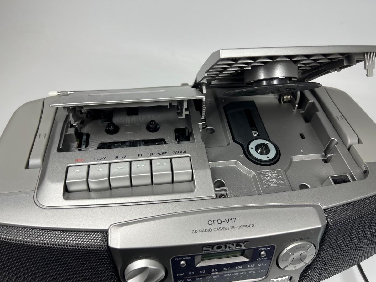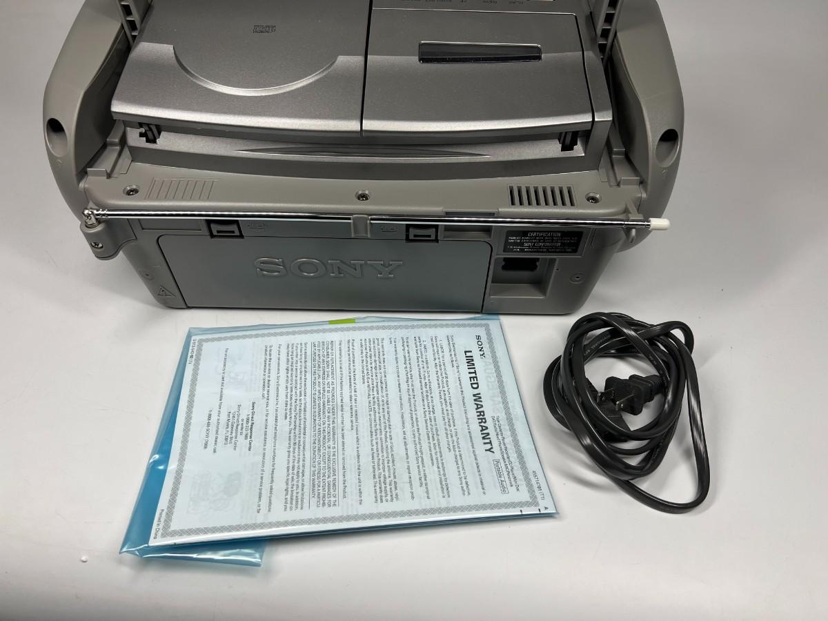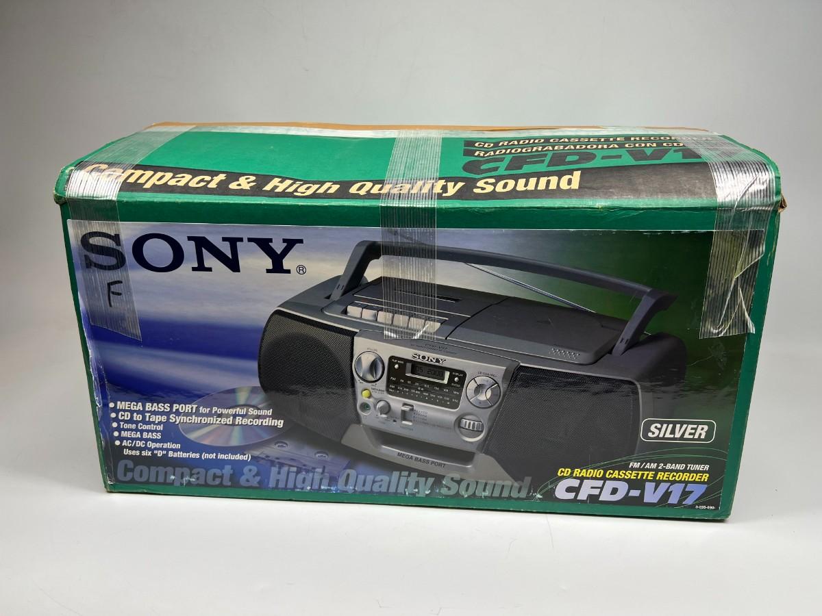 SONY CFD-V17 Boombox CD Cassette AM Fm Radio with Box. Good condition. Untested with batteries but it does have an electrical cord and does work when plugged in.