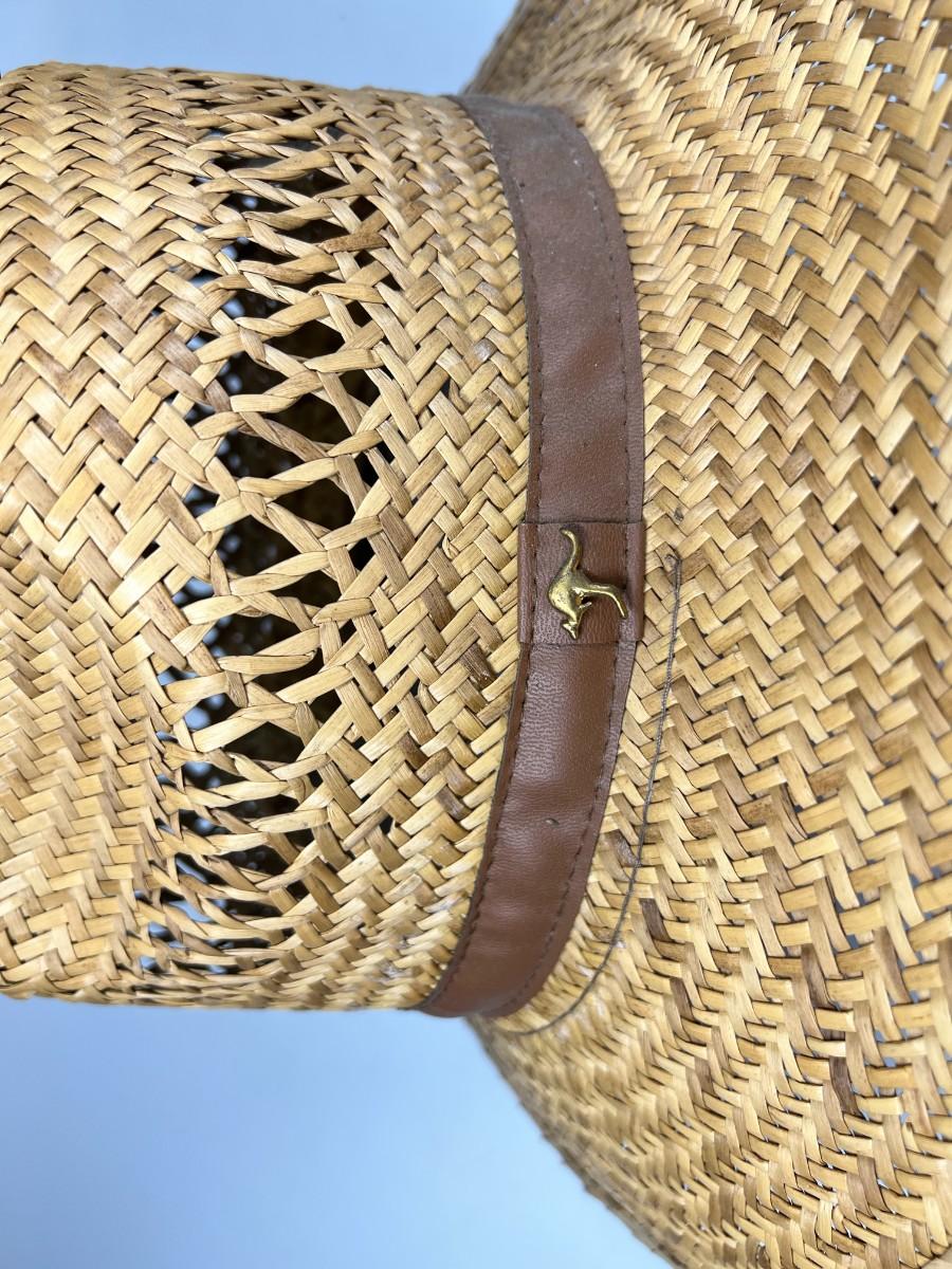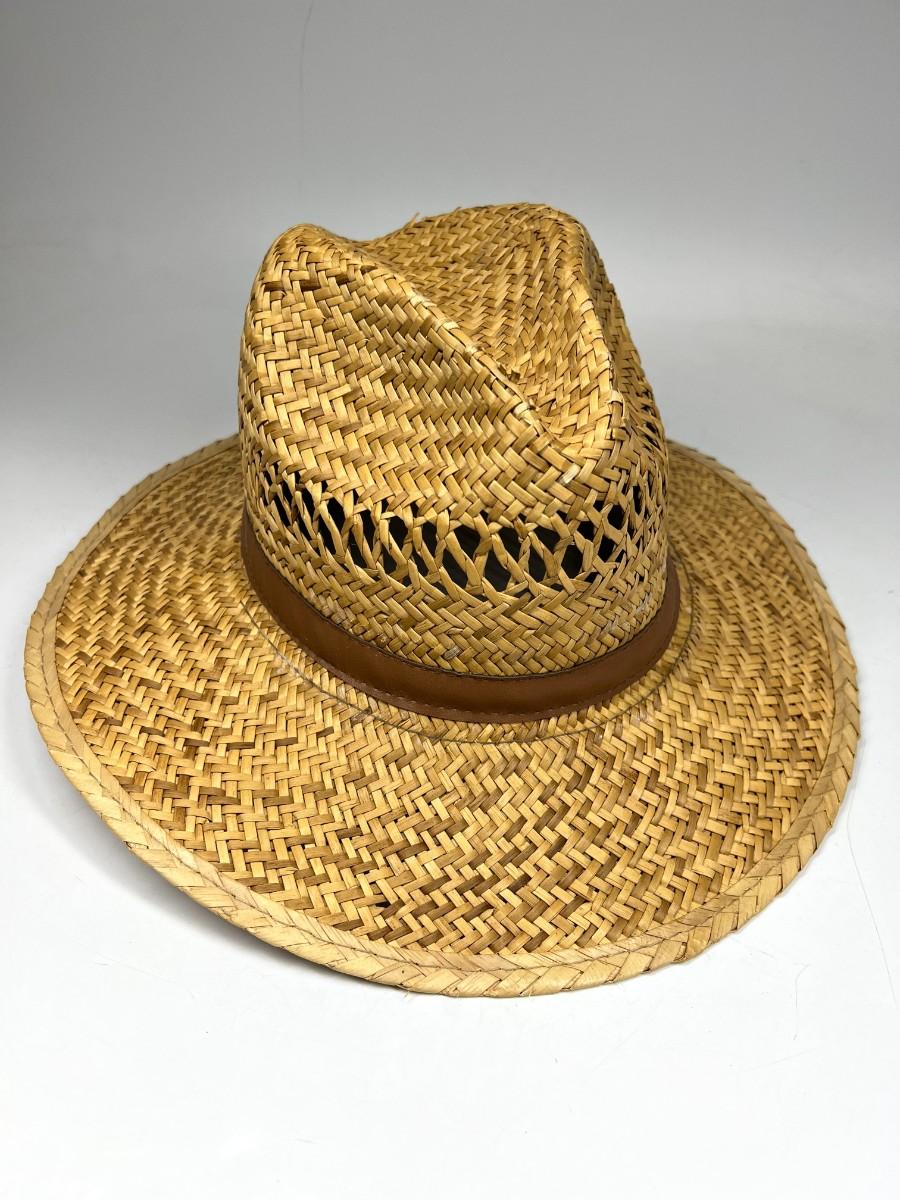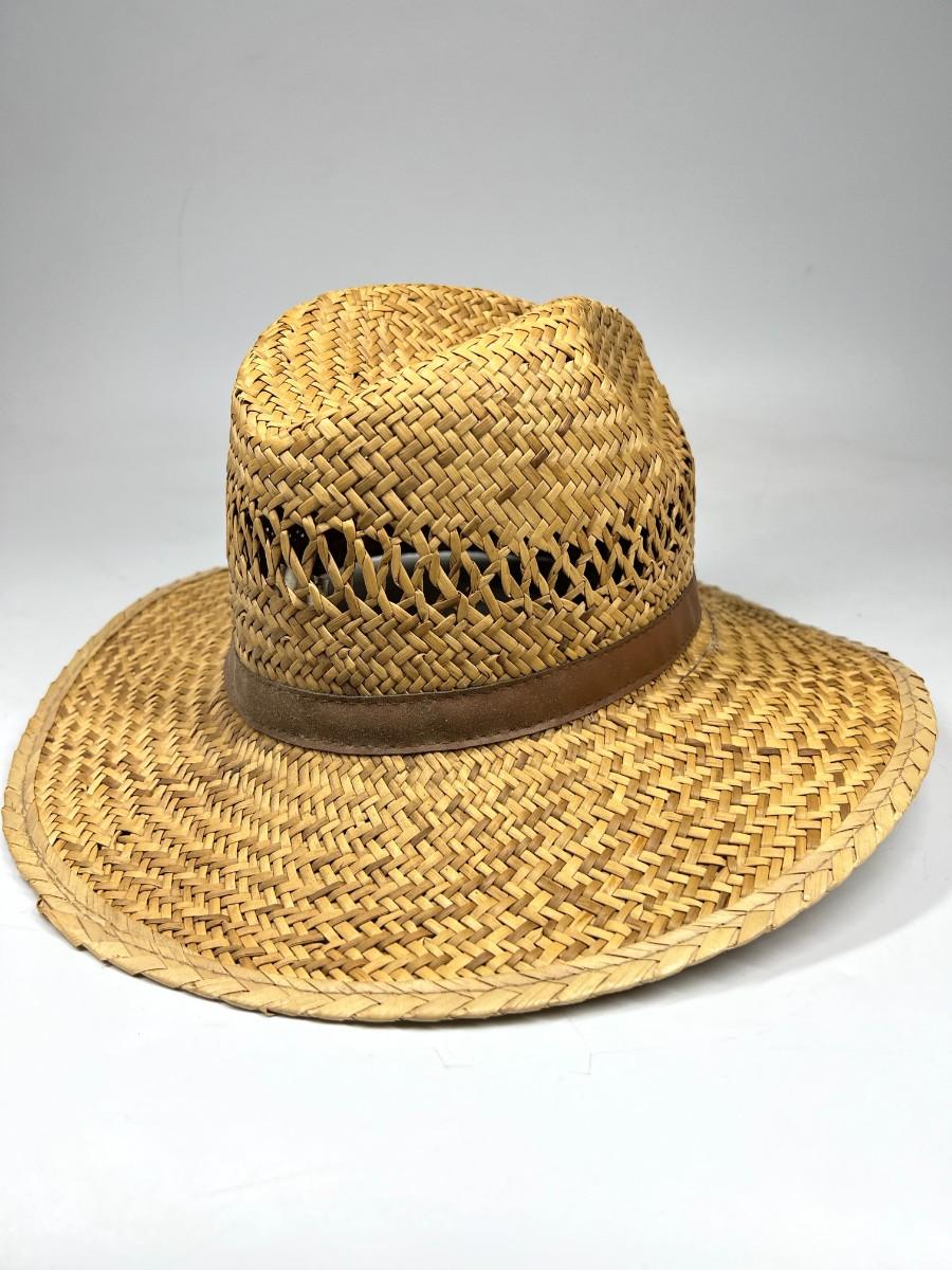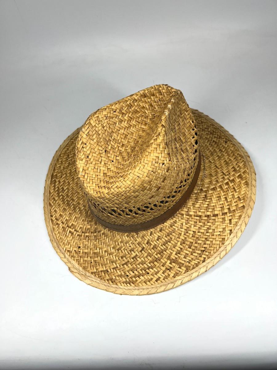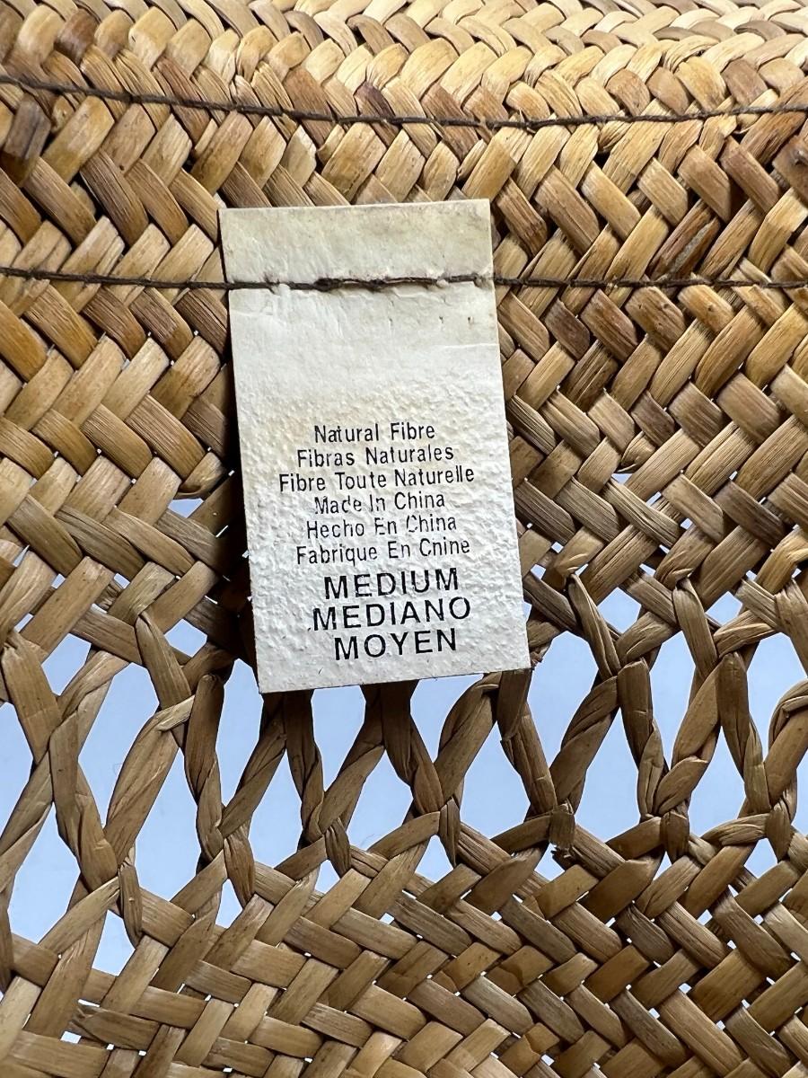 Vintage Natural Fiber Woven Straw Sun Hat. Good worn condition. Size medium.