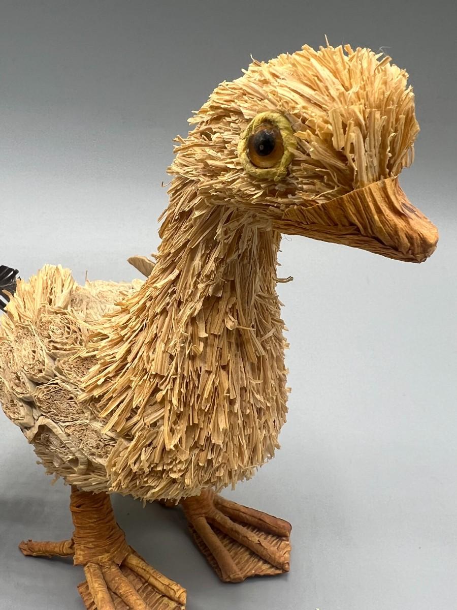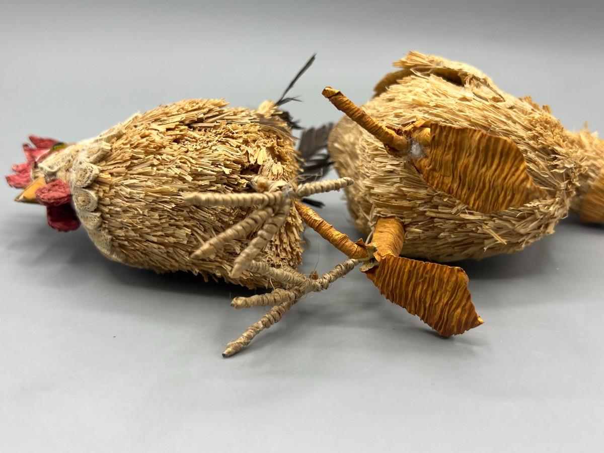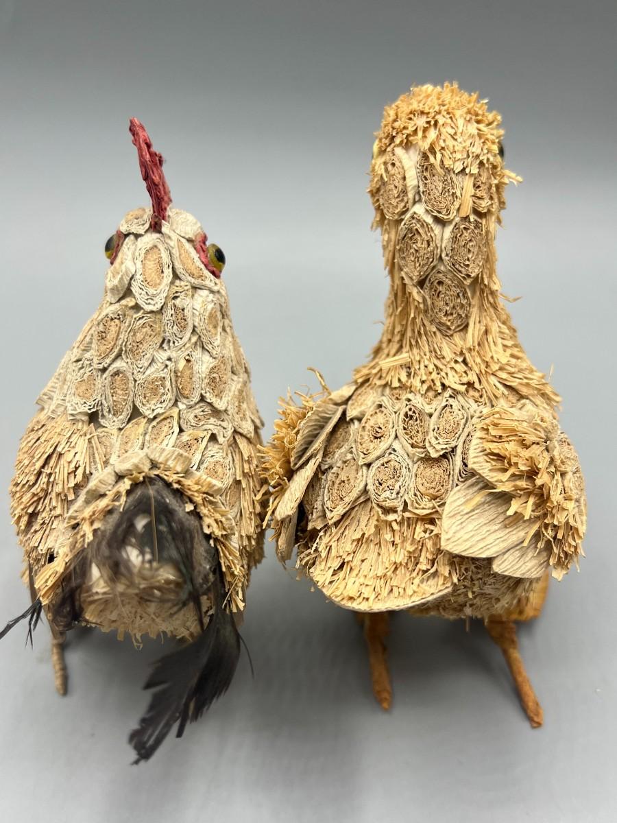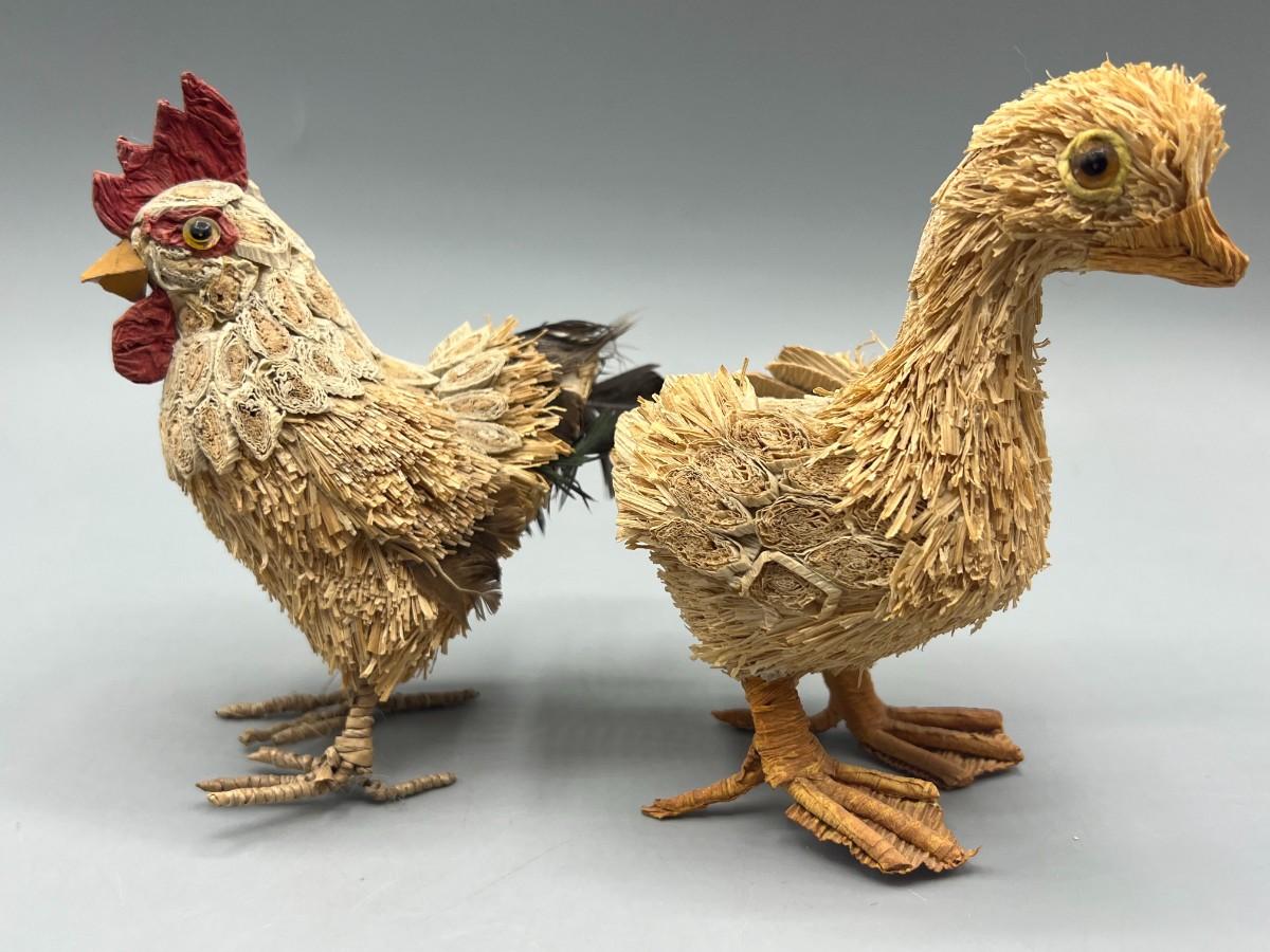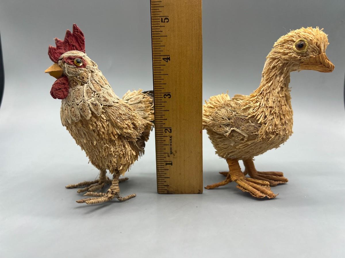 Pair of Retro Handmade Hay Natural Materials Chicken & Duck Cottagecore Figurines