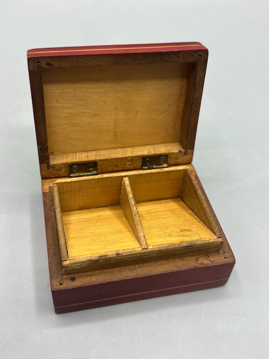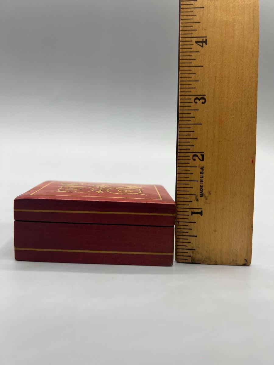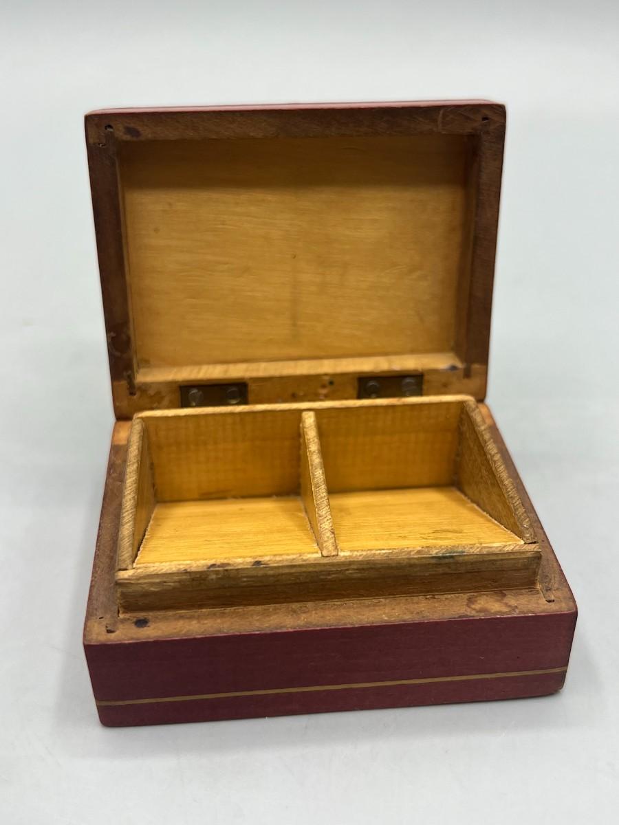 There is no significant damage to the wooden box and is in overall good collectible or displayable condition. Check pictures for more details and for sizing.