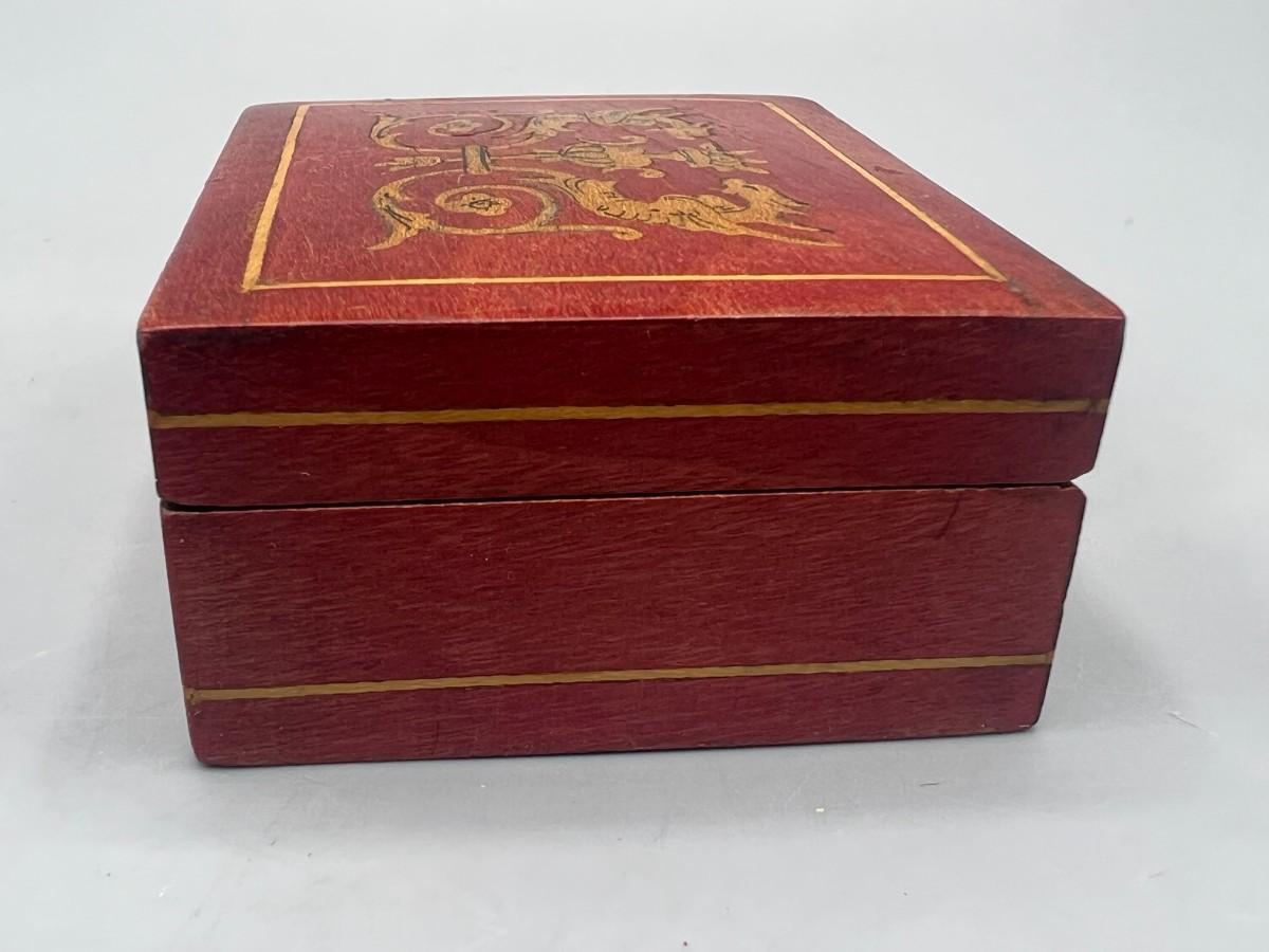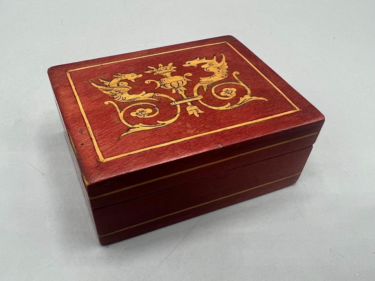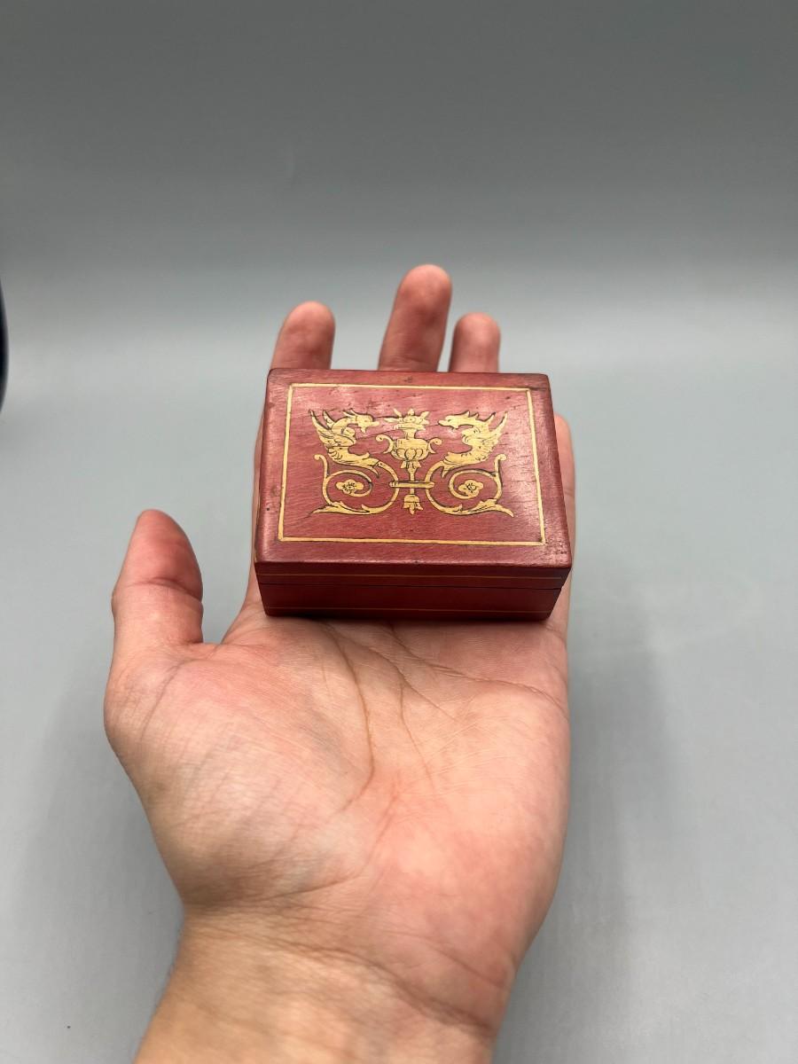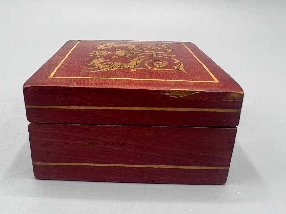 There is no significant damage to the wooden box and is in overall good collectible or displayable condition. Check pictures for more details and for sizing.
