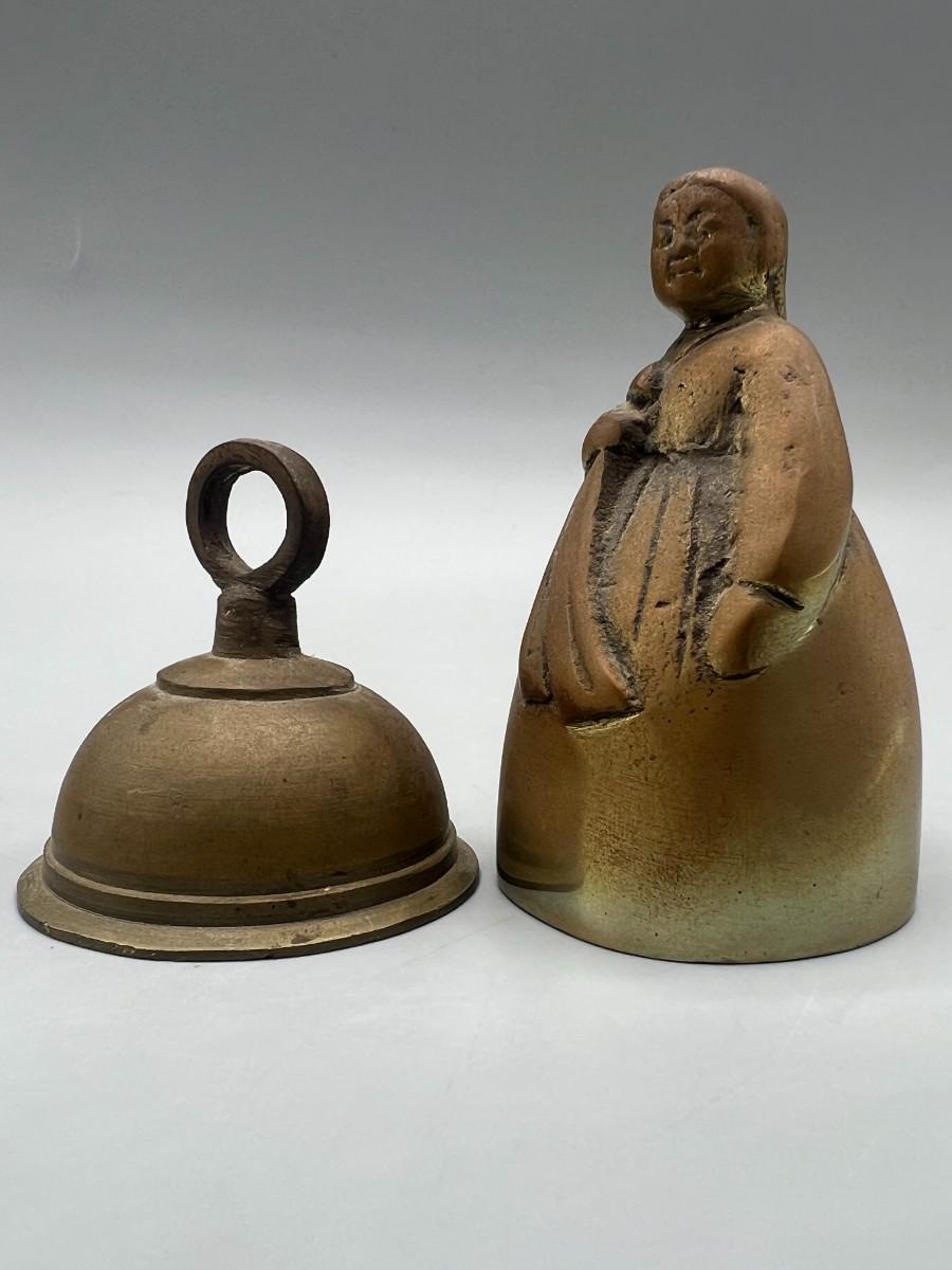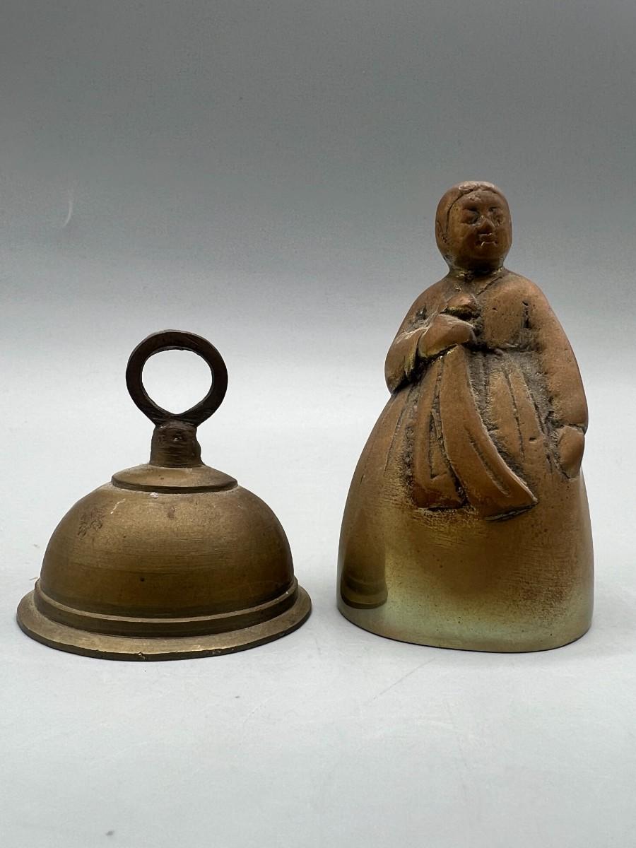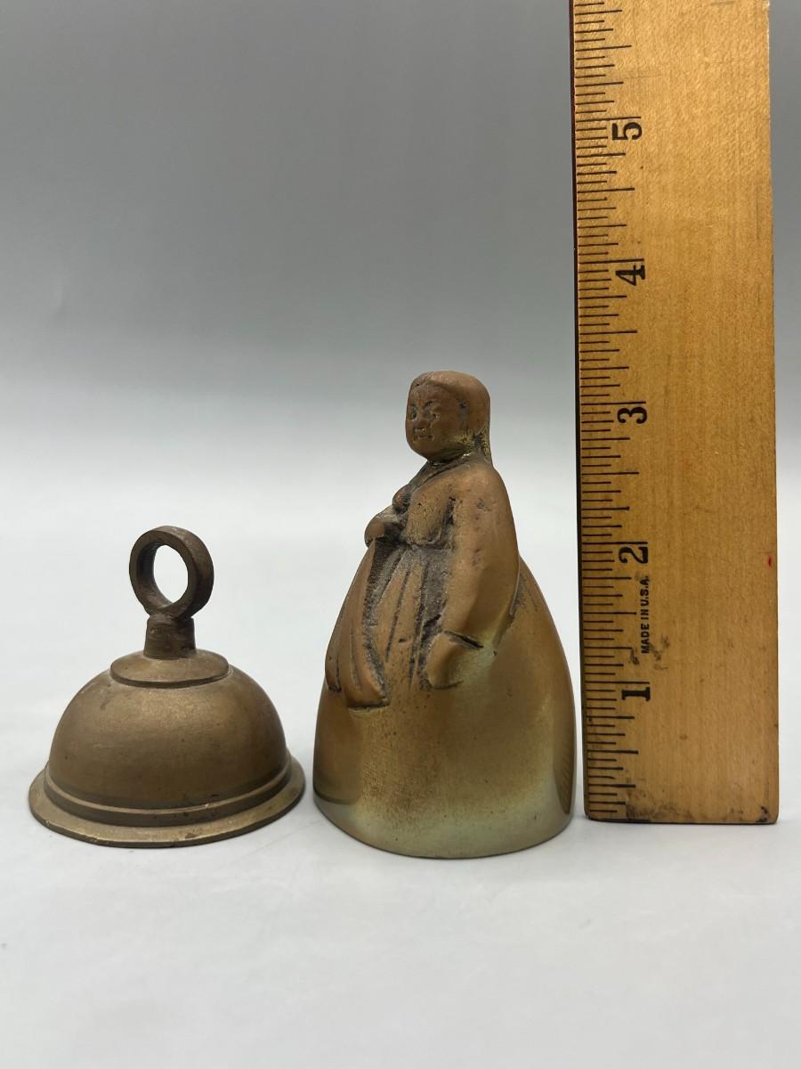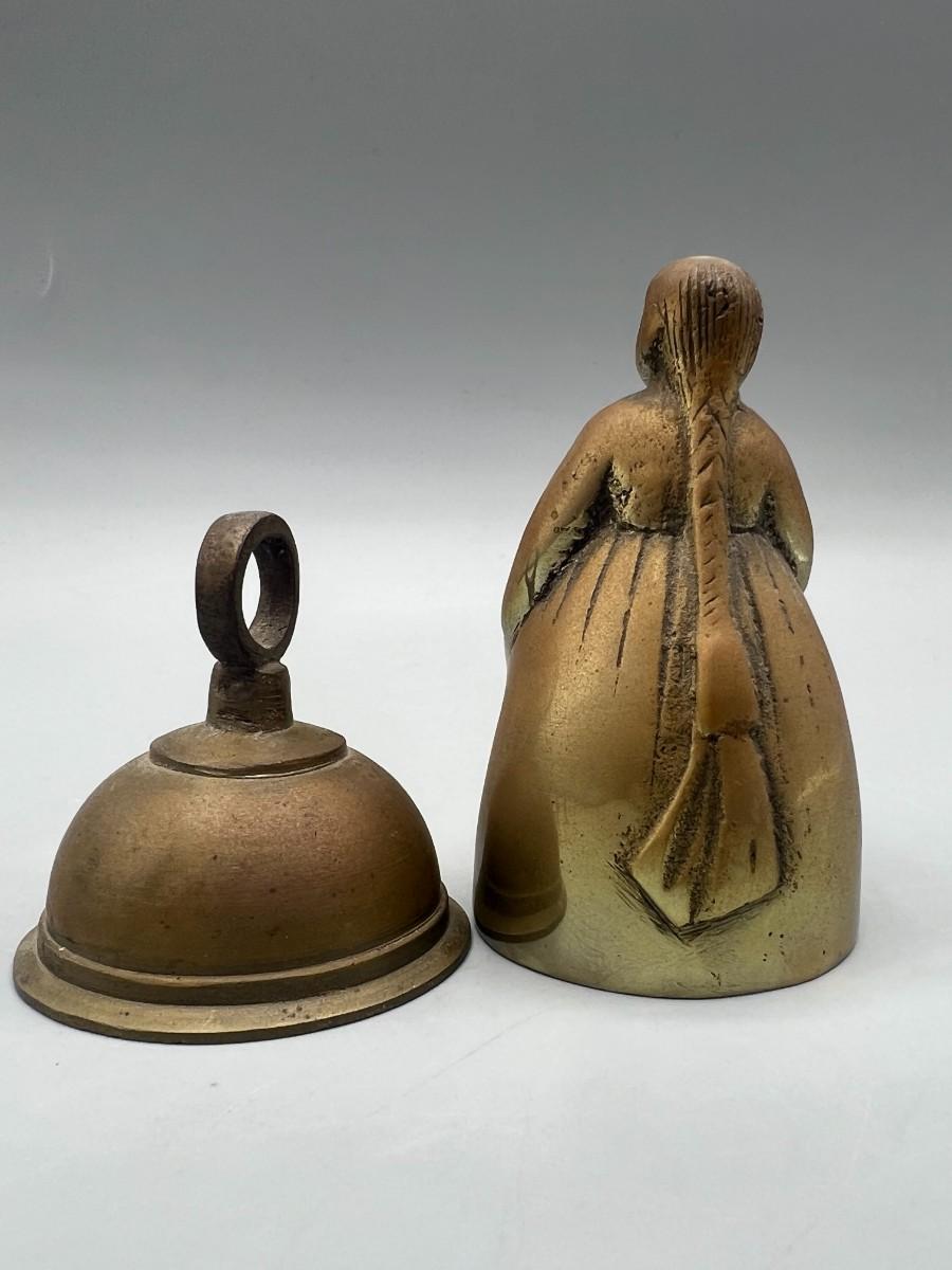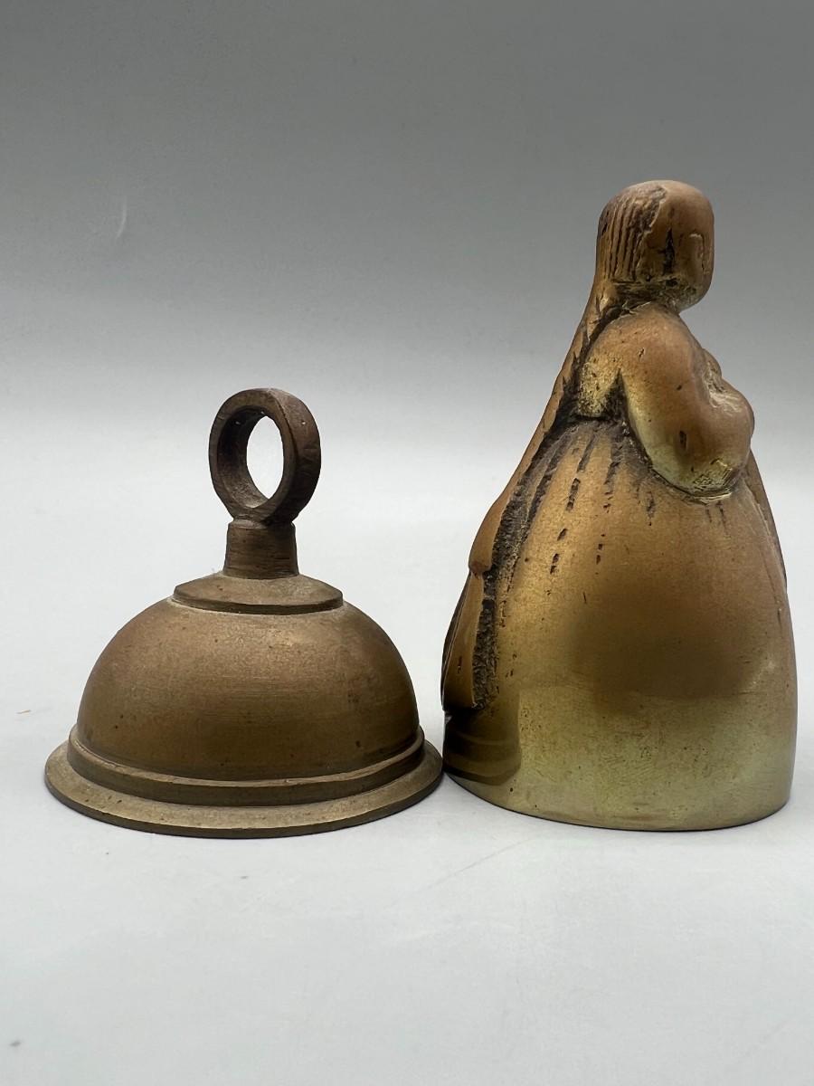 Two Vintage Antique Brass Bells Primitive Farmhouse Lady and School House Bell