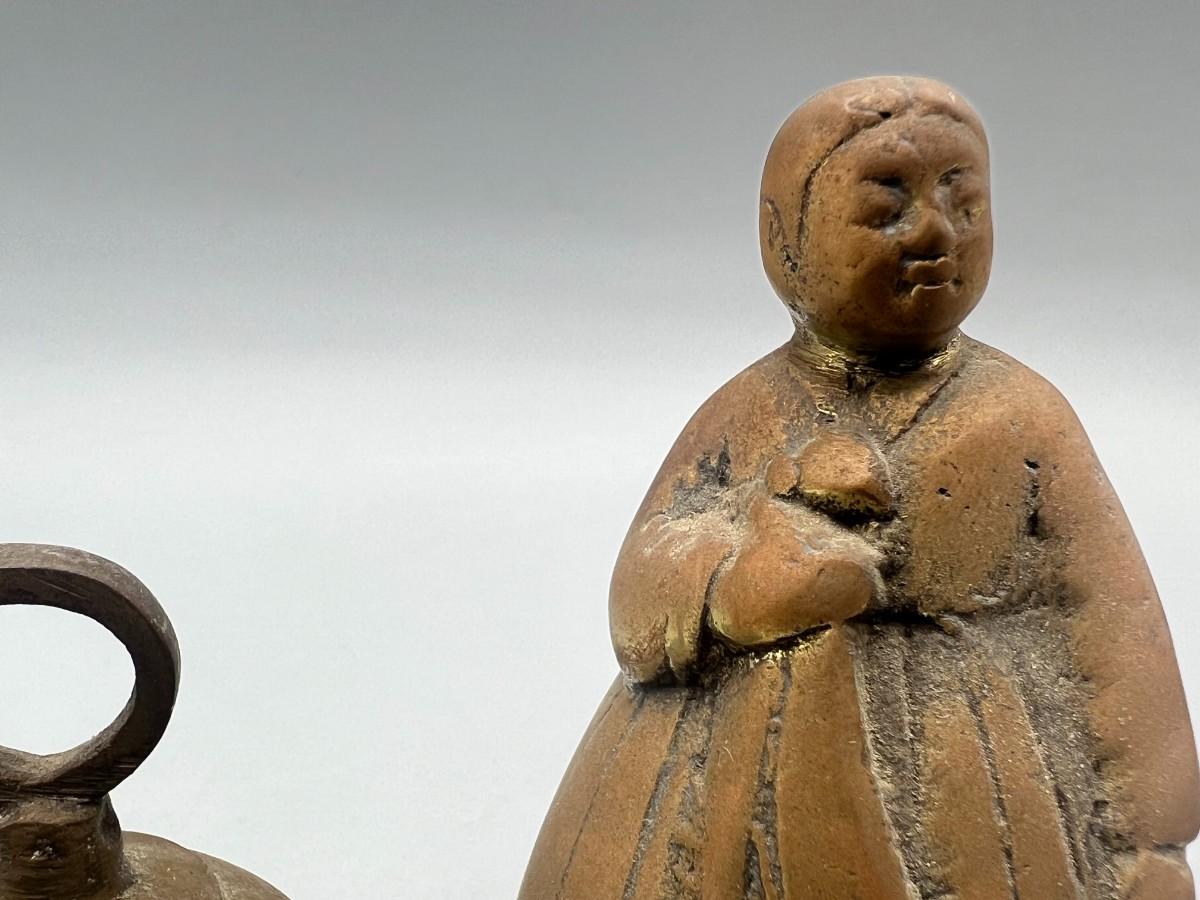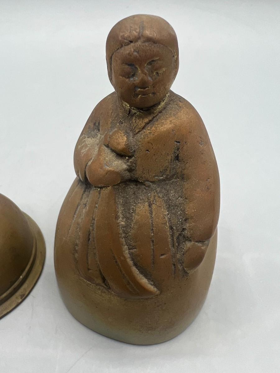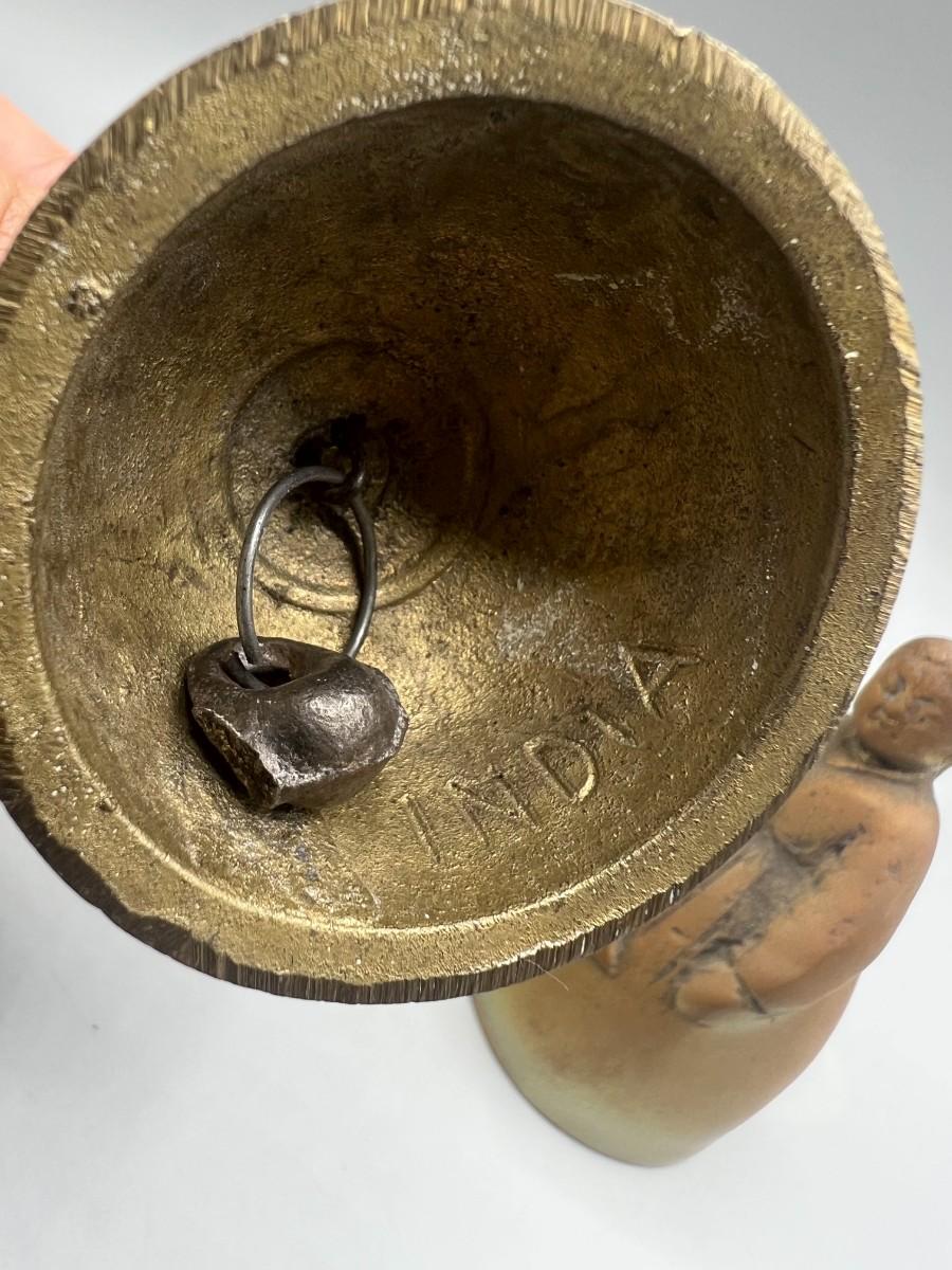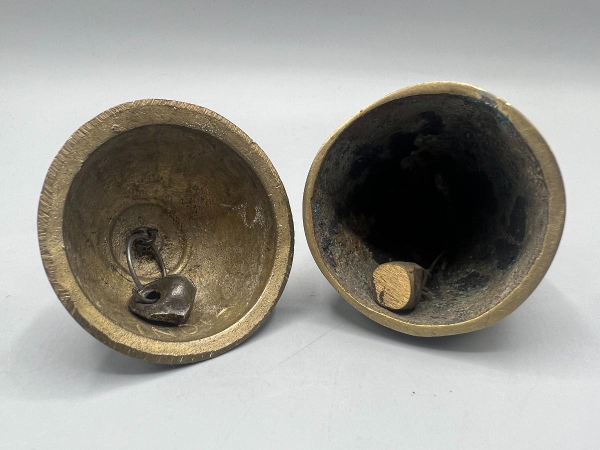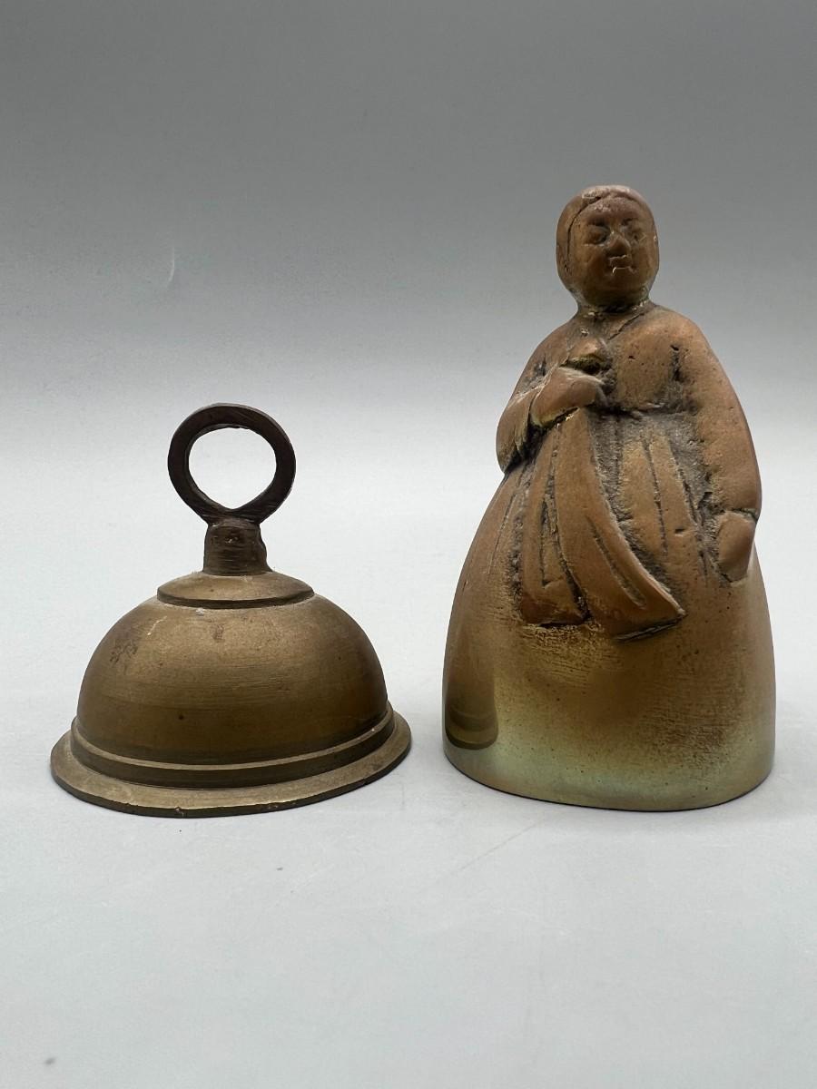 Two Vintage Antique Brass Bells Primitive Farmhouse Lady and School House Bell