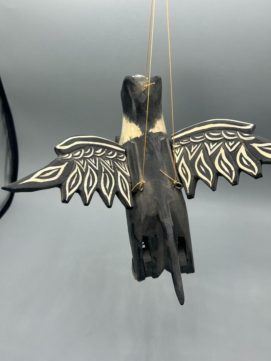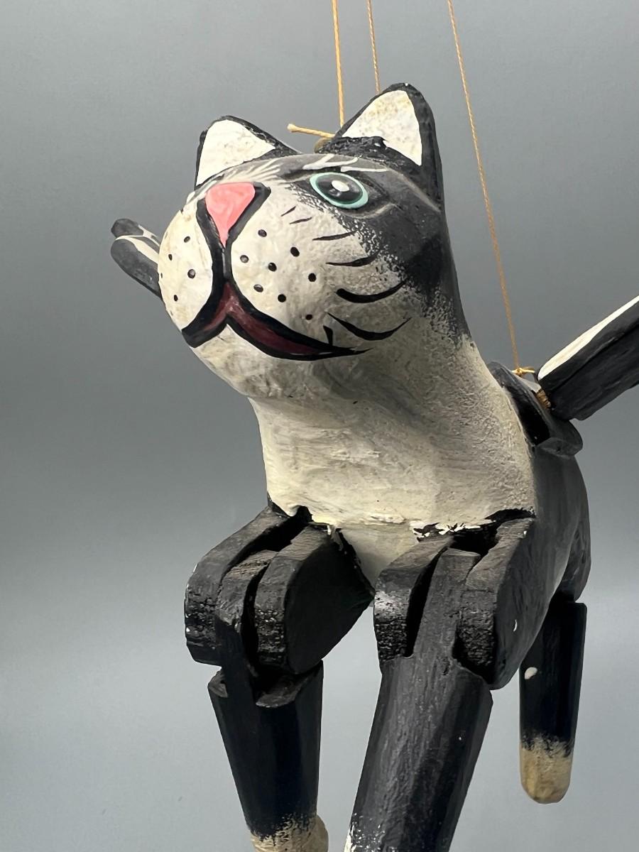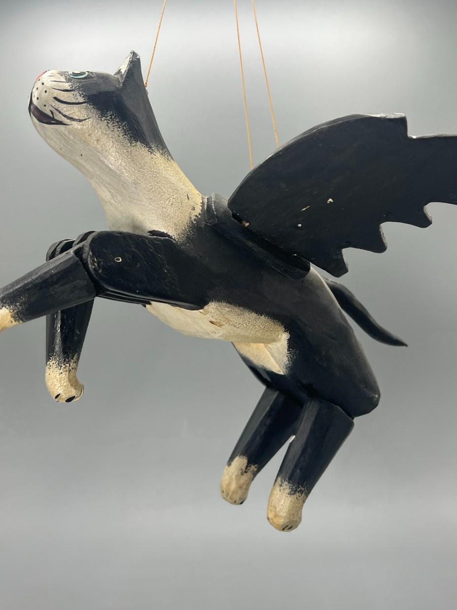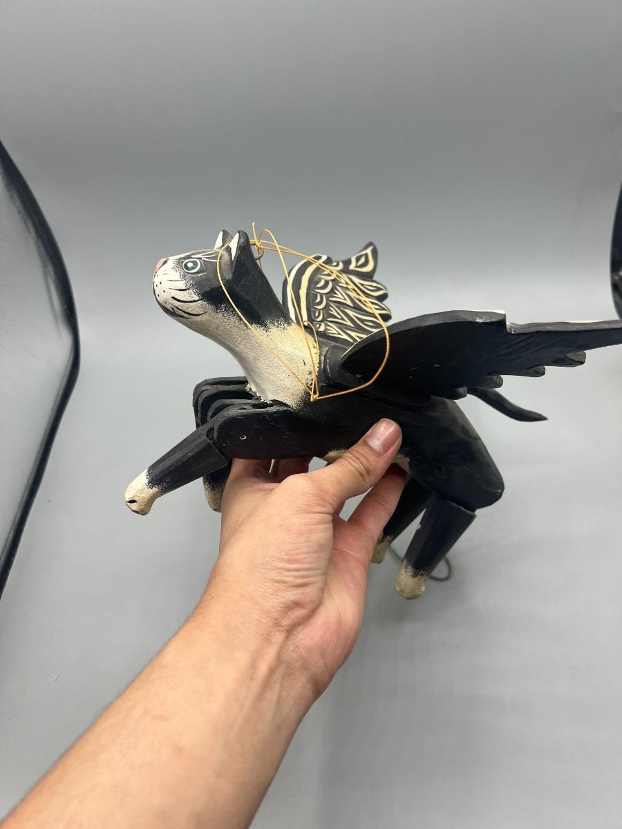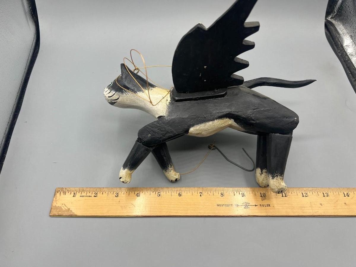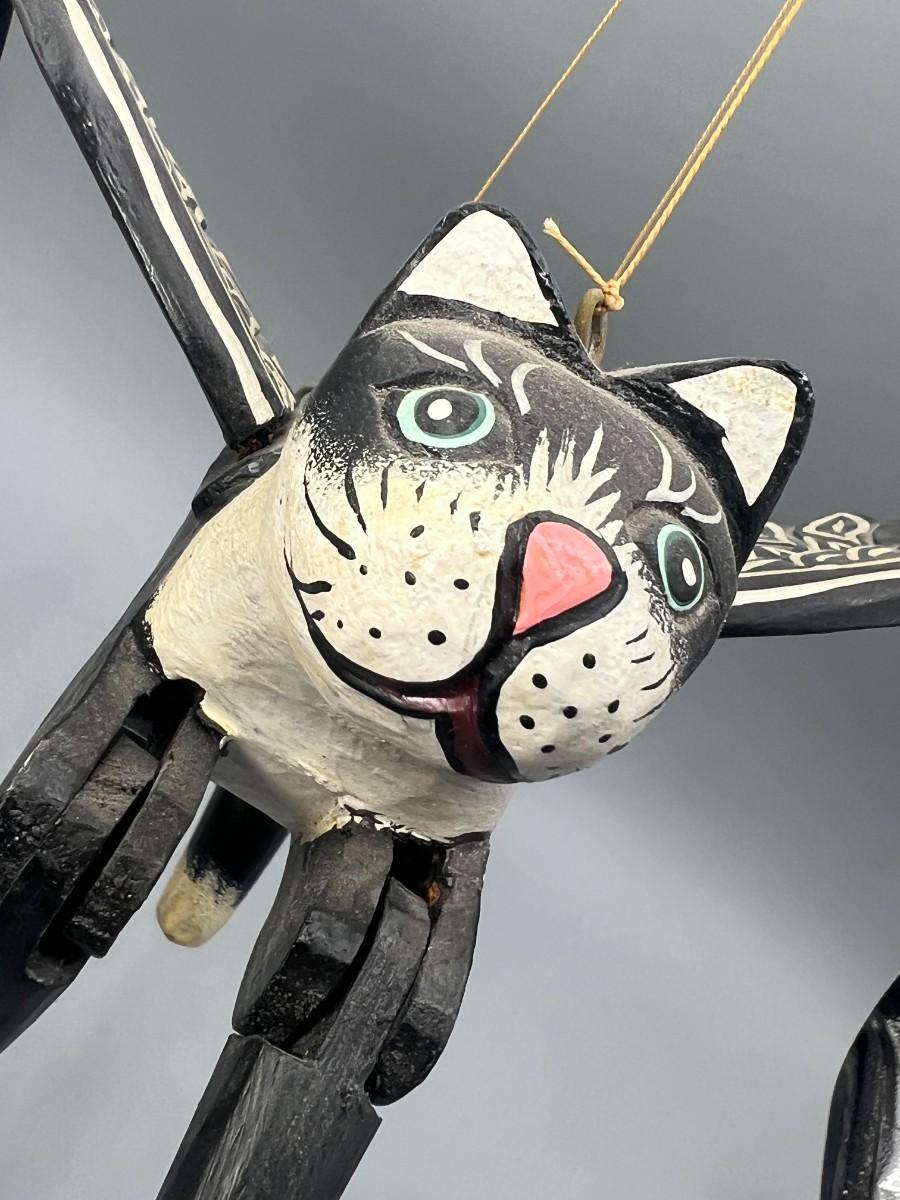 Retro Wooden Painted Black & White Hanging Decor Winged Flying Angel Cat