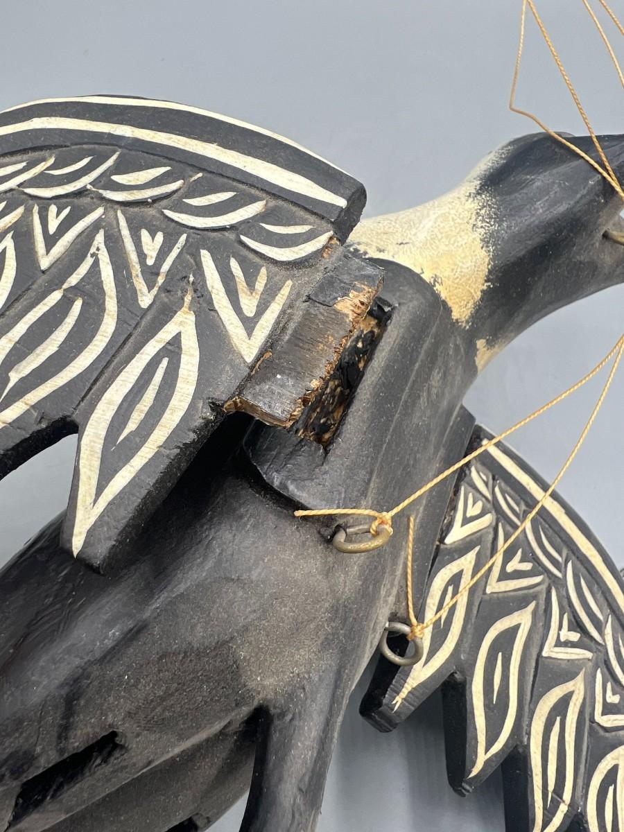 The wing comes off, but can be easily re-glued and fitted back. There is no significant damage and is in overall good collectible or displayable condition. Check pictures for more details and for sizing.