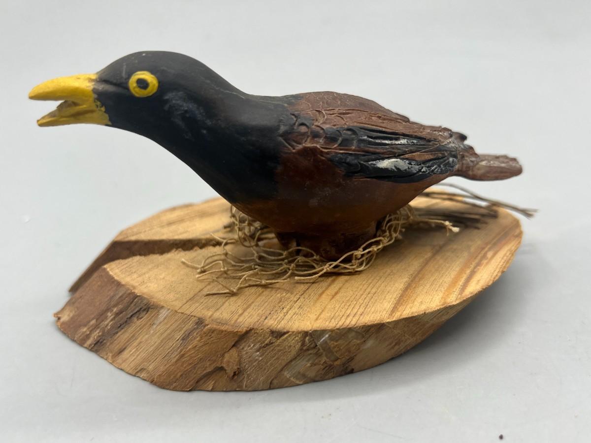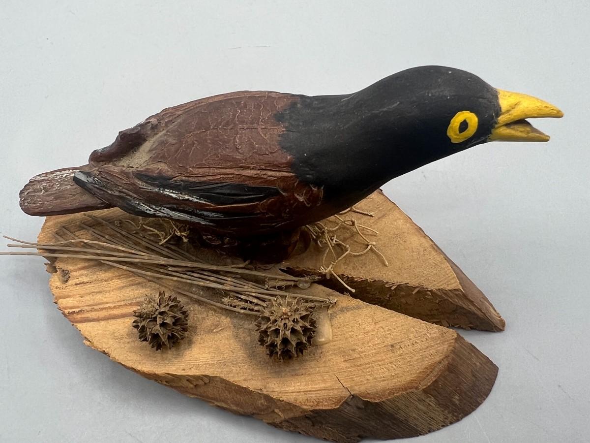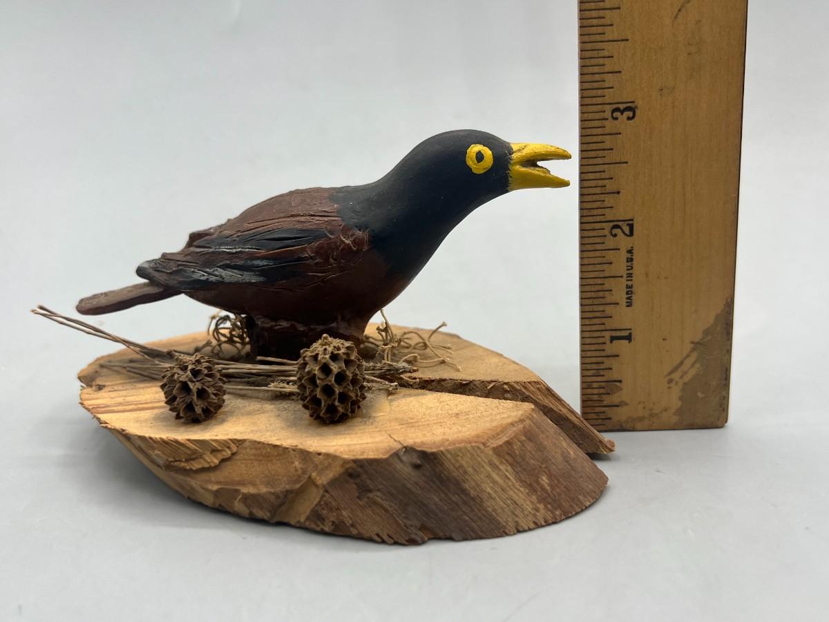 Vintage Carved Painted Wooden Bird in Nature Figurine Rustic