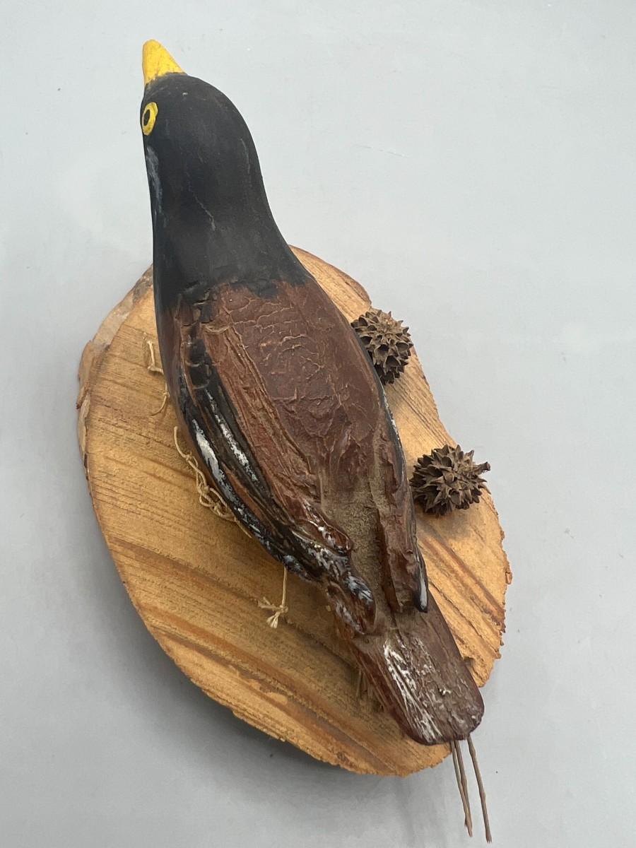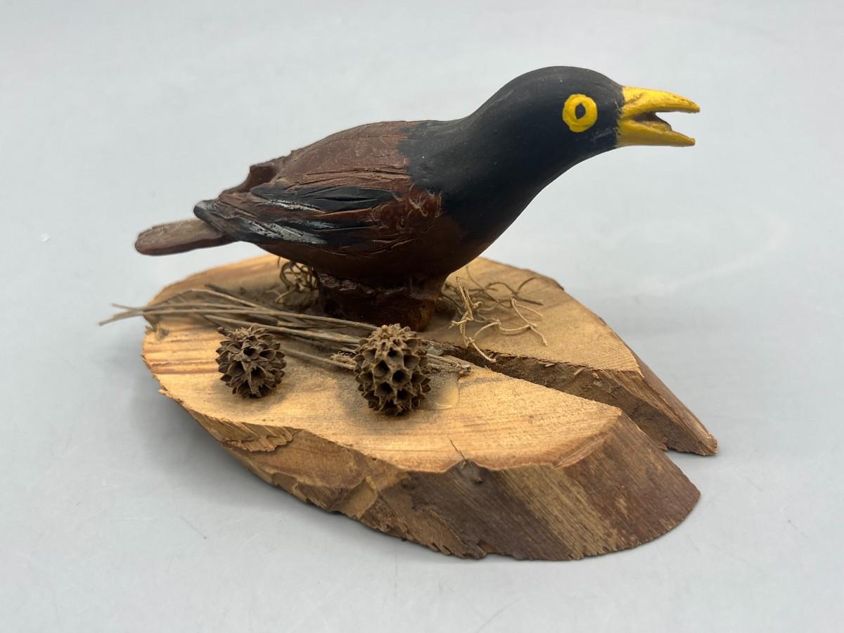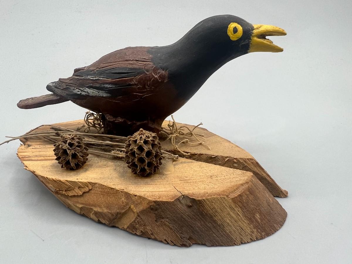 Vintage Carved Painted Wooden Bird in Nature Figurine Rustic