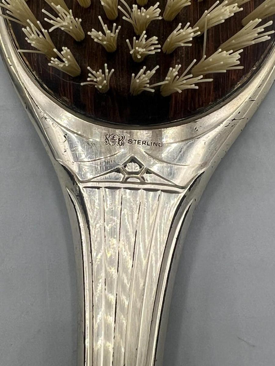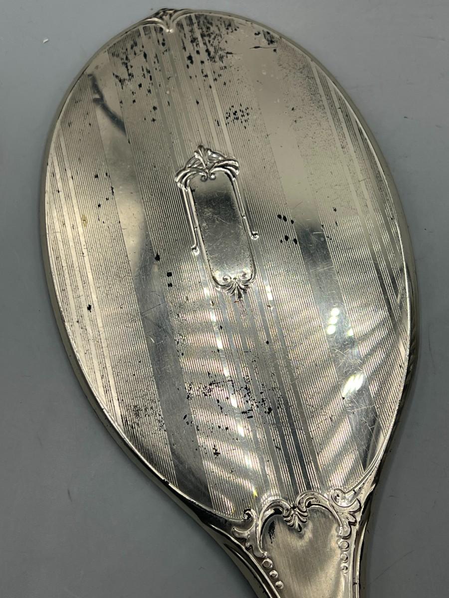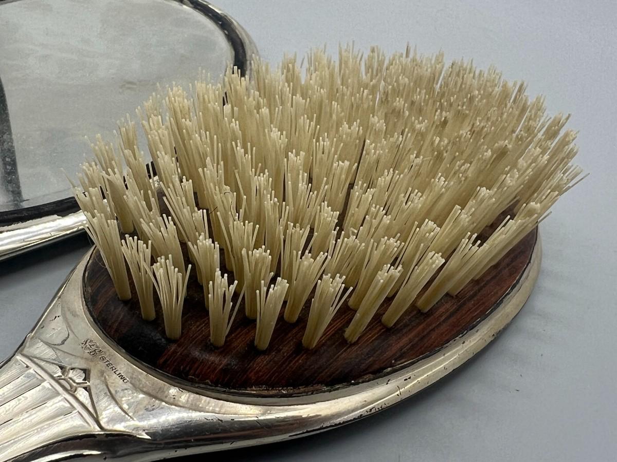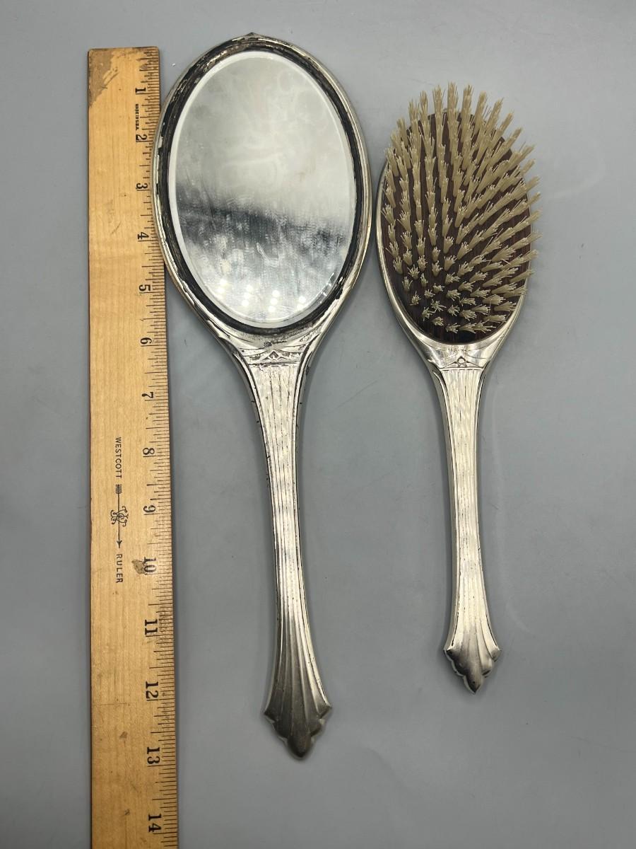 Vintage SLB Sterling Silver Art Deco Mid Century Makeup Hand Mirror & Brush